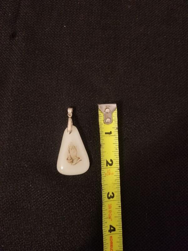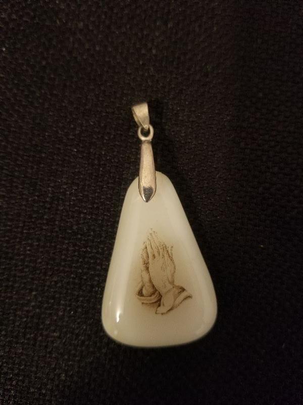 Vintage Glass & 18K Gold Plated Praying Hands Pendant - #124-A