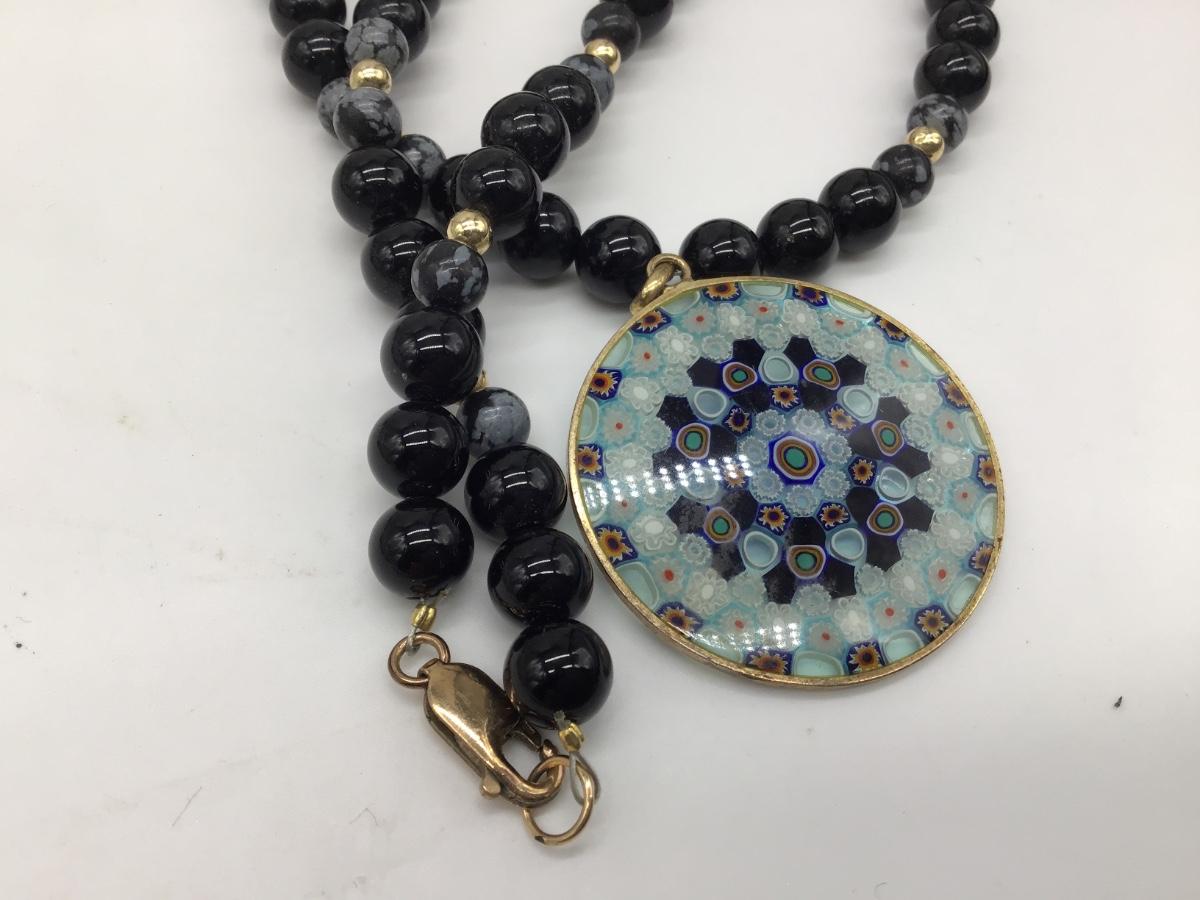 VINTAGE Vintage Murano Glass Millefiori Venetian Glass pendant Gold Makings Clasp And Pendant