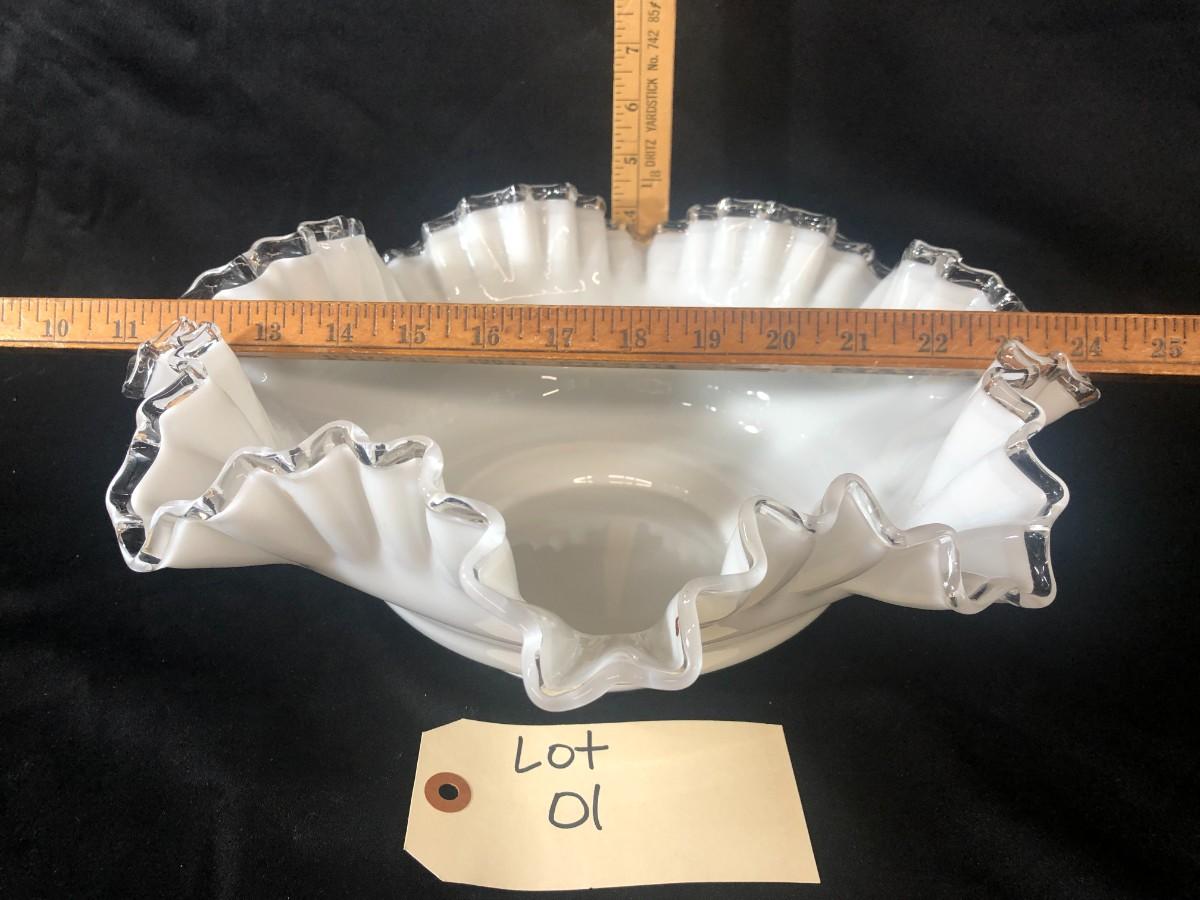 Large Fenton Silver Crest Double Ruffle Bowl