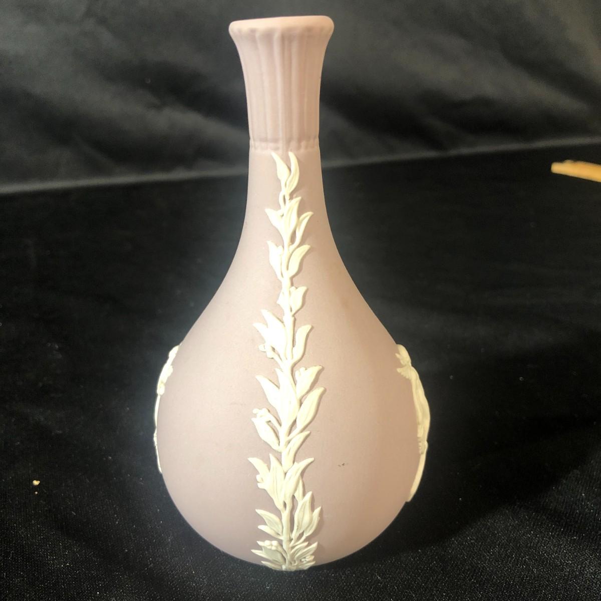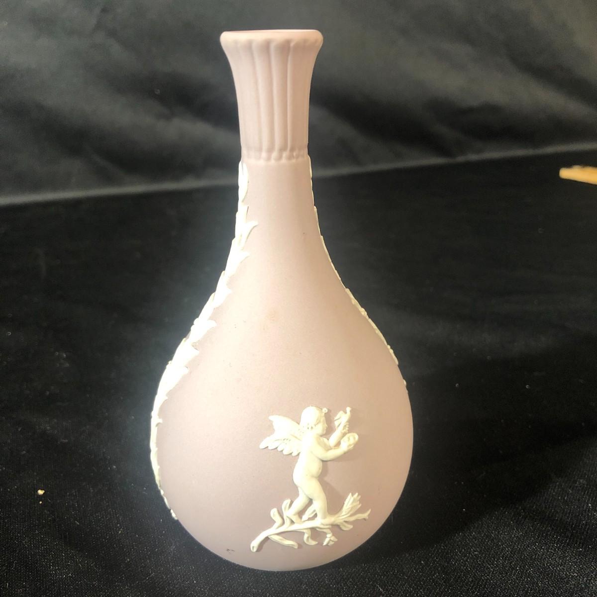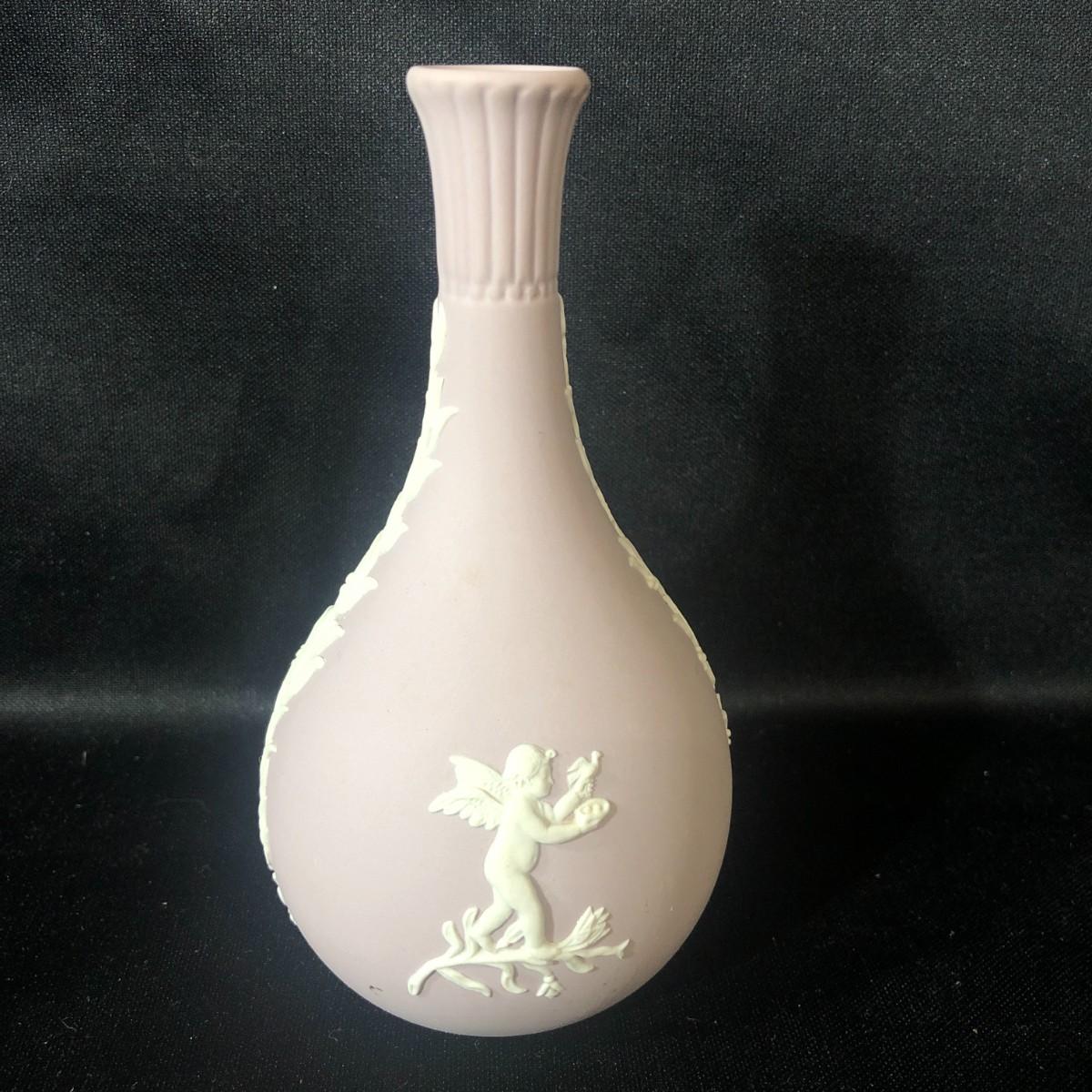 Wedgwood White on Pink Jasperware Cherub Bud Vase