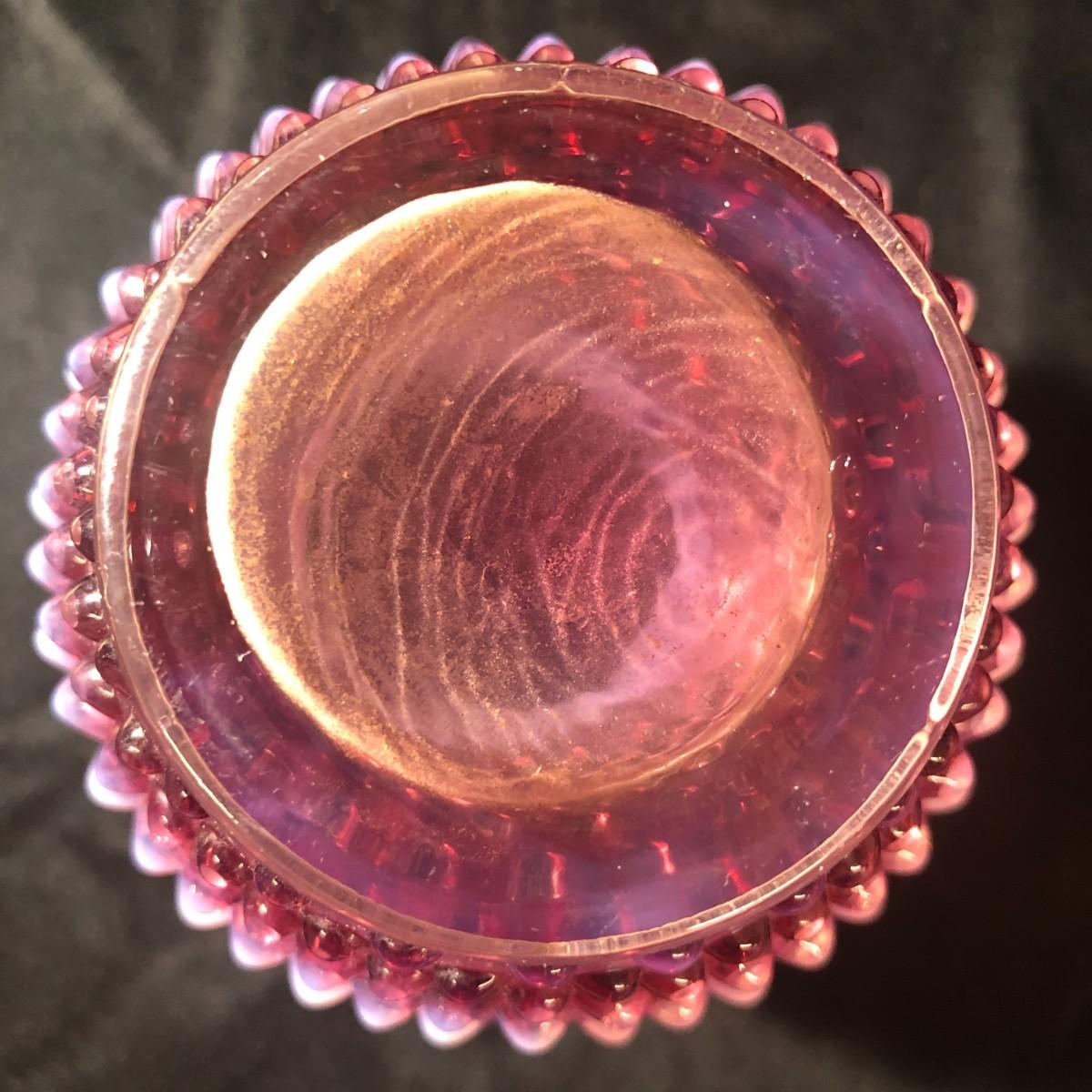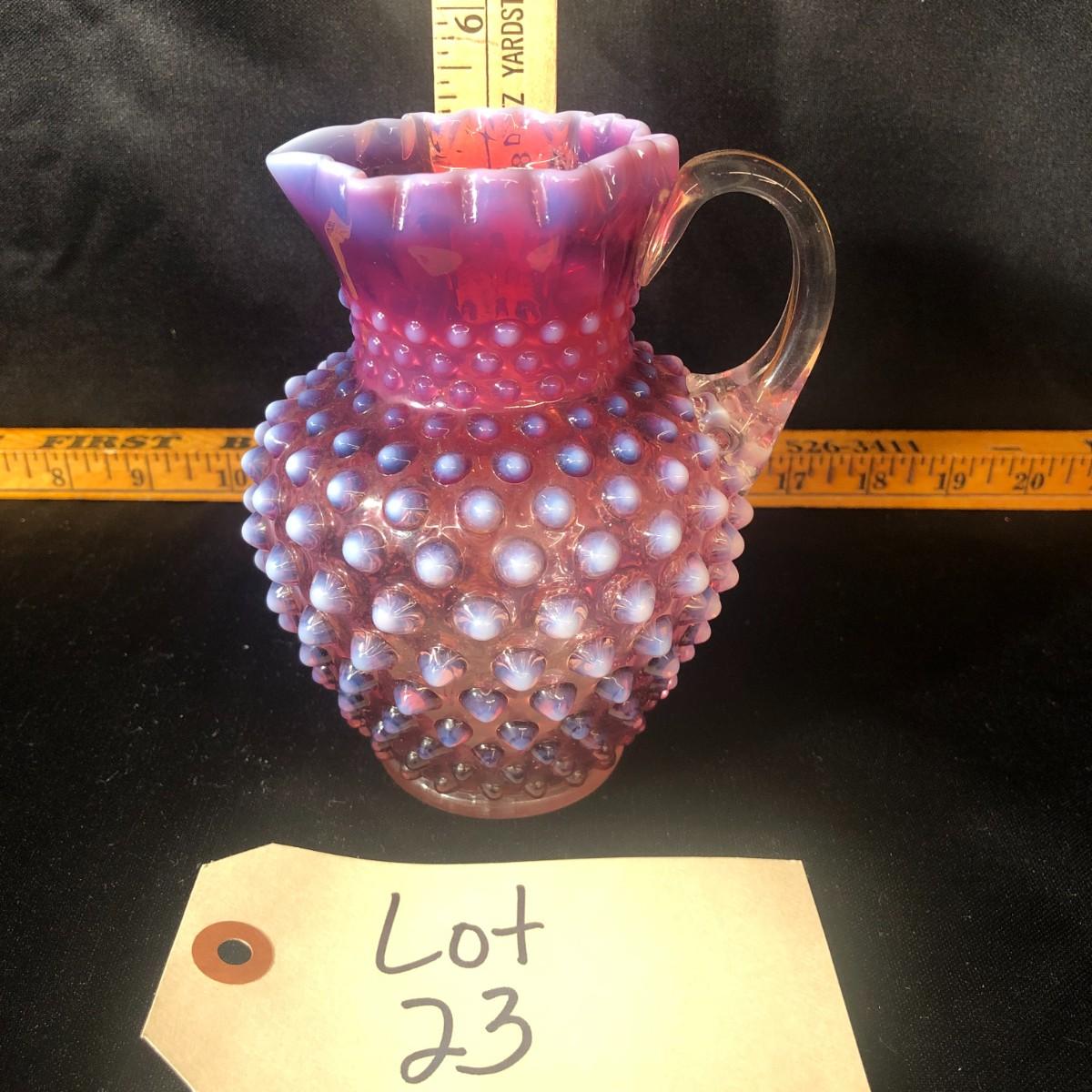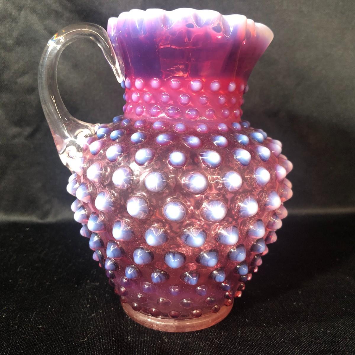 Fenton Hobnail Cranberry Opalescent Crimped Rim Syrup Pitcher