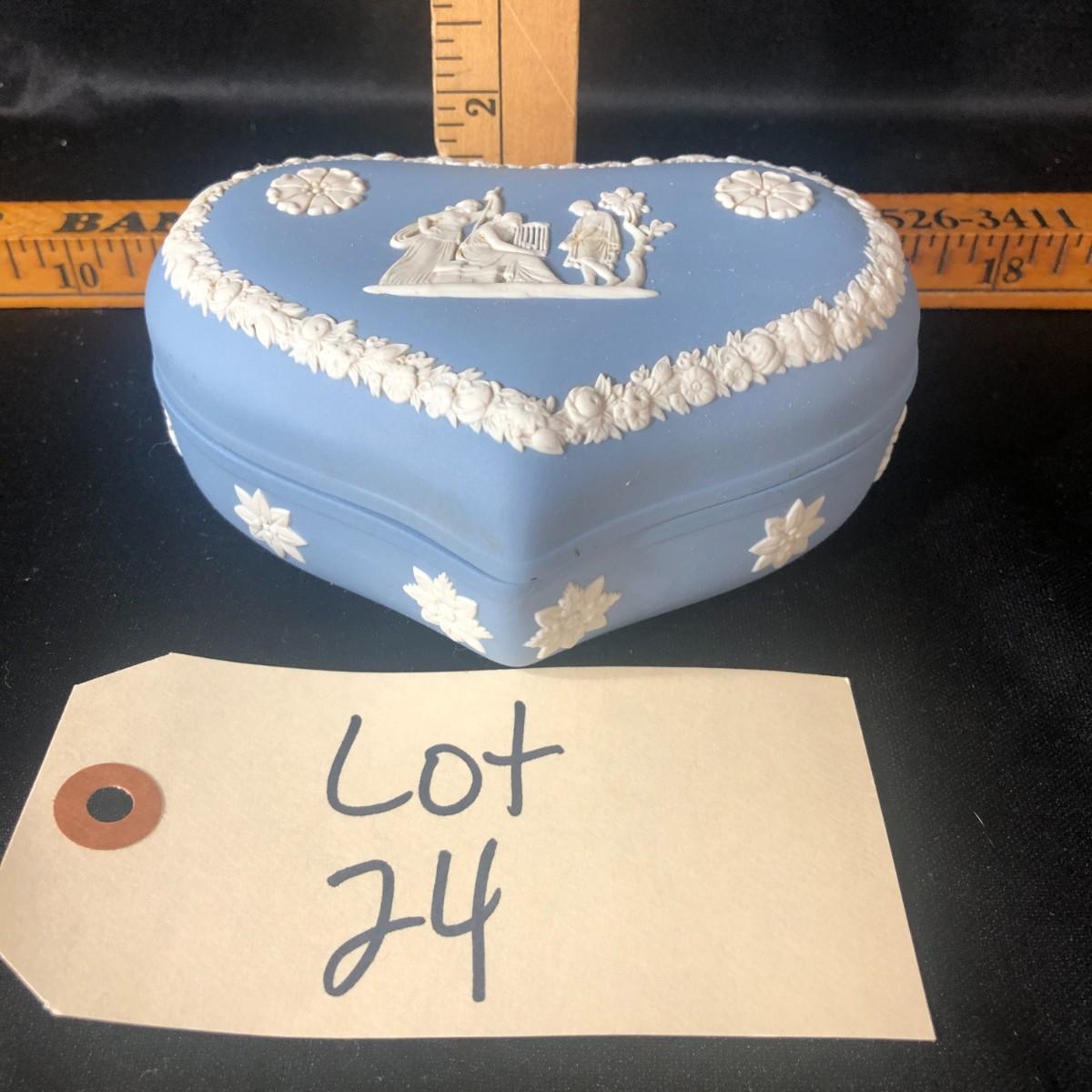 Wedgwood Blue Jasperware Heart Trinket Box w/Lid Made in England