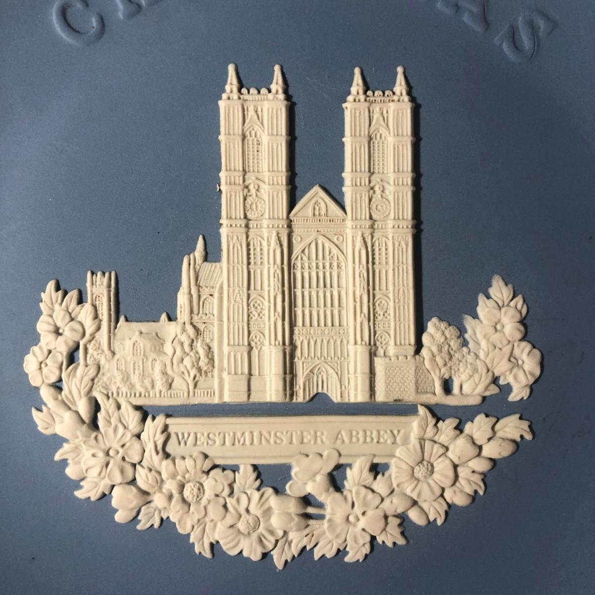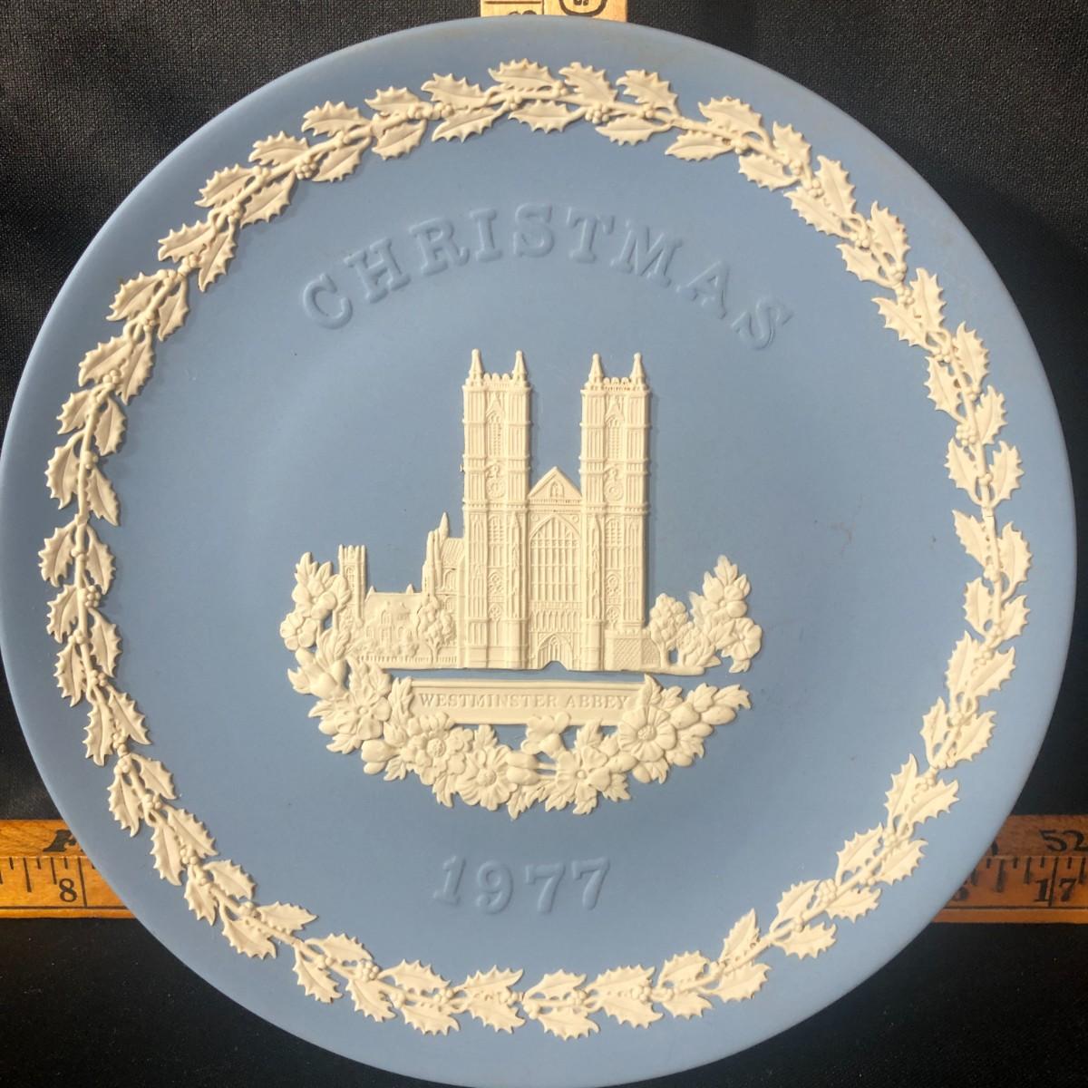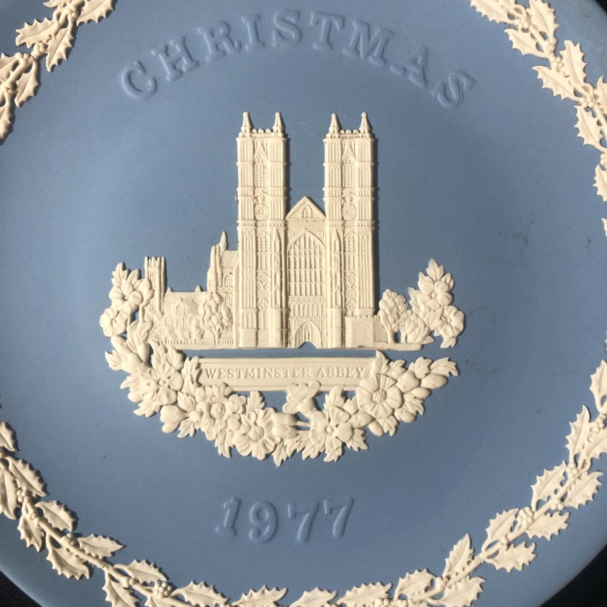 Wedgwood Blue Jasperware Christmas 1977 Westminster Abbey Plate Made in England