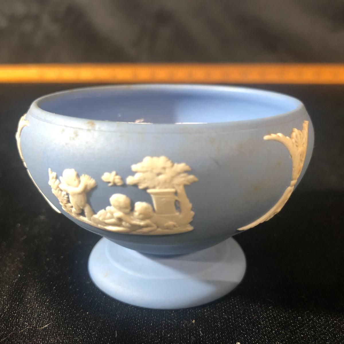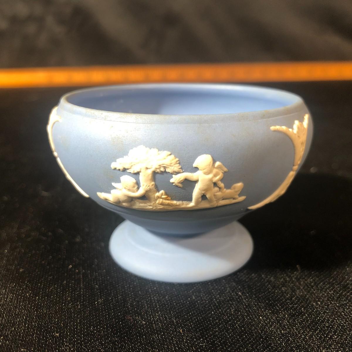 Wedgwood Blue Jasperware Pedestal Open Salt Cellar Dish Made in England