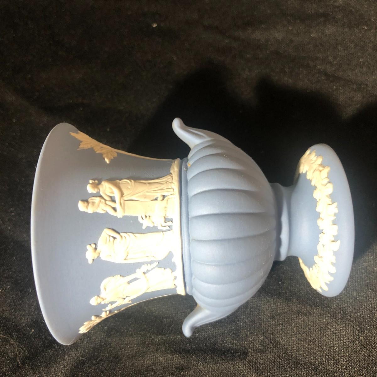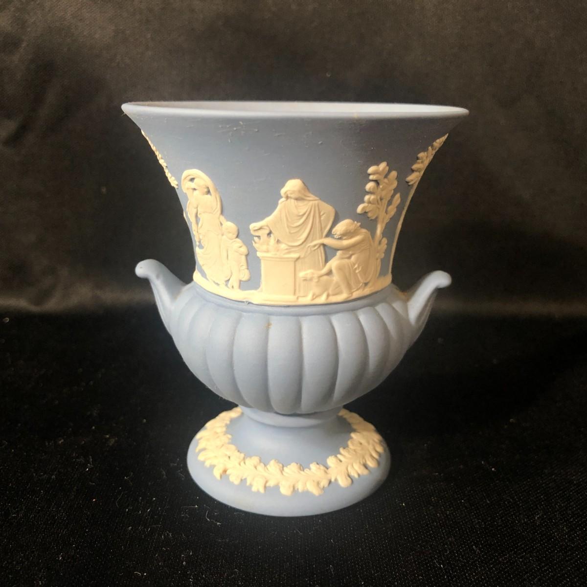 Wedgwood Small Urn Bud Vase w/Handles Blue Jasperware Made in England