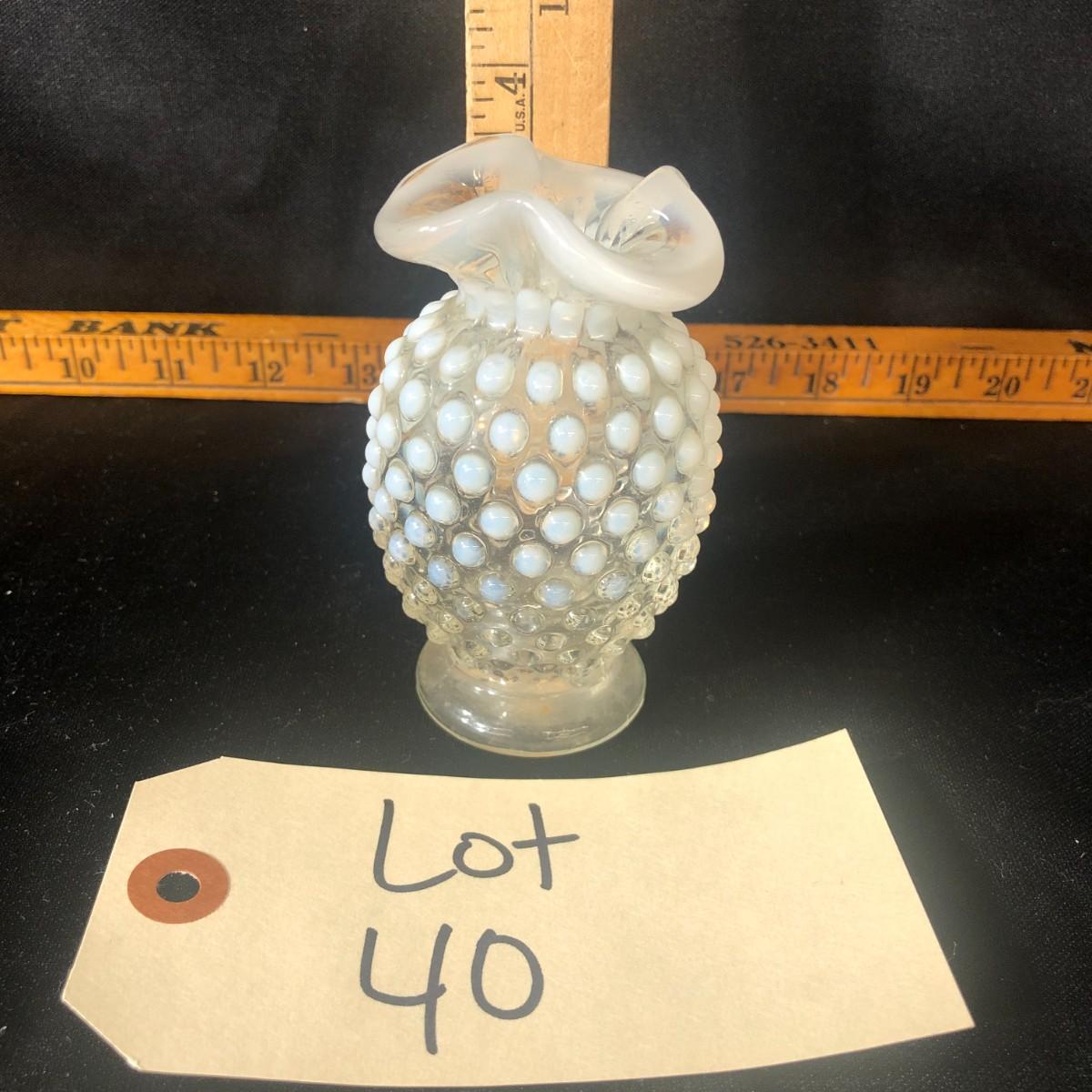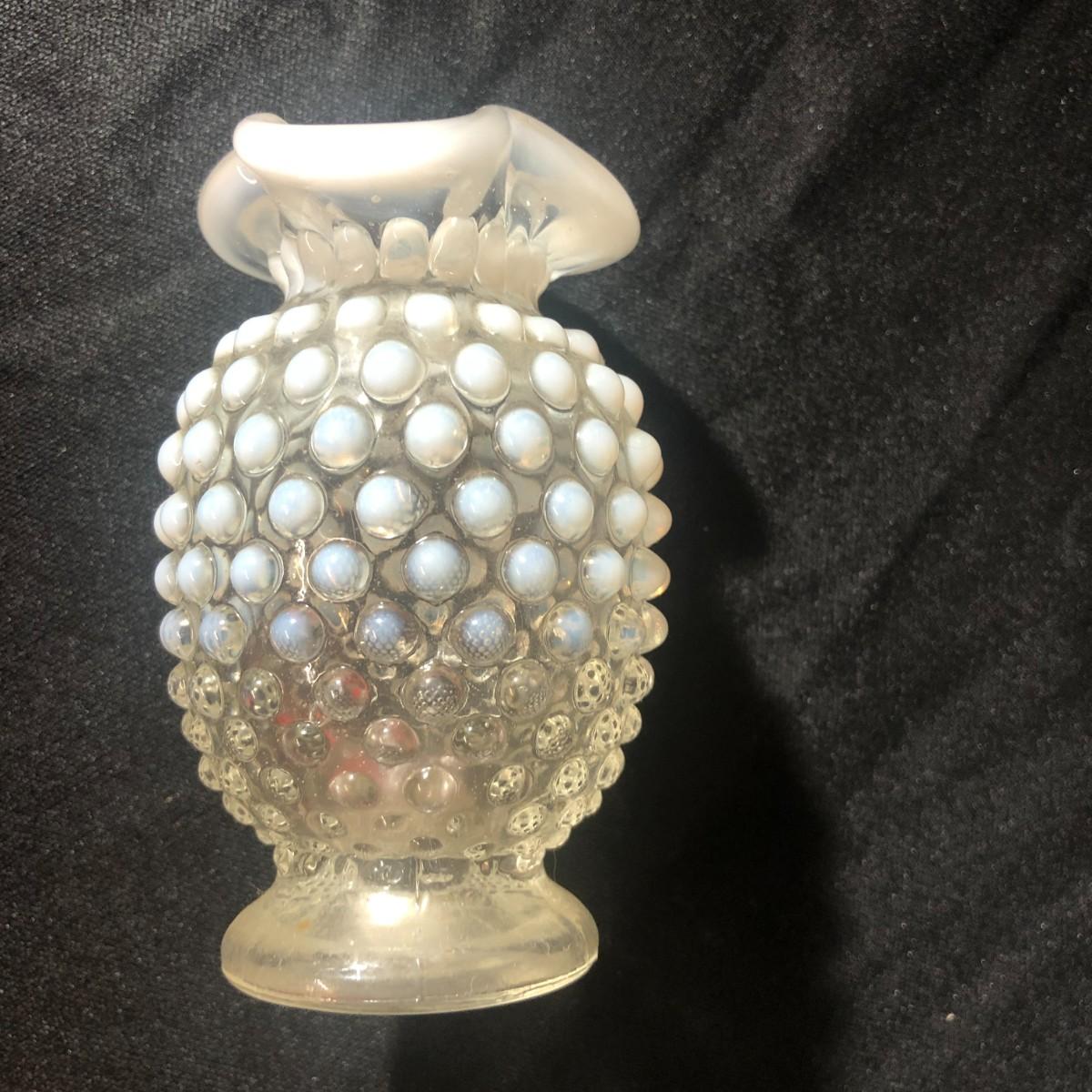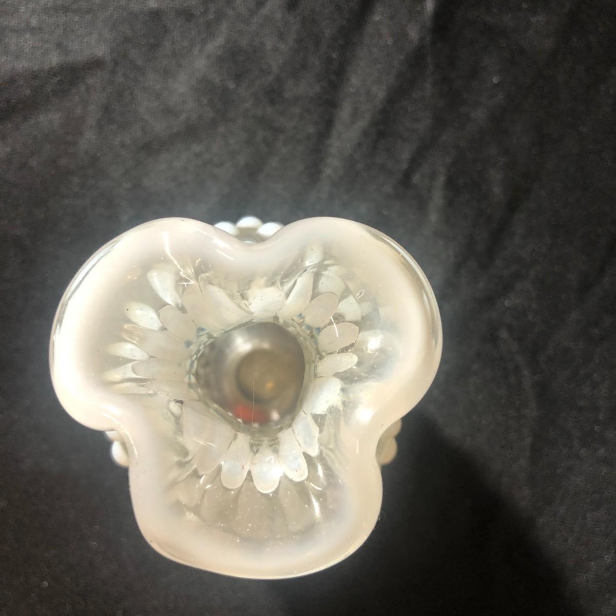 Fenton White Opalescent Hobnail Crimped Top Miniature Vase