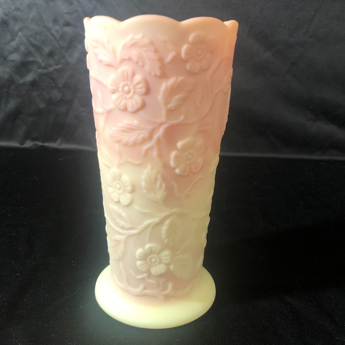 Fenton Burmese Pure Gold Satin Embossed Daisy Flower Vase