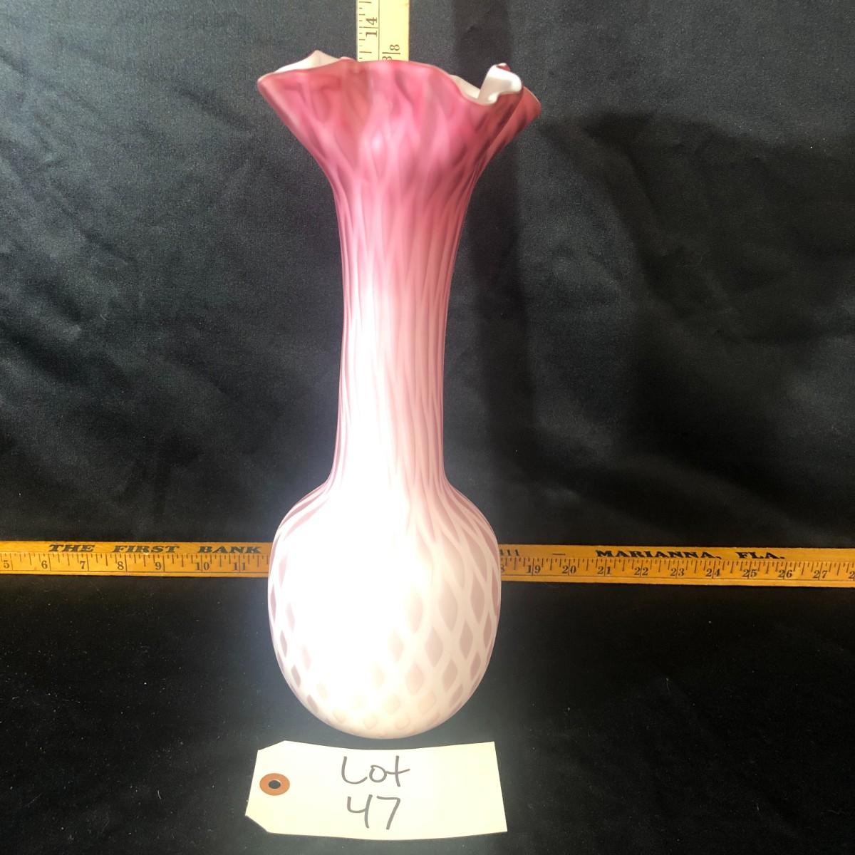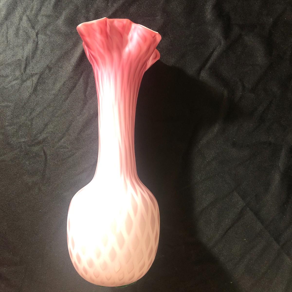 Fenton Large Mother of Pearl Satin Quilted Rose Pink Vase