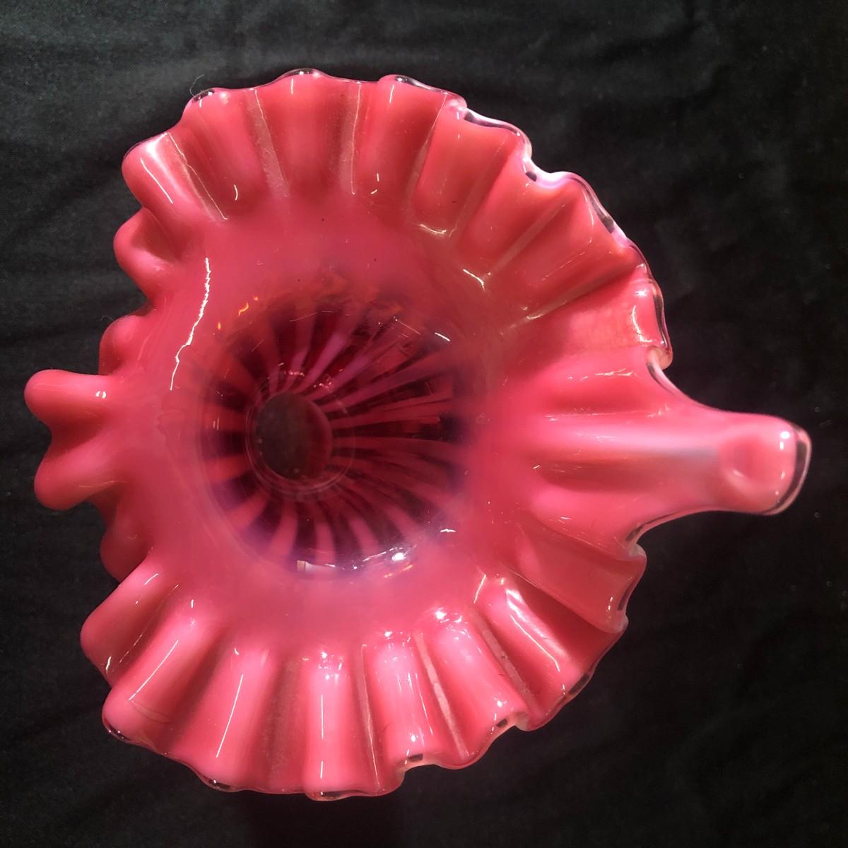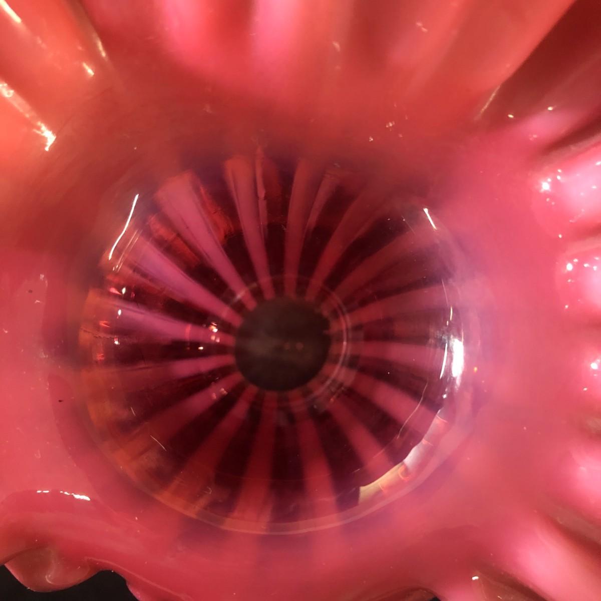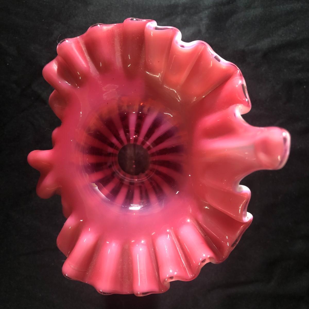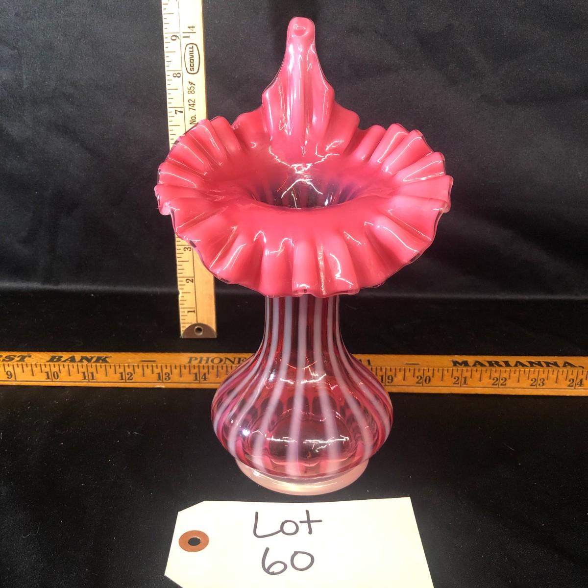 Fenton Cranberry Jack in the Pulpit Opalescent Stripe Ruffled Edge Glass Vase