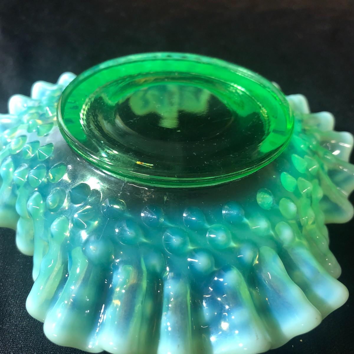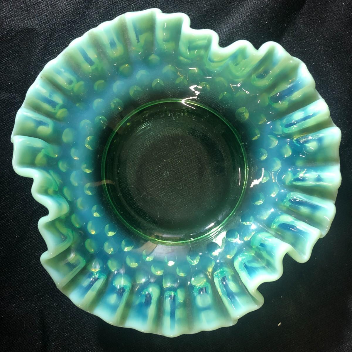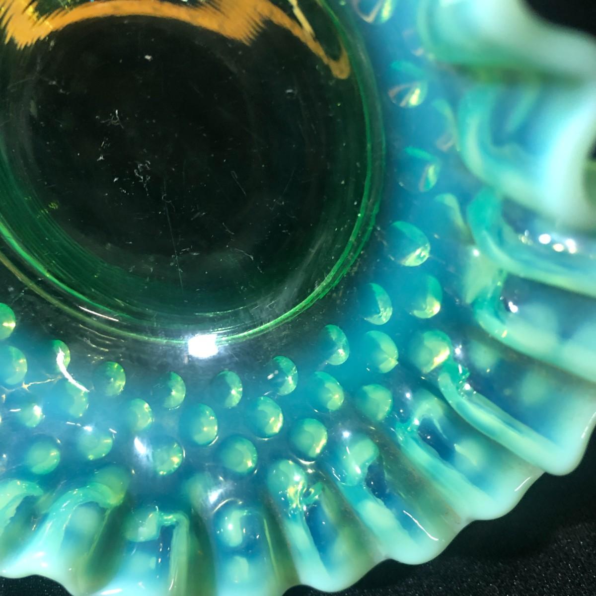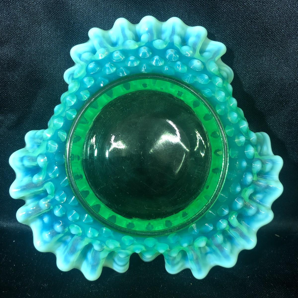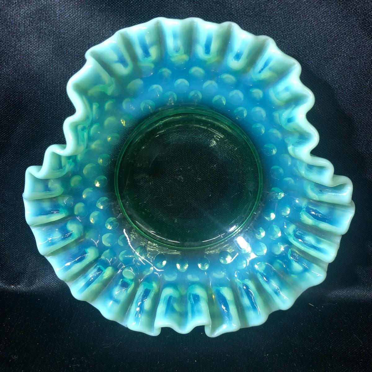 Fenton Aqua Opalescent Hobnail Double Ruffled Candy/Trinket Dish