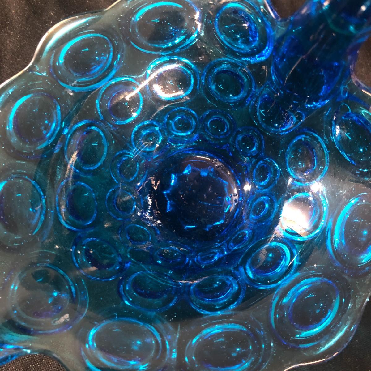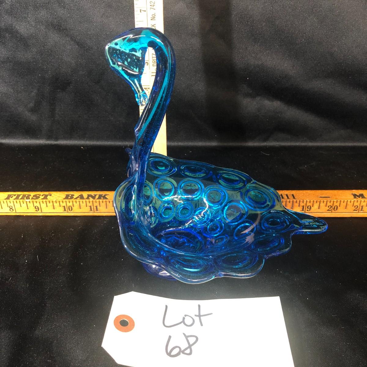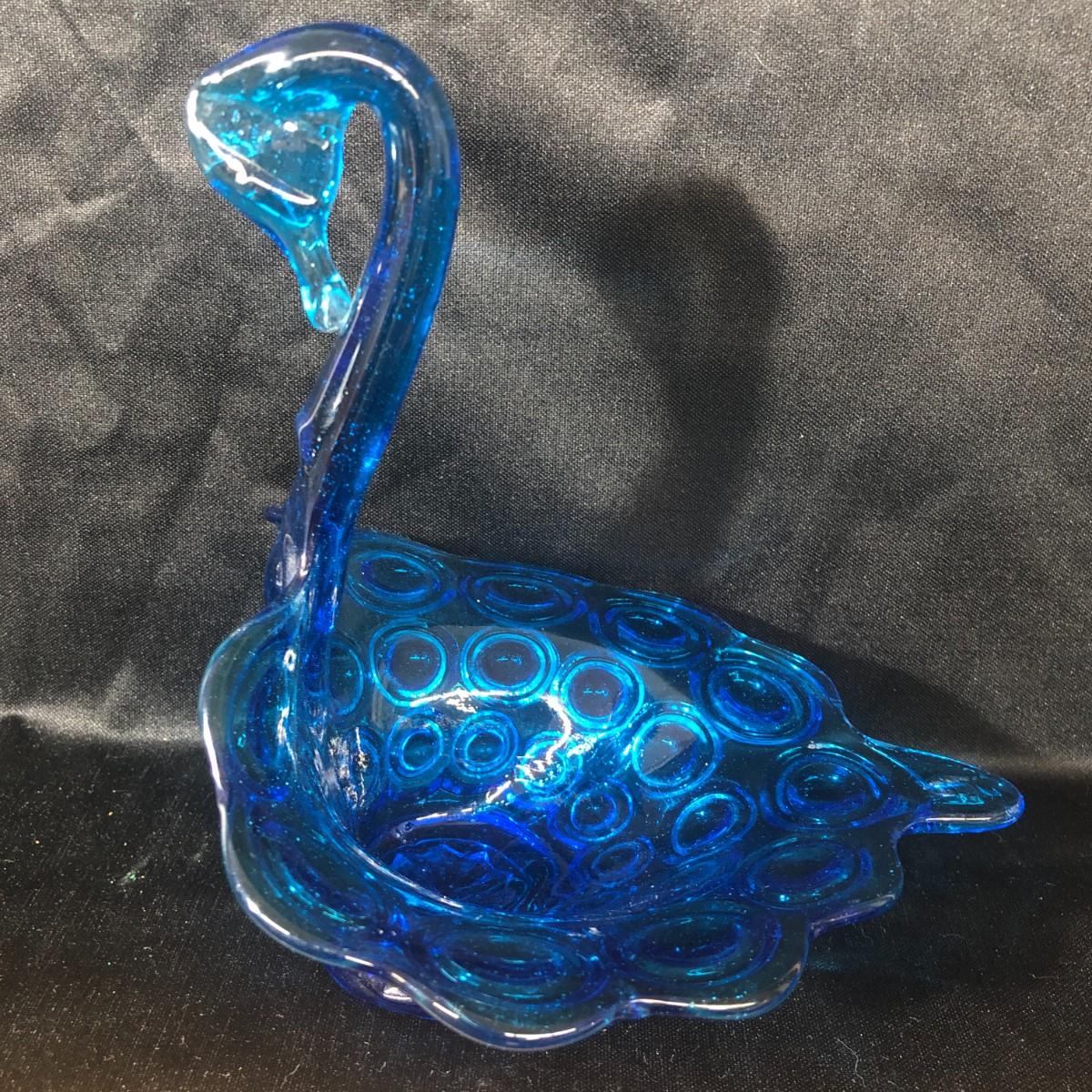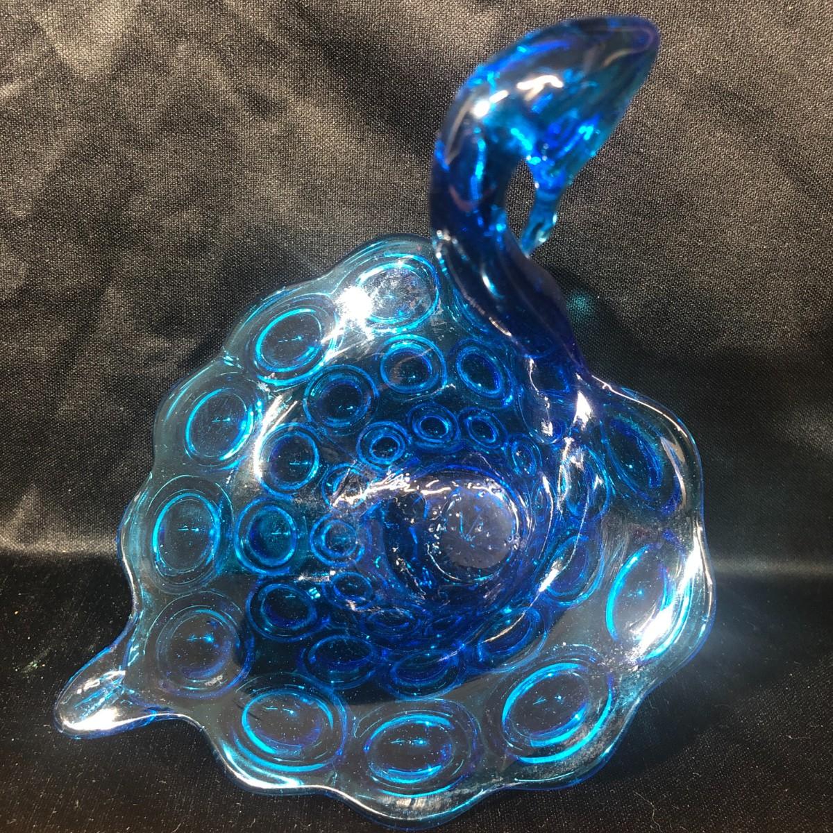 Fenton Cobalt Blue Thumbprint Swan Candy Dish