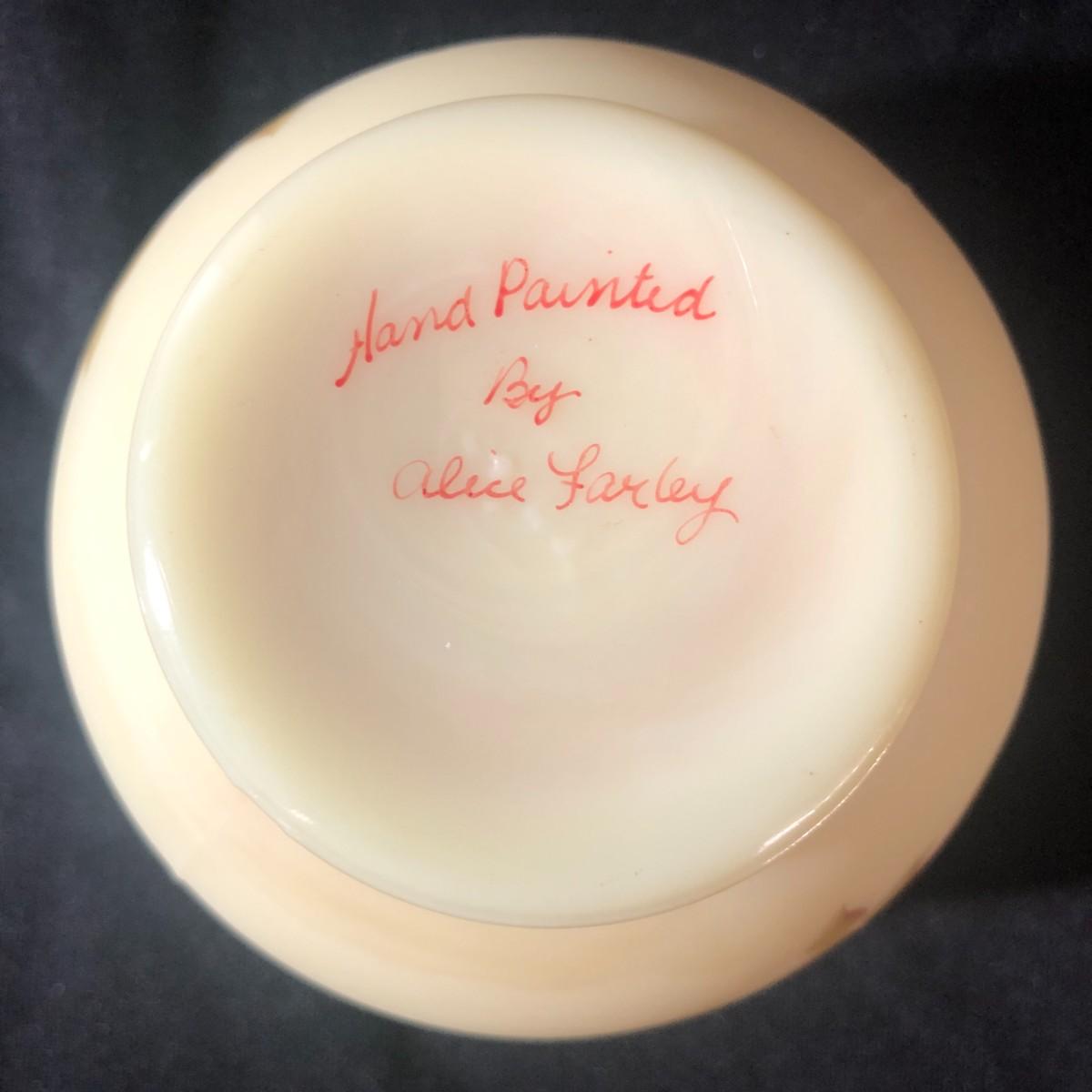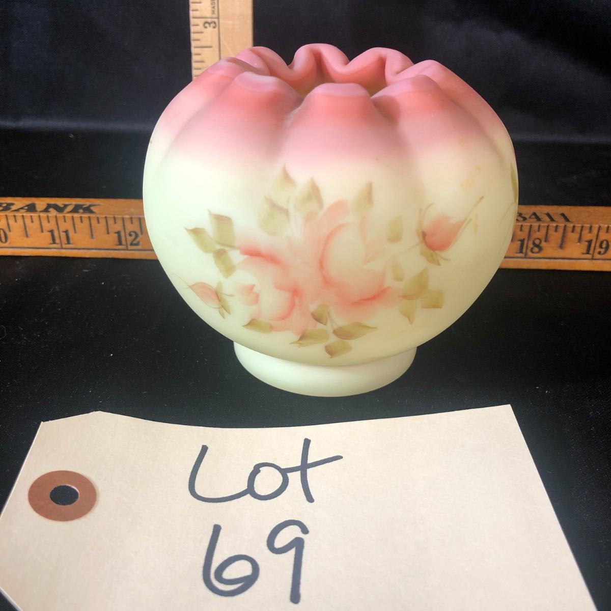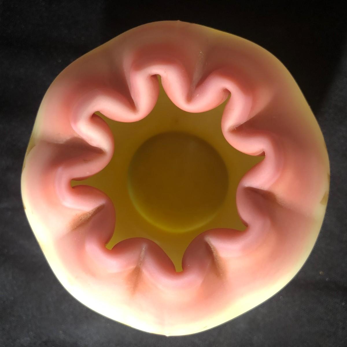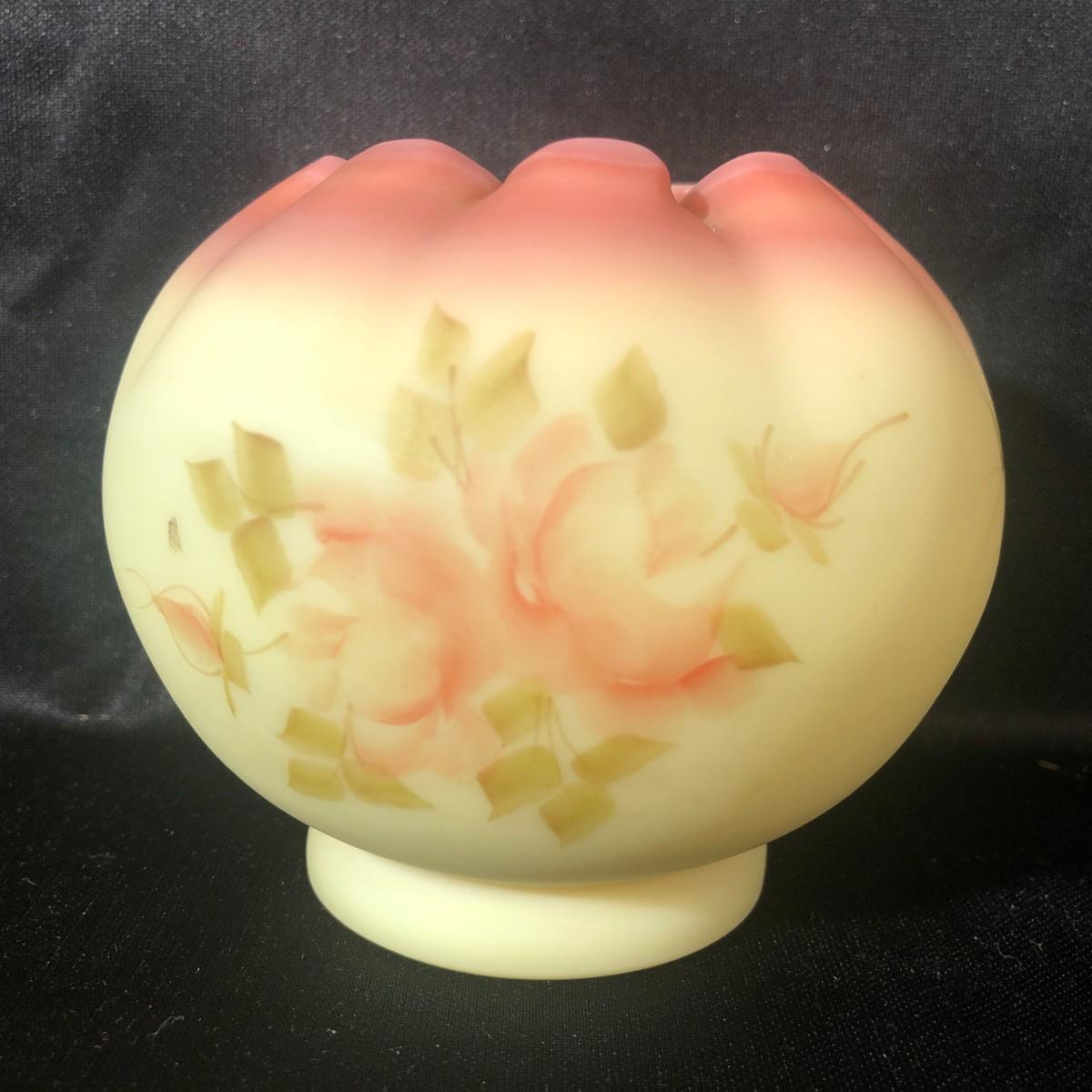 Fenton Burmese Custard Satin Rose Bowl Yellow Cream Rose Pink