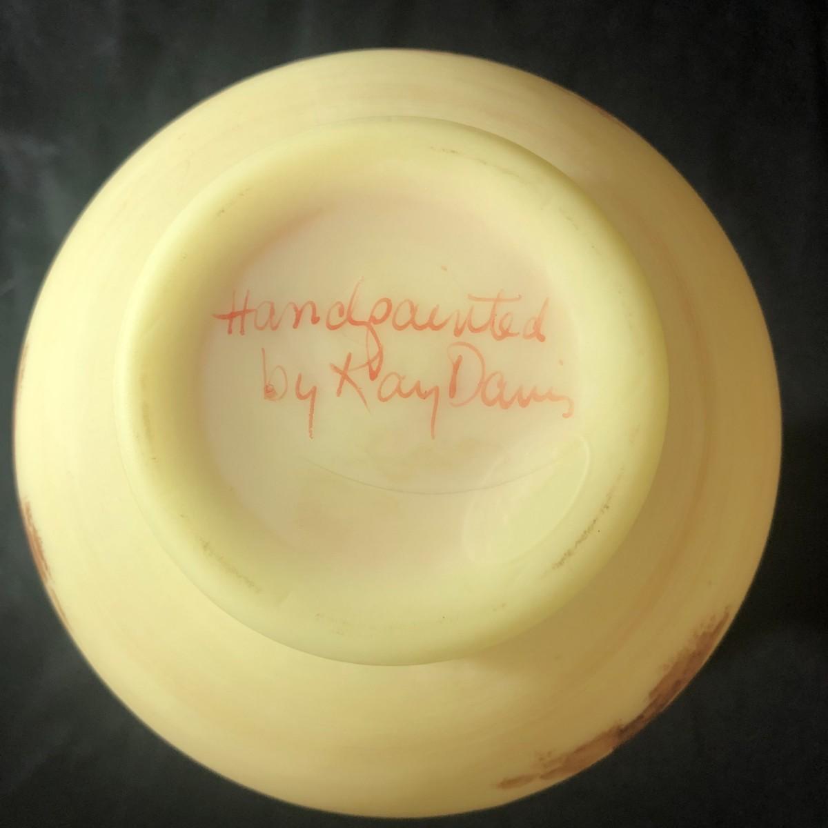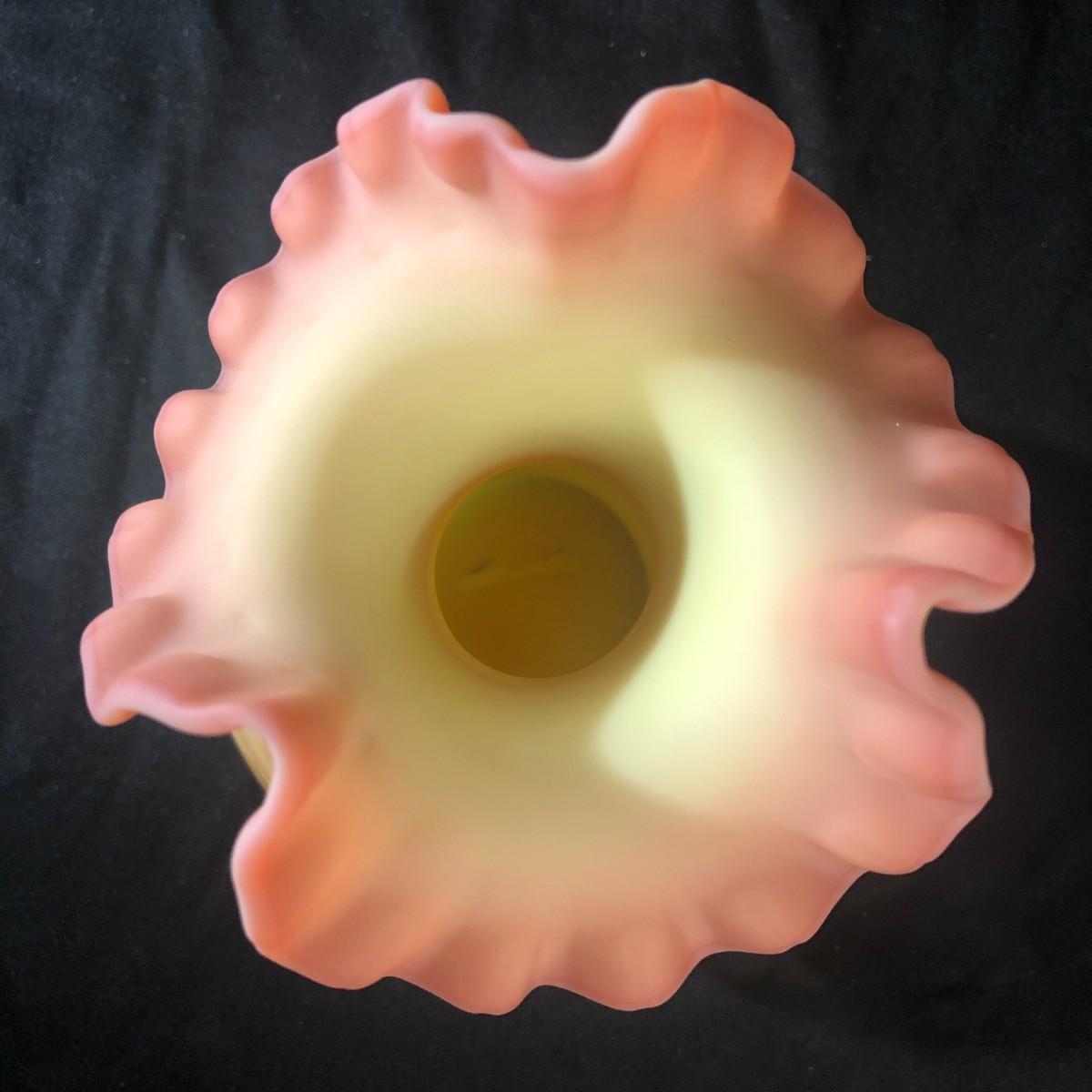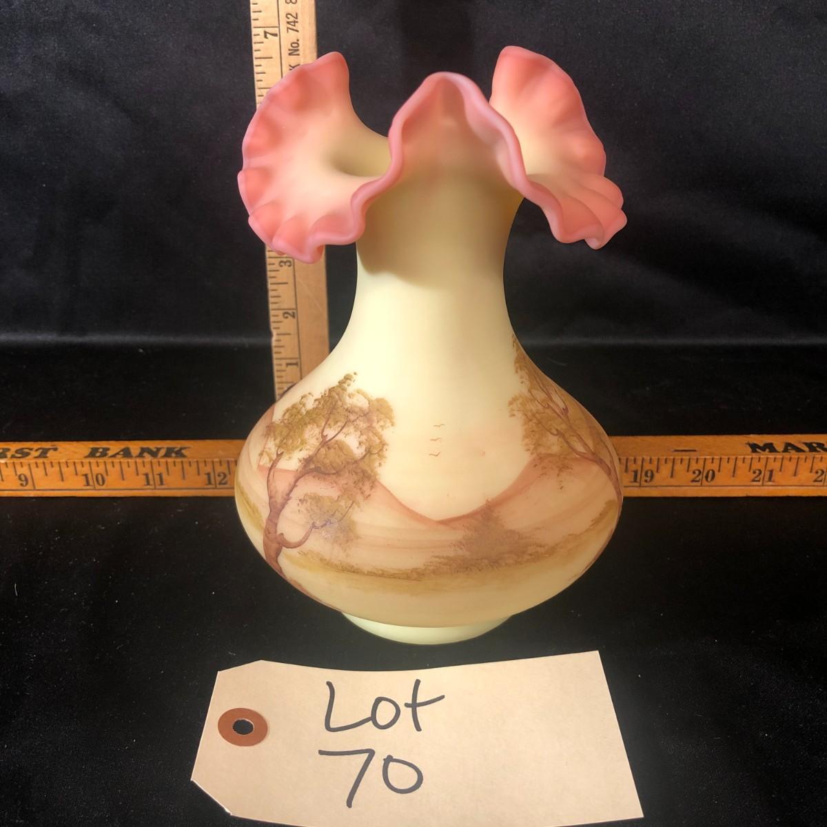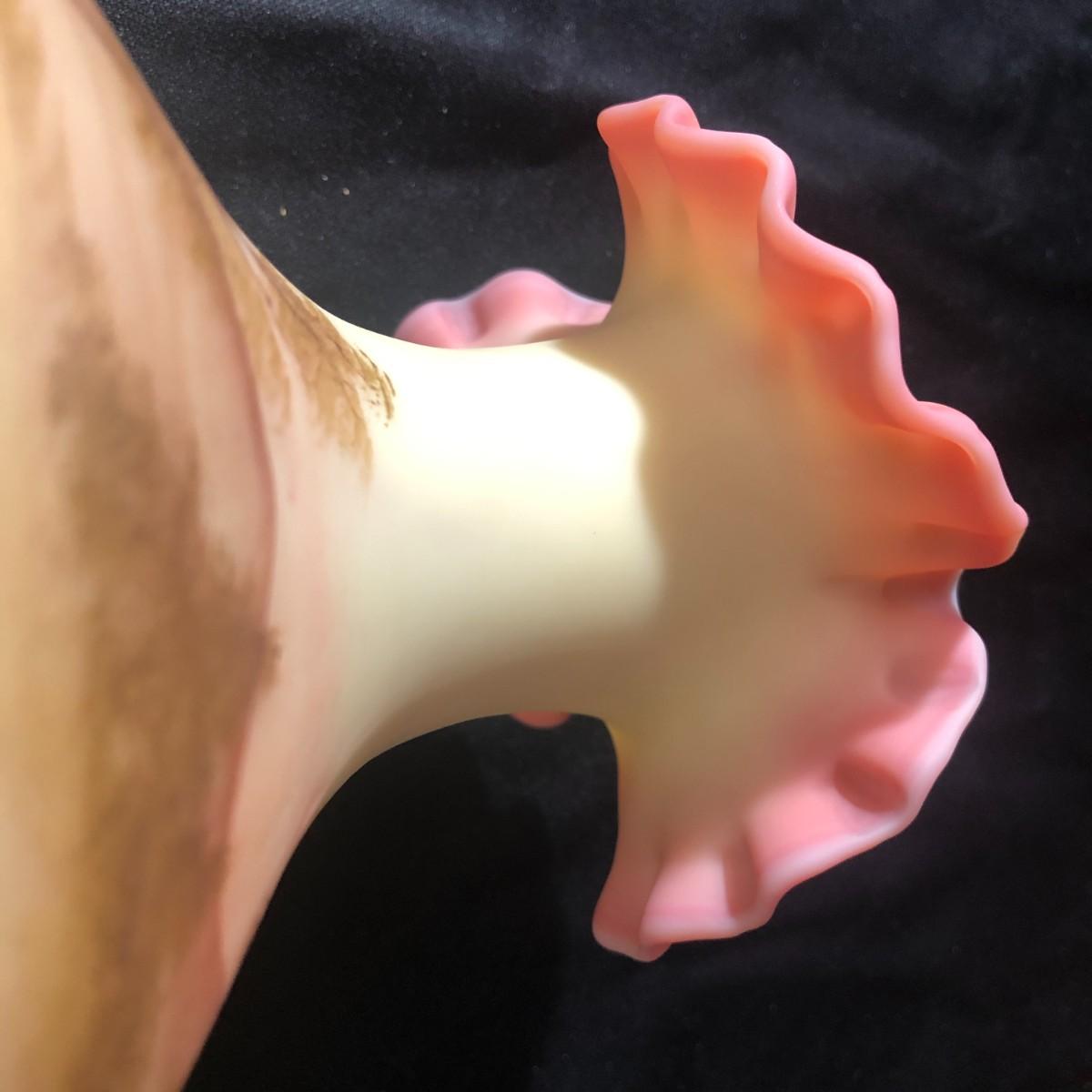 Fenton Hand Painted Burmese Vase Double Ruffled Edge