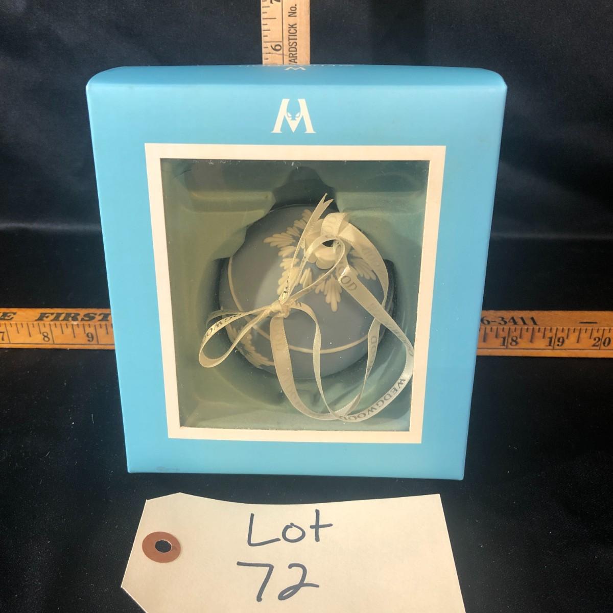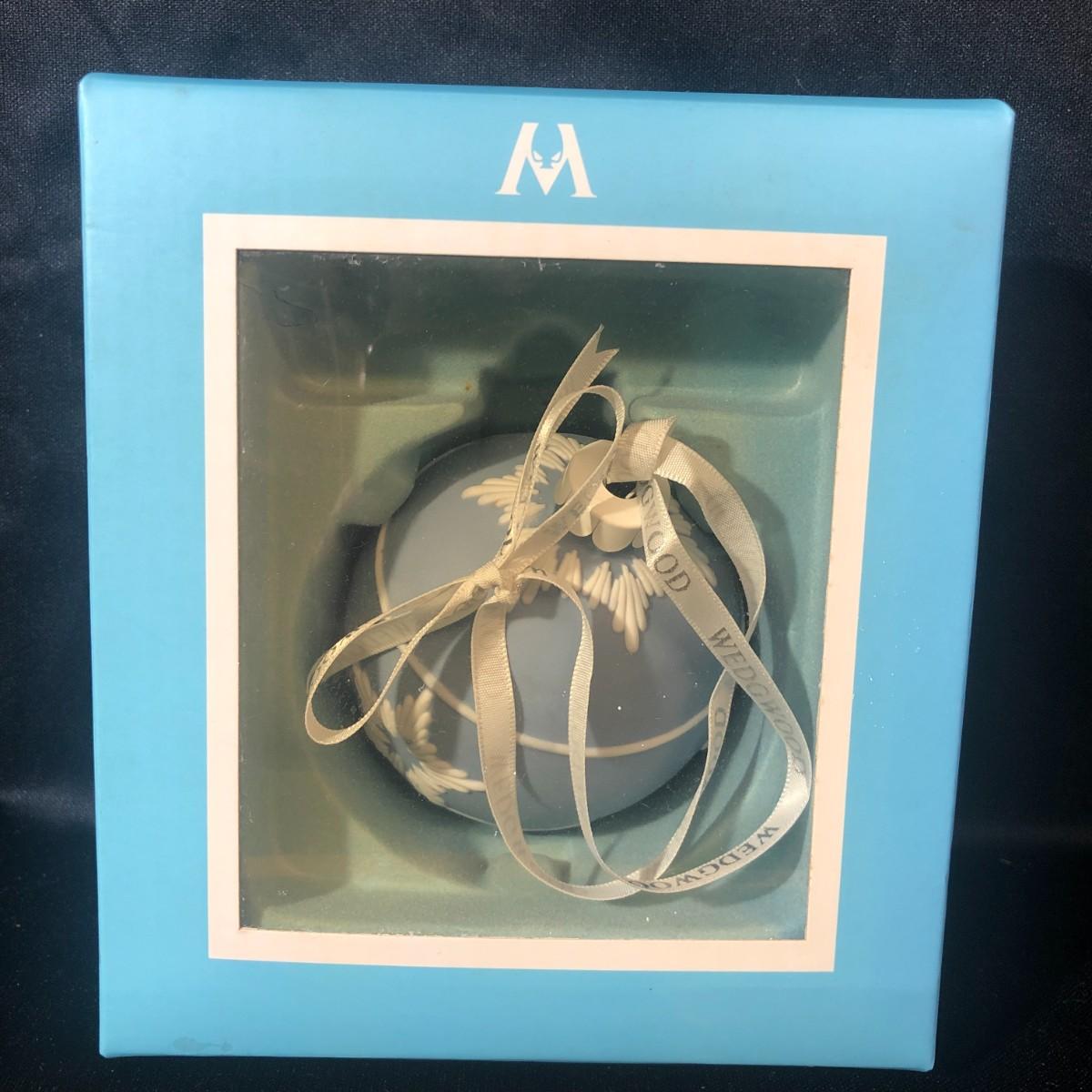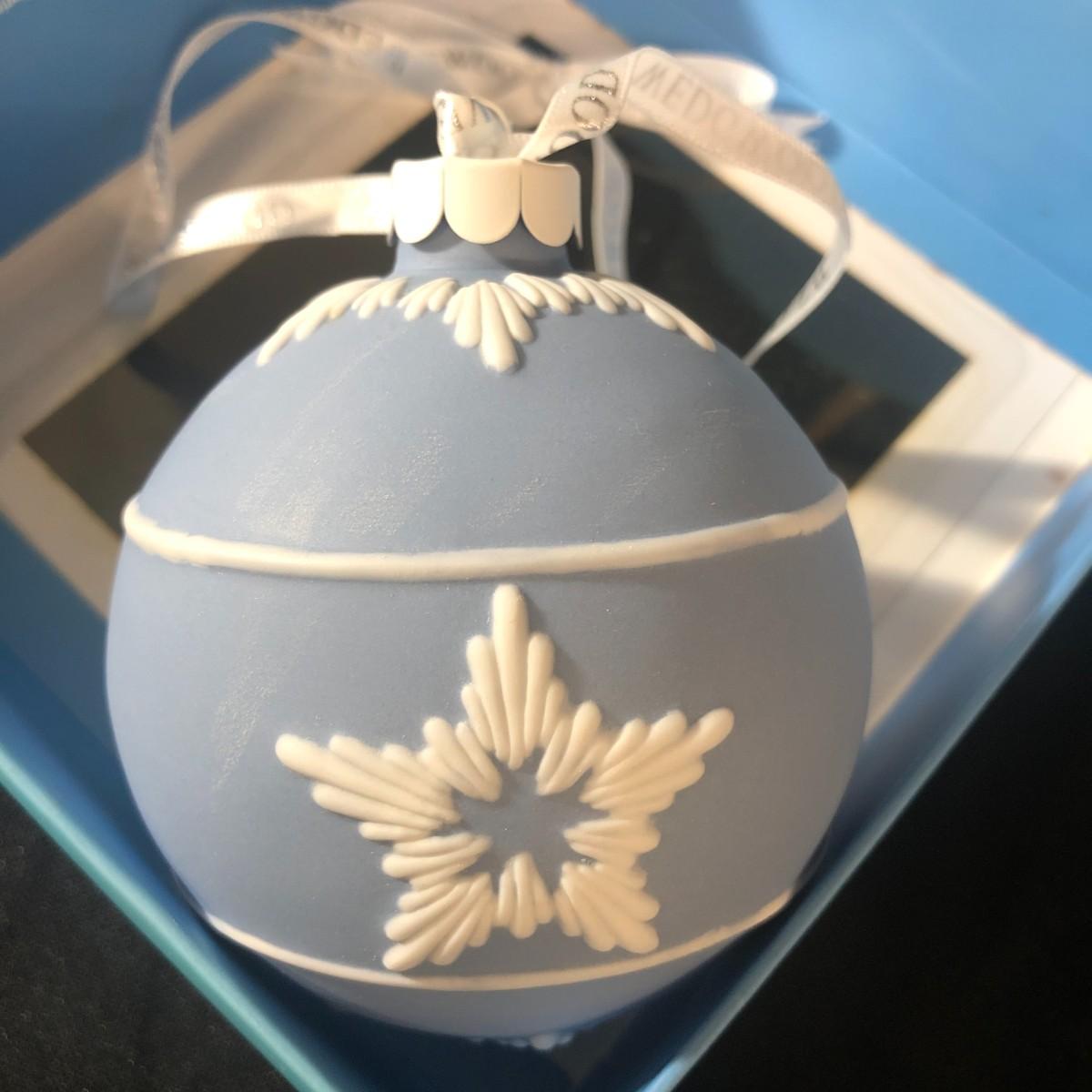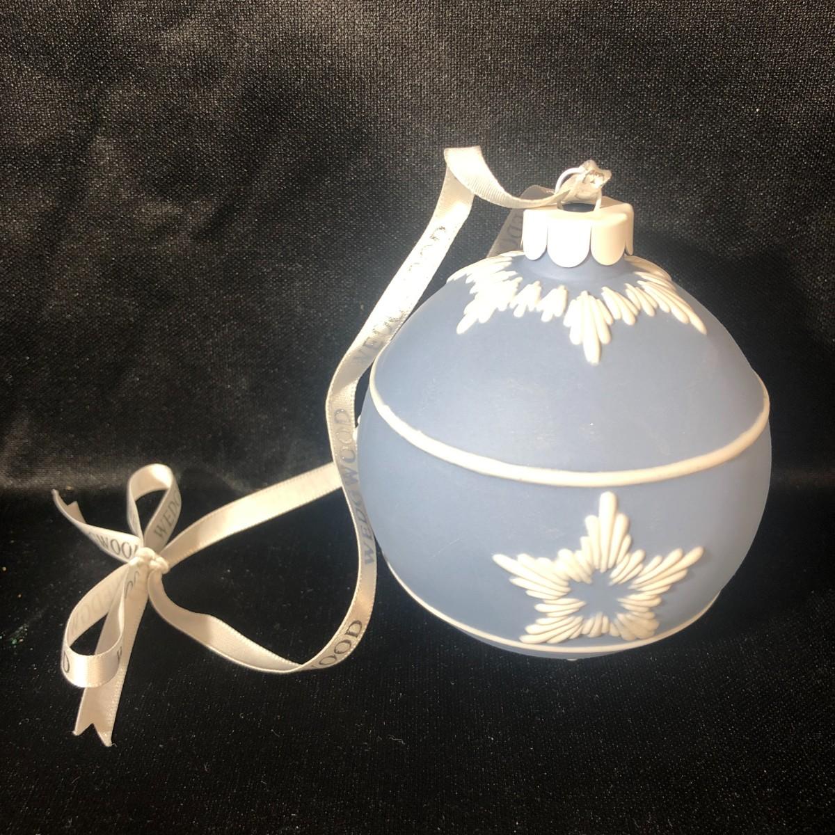 Wedgwood Blue Ball-White Star Boxed Jasperware Ball Ornament
