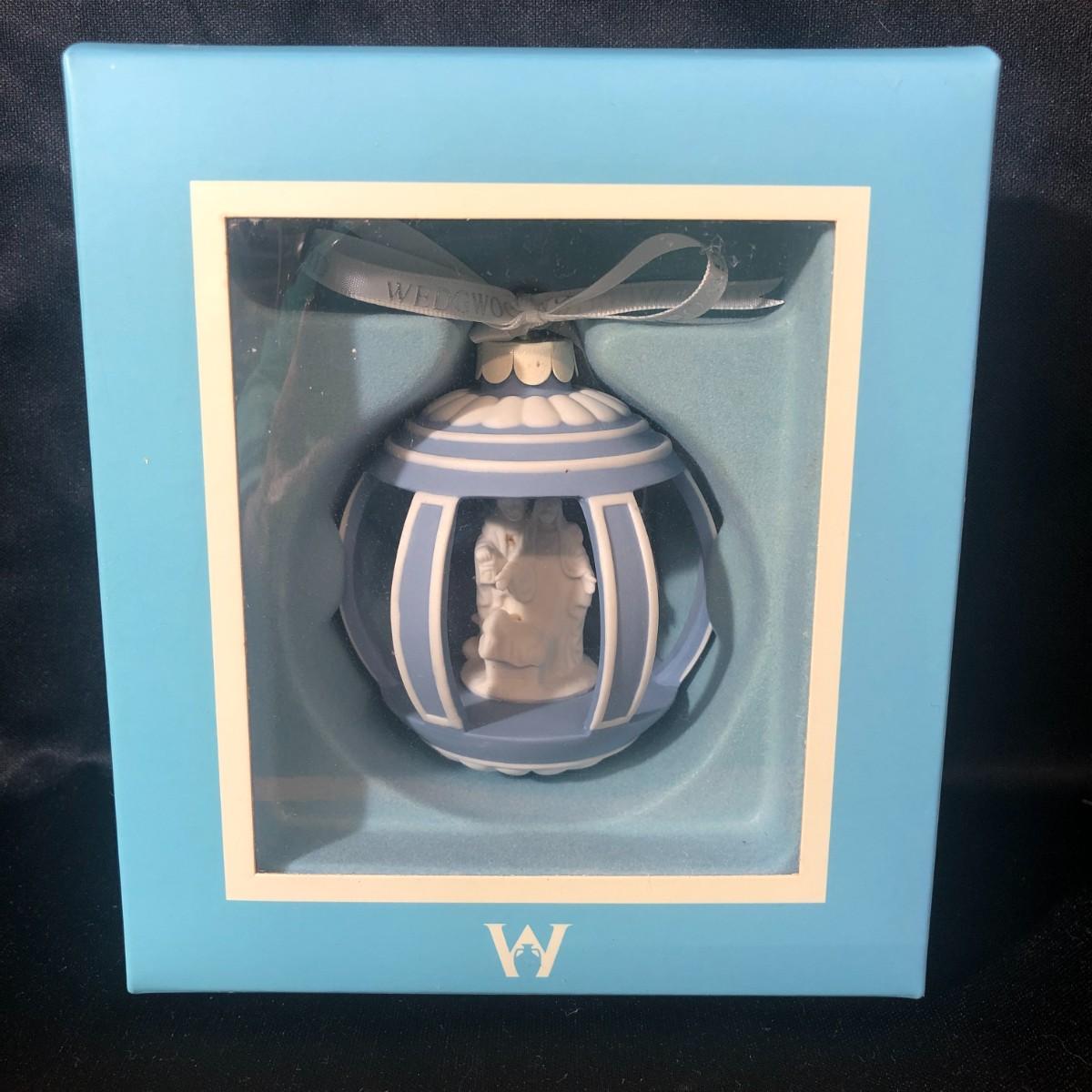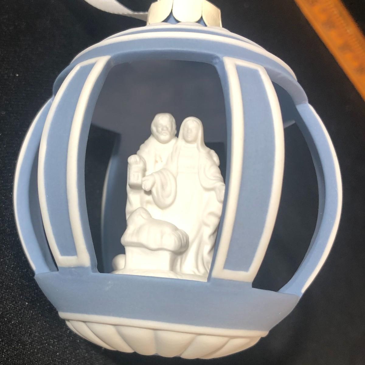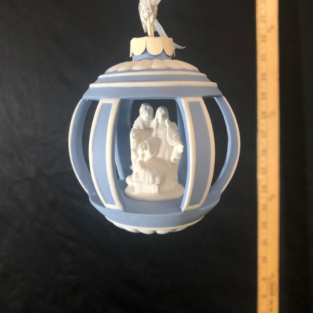 Wedgewood Nativity Scene Ornament 3-D Design Jasperware Blue with White Accents
