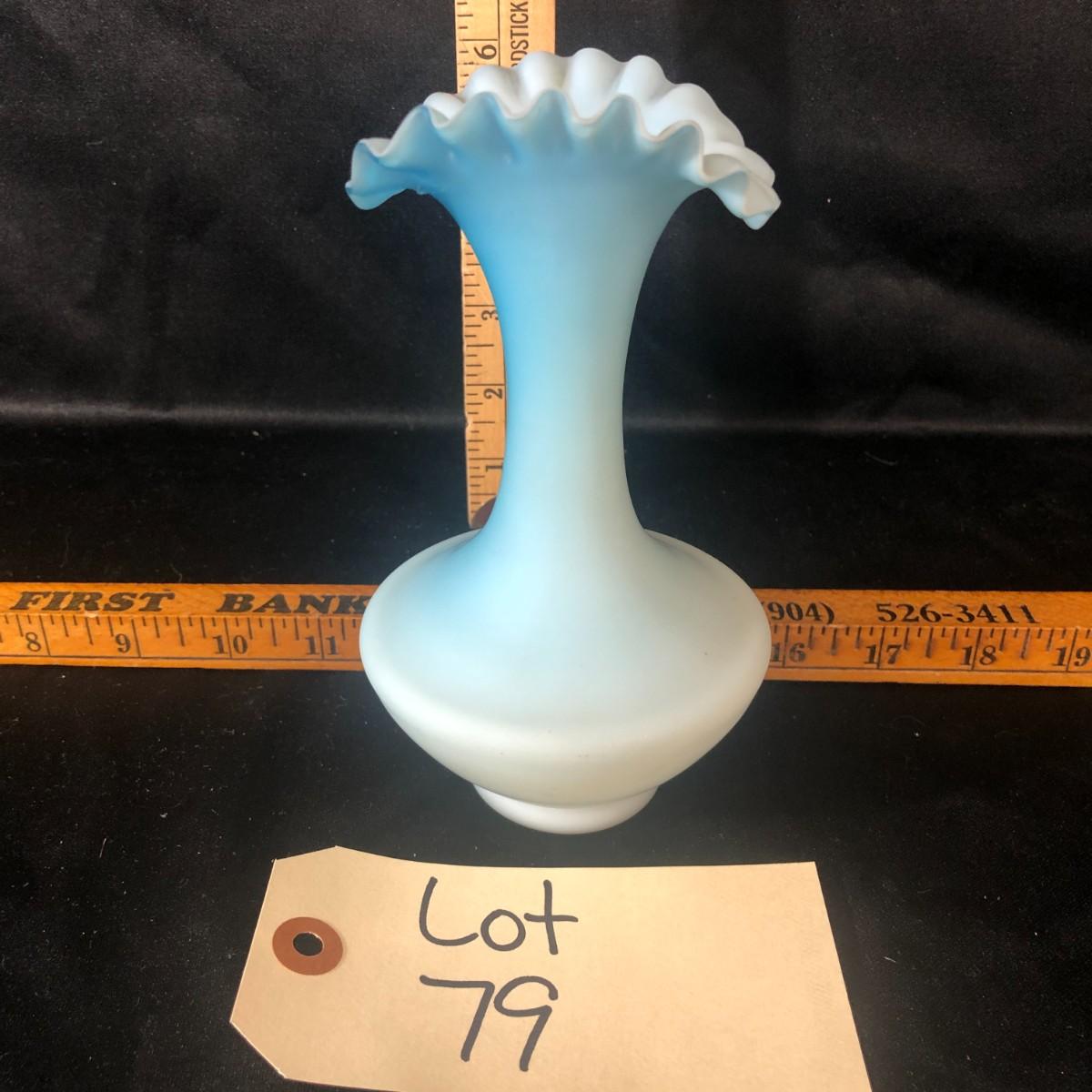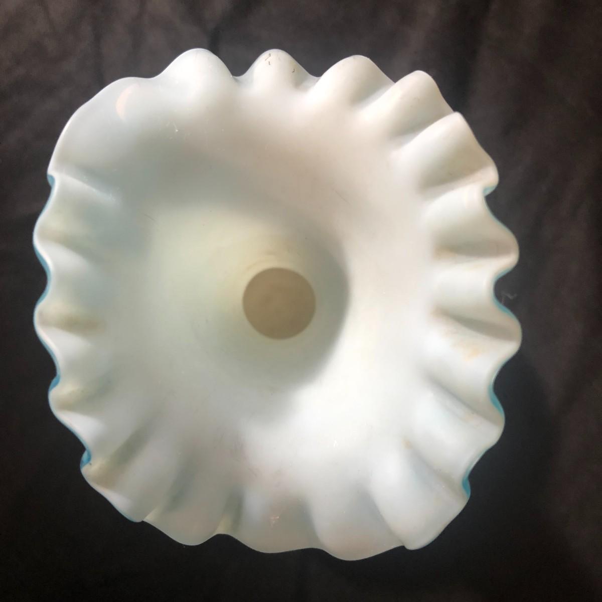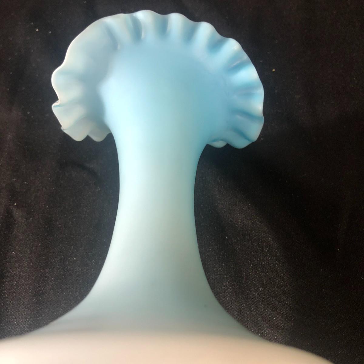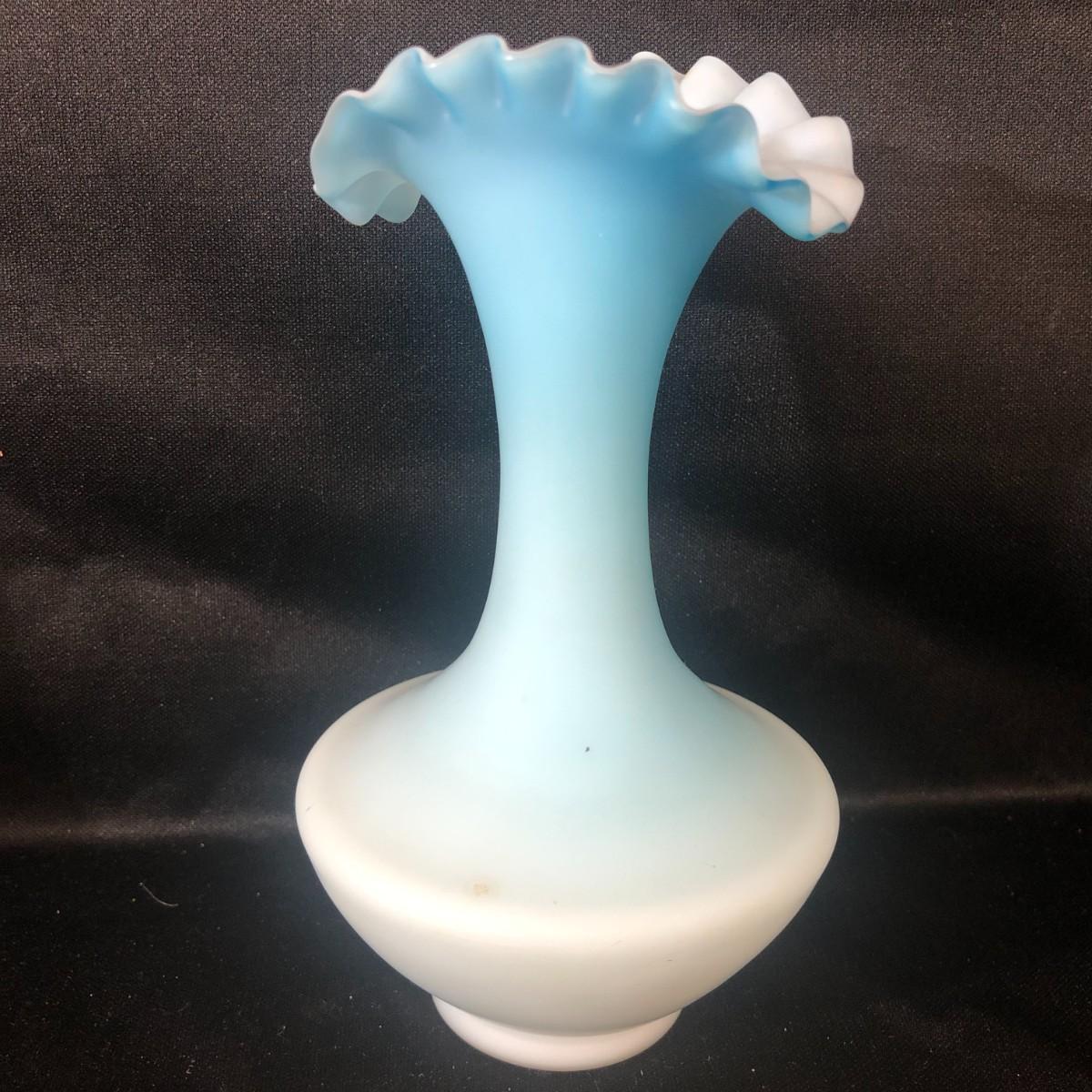 Fenton Blue Mother of Pearl Satin Diamond Quilted Ruffled Glass Vase
