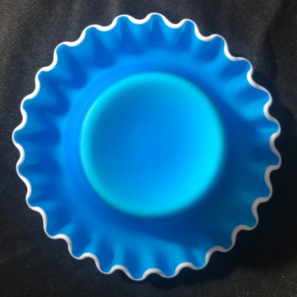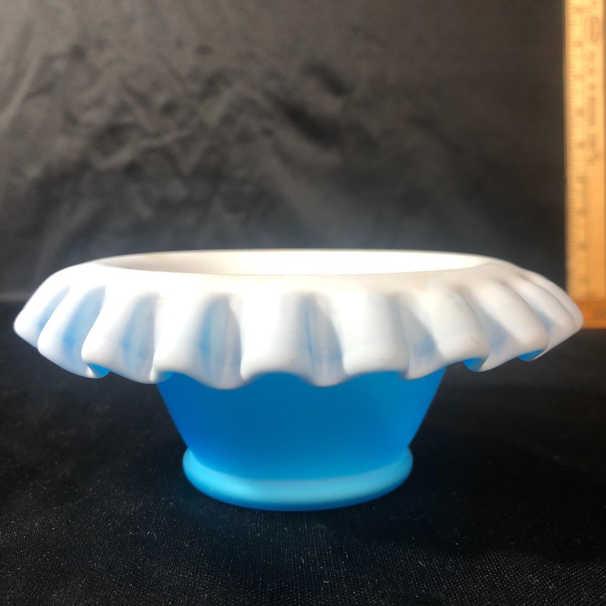 Vintage Fenton Blue Ruffled Rolled Rim Bowl