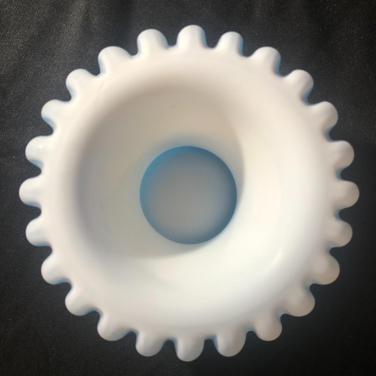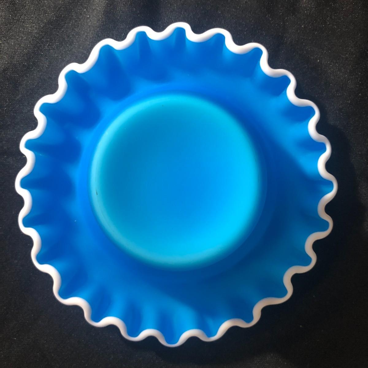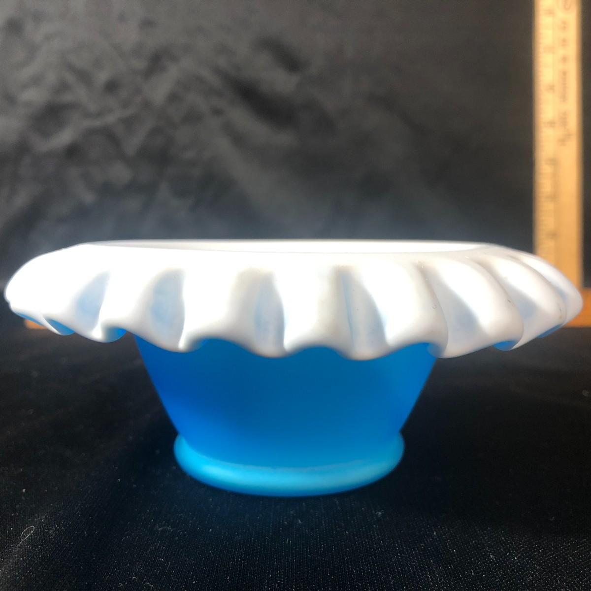 Vintage Fenton Blue Ruffled Rolled Rim Bowl
