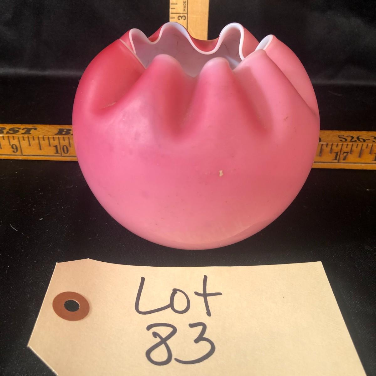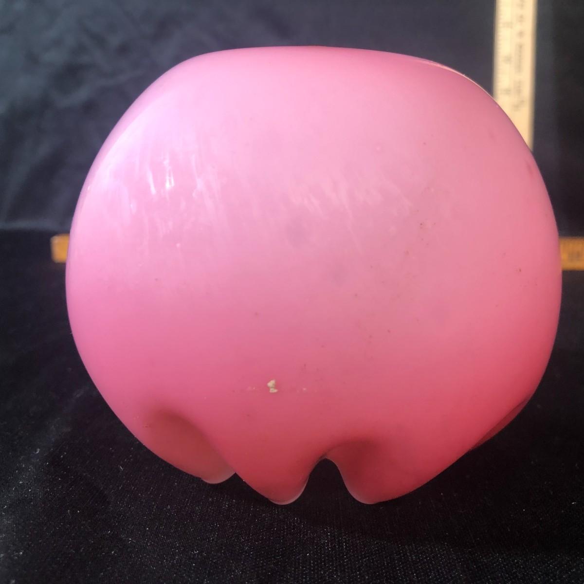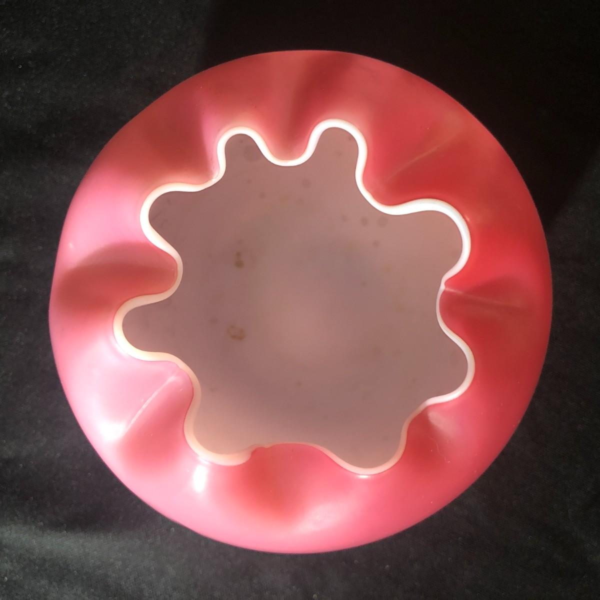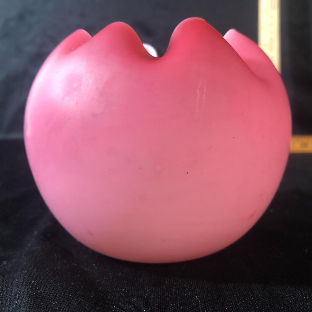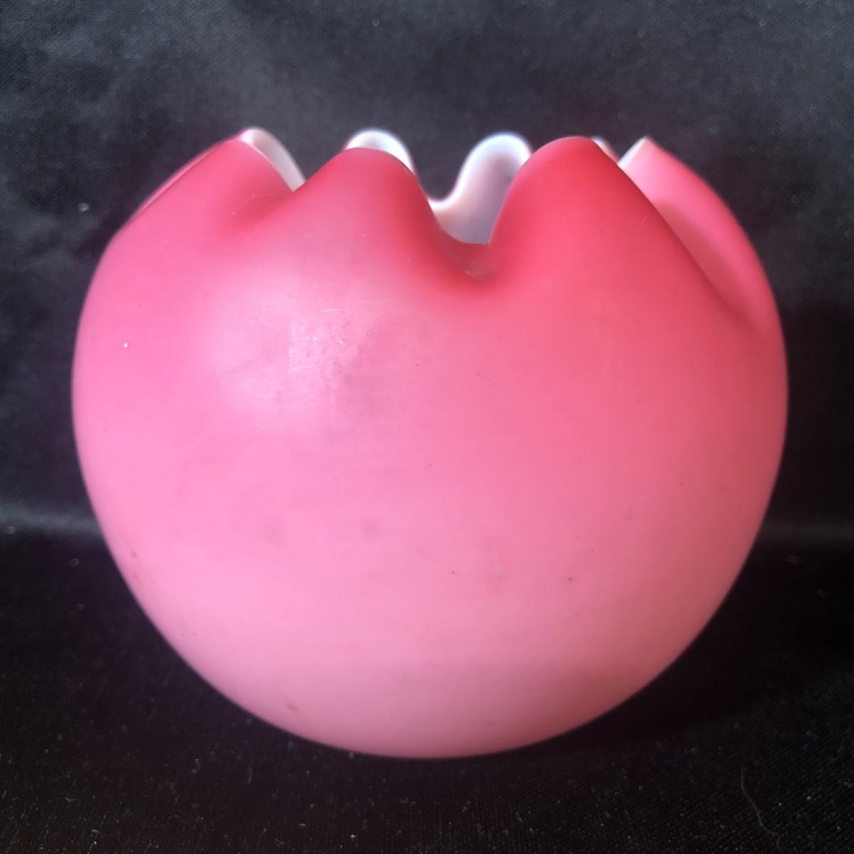 Vintage Burmese Satin Glass Pink Crimped Edge Rose Bowl