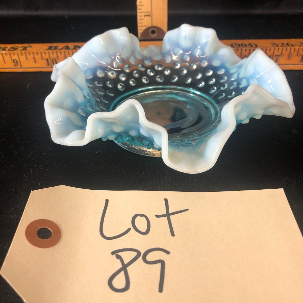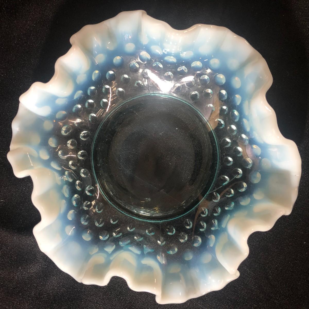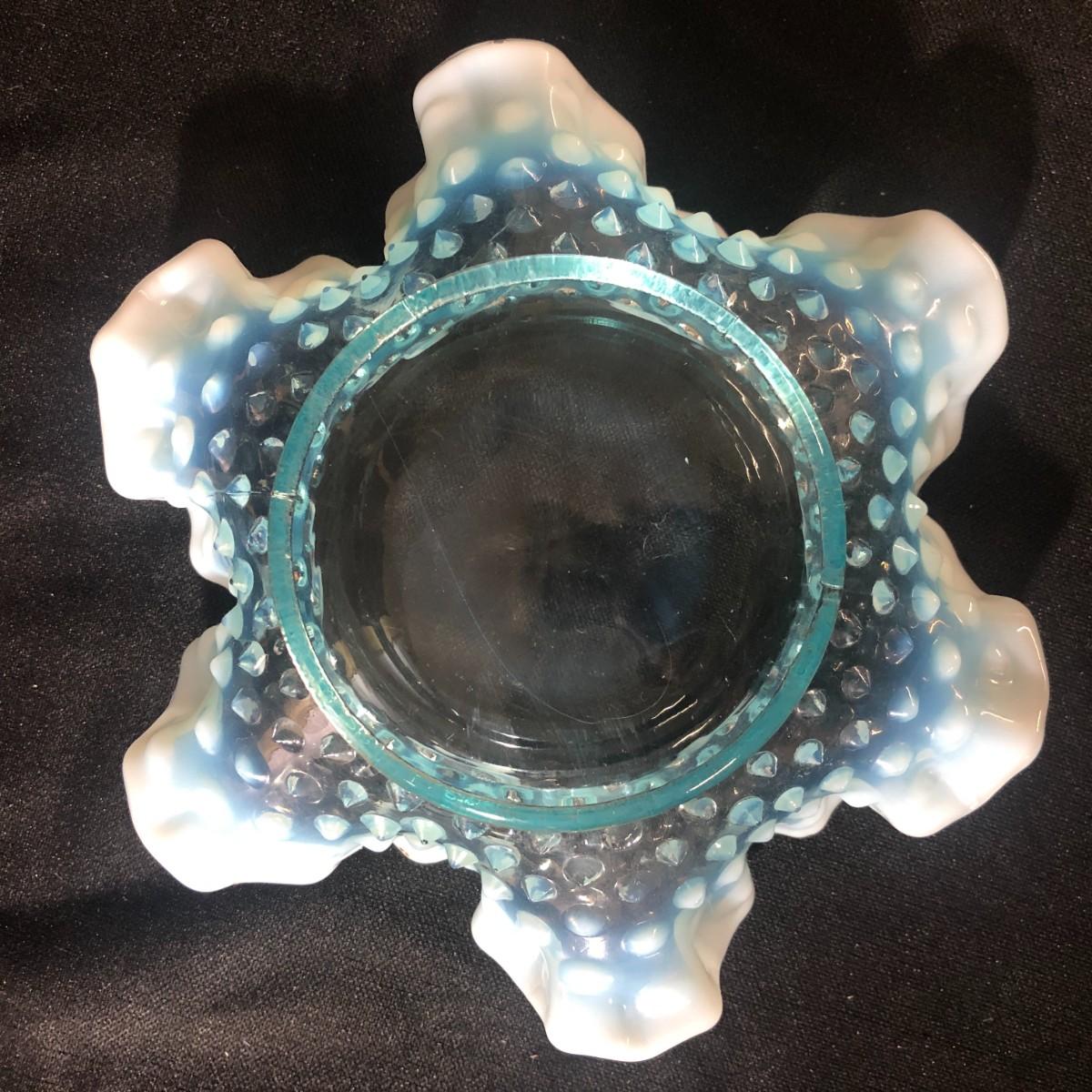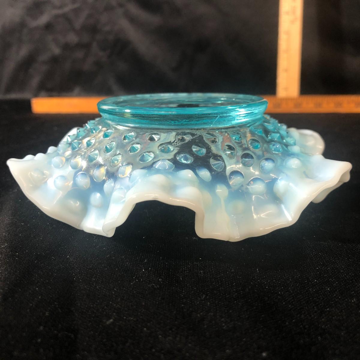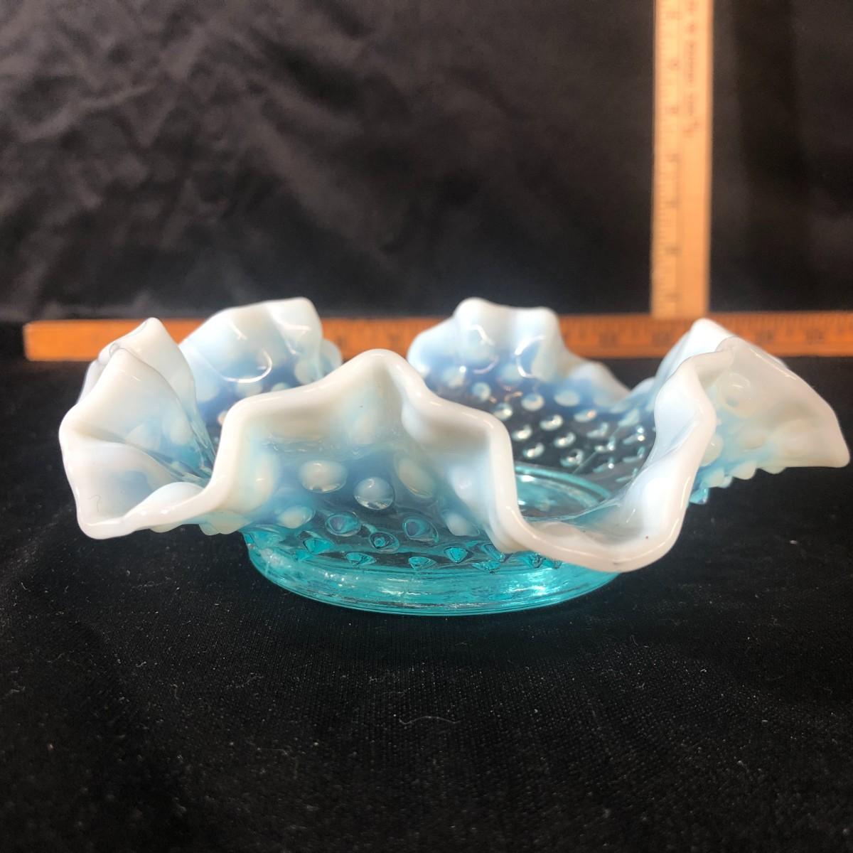 Fenton Turq Blue Opalescent Hobnail Ruffled Bon Bon Dish