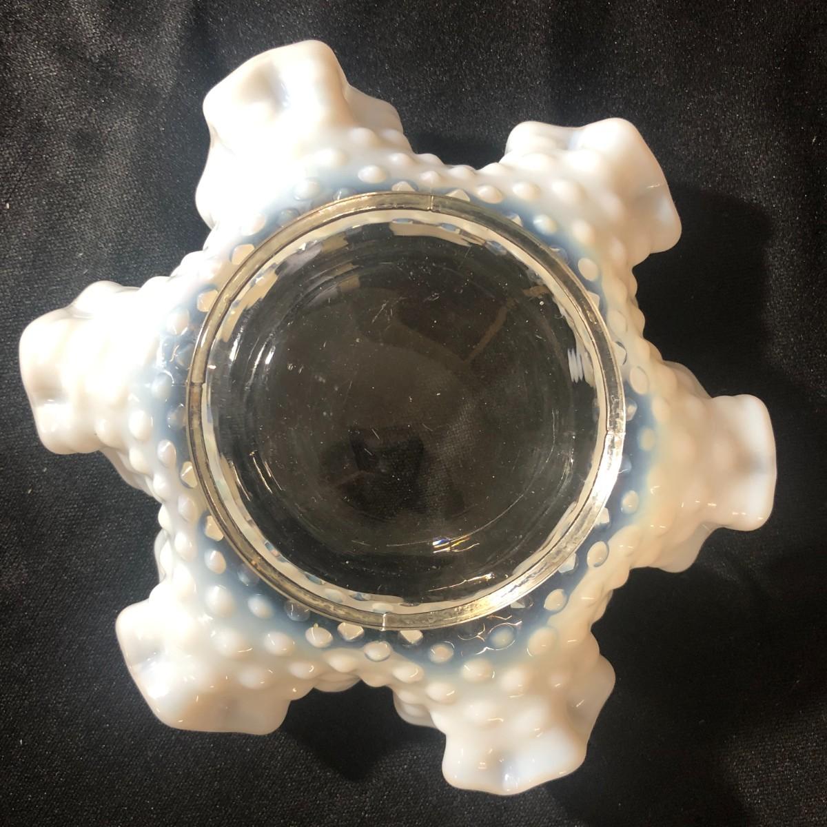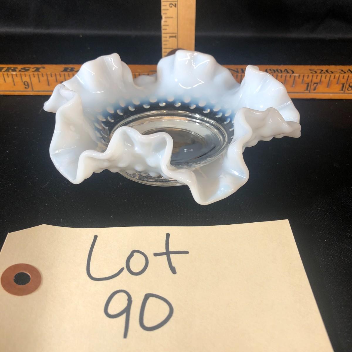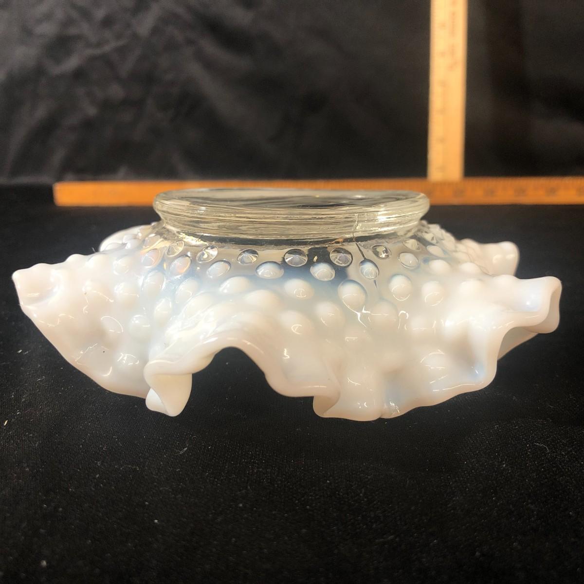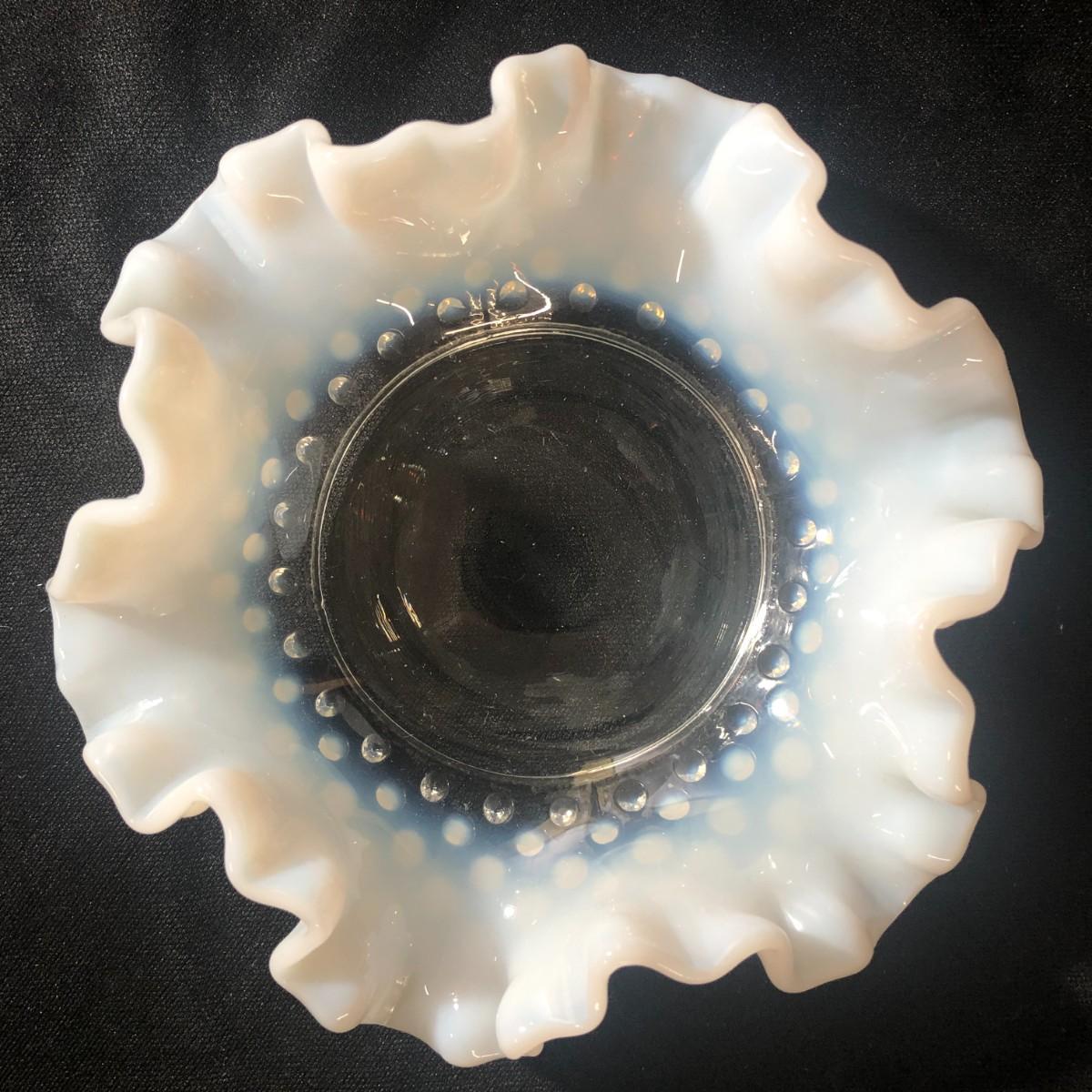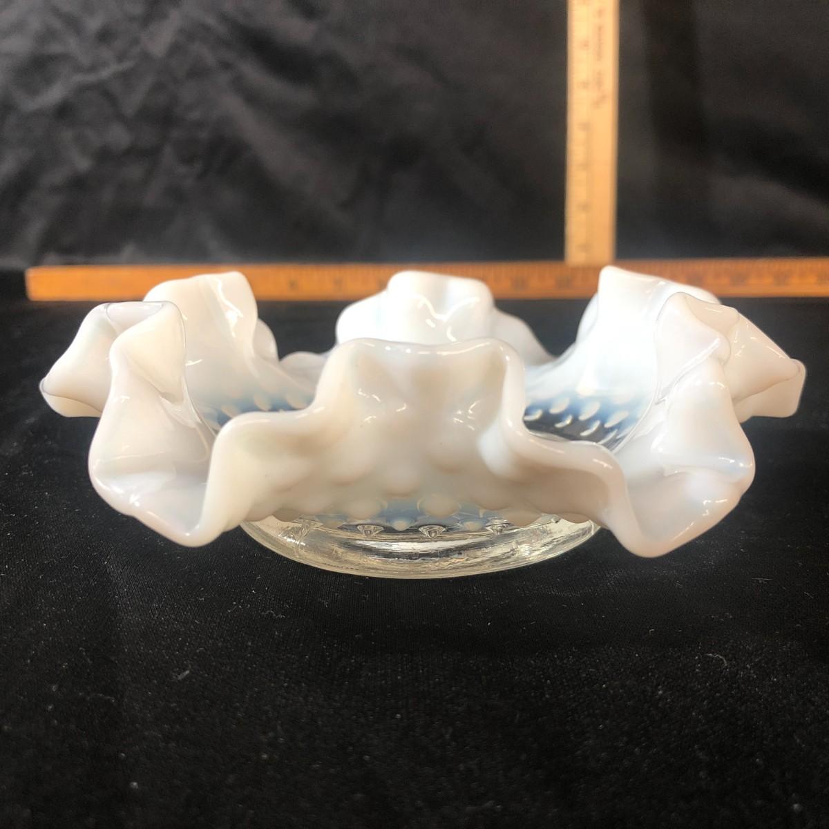 Fenton White/Clear Opalescent Hobnail Ruffled Trinket Dish