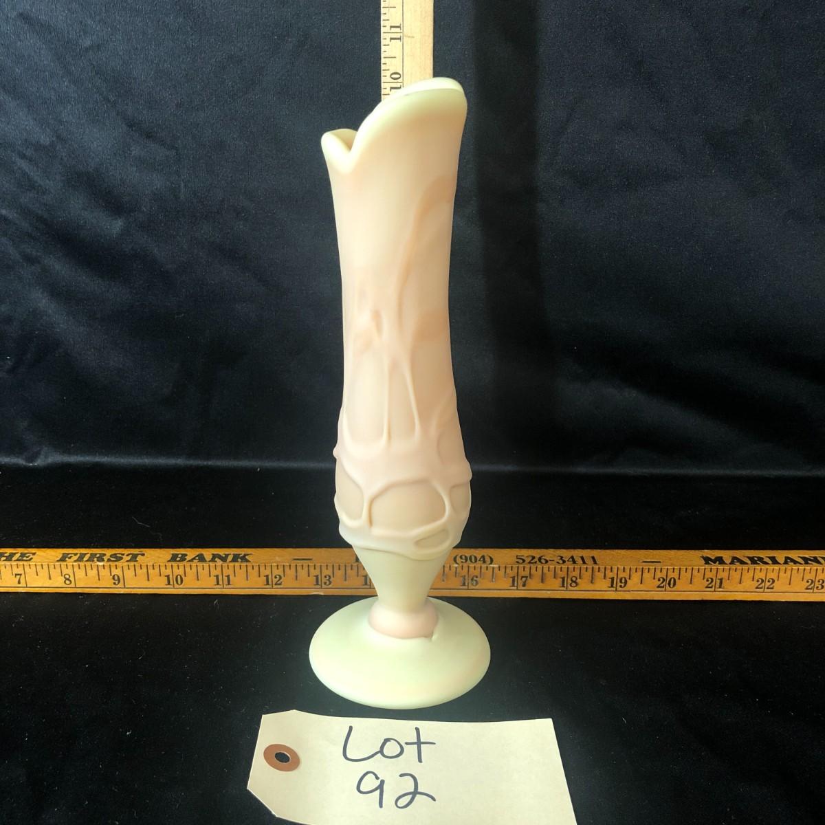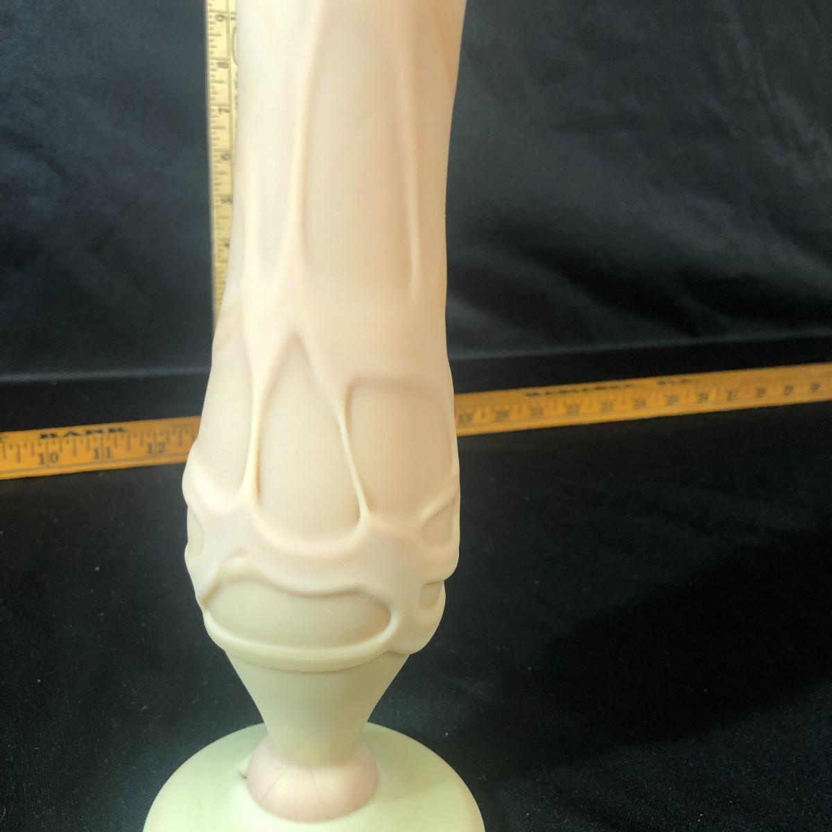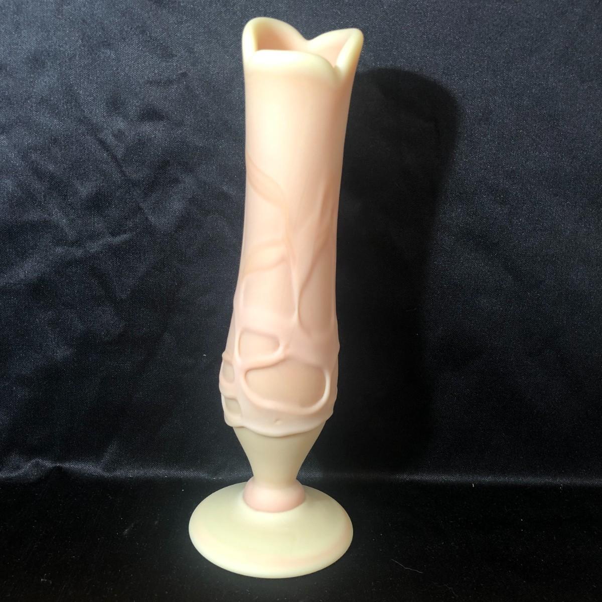 1992 Gibson Burmese Glass Footed Vase - Pink Satin Embossed