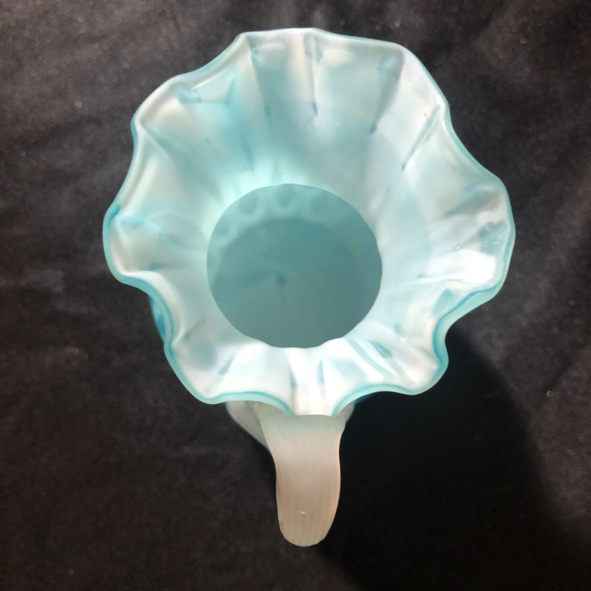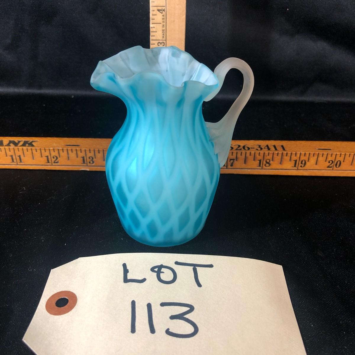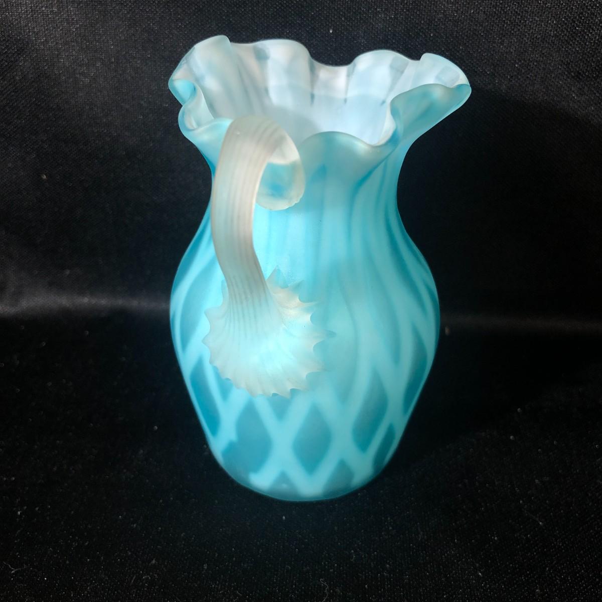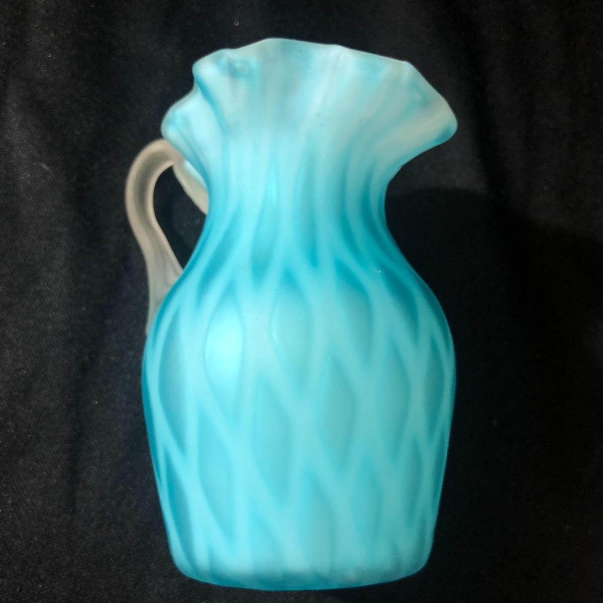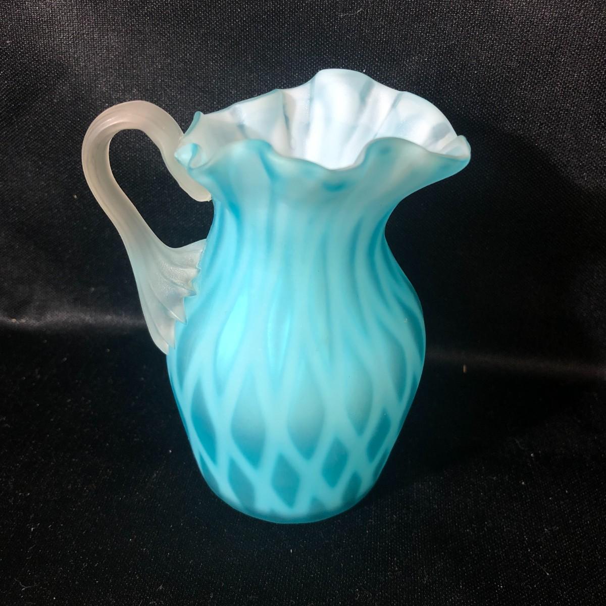 Mt Washington Blue Diamond Quilted Satin Glass Creamer With Ruffled Rim