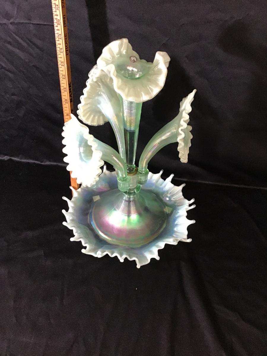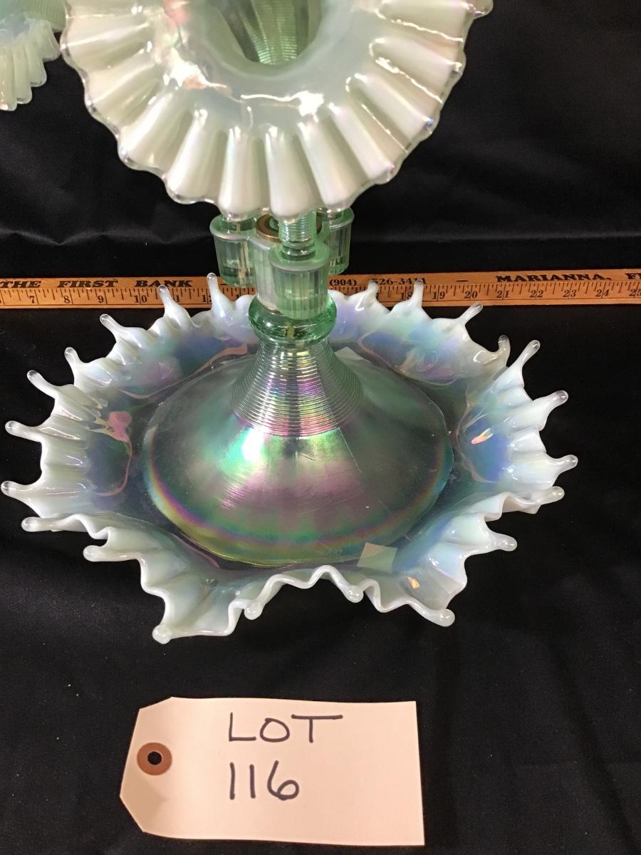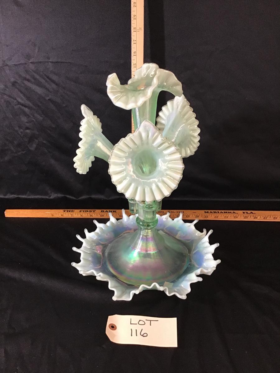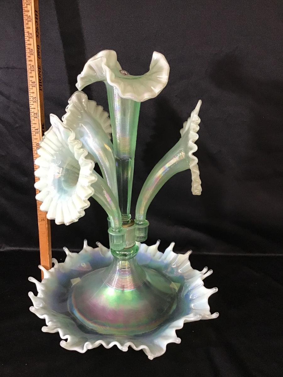 Fenton Glass Willow Green Opalescent Epergne Frank Fenton Centennial Collection