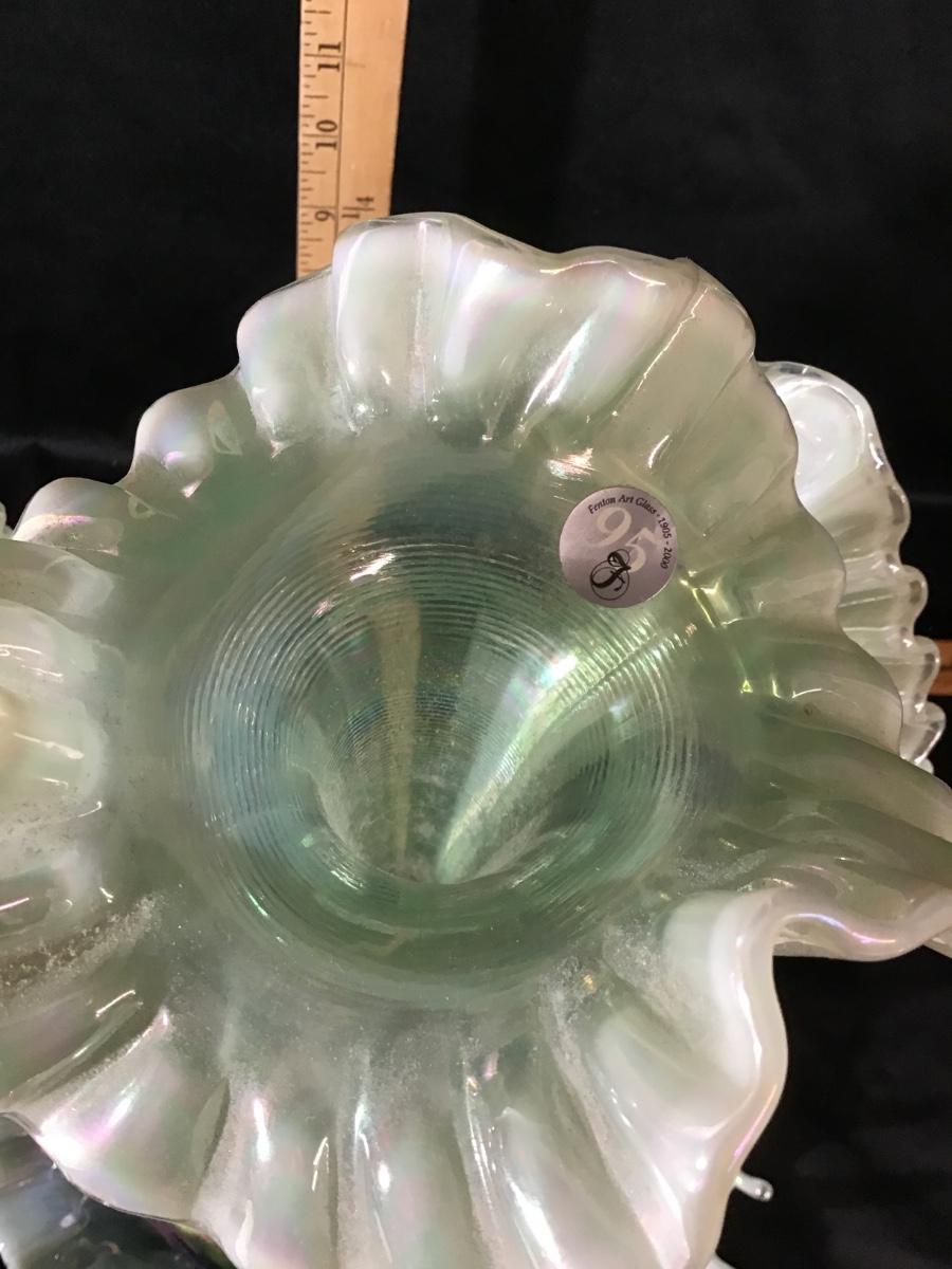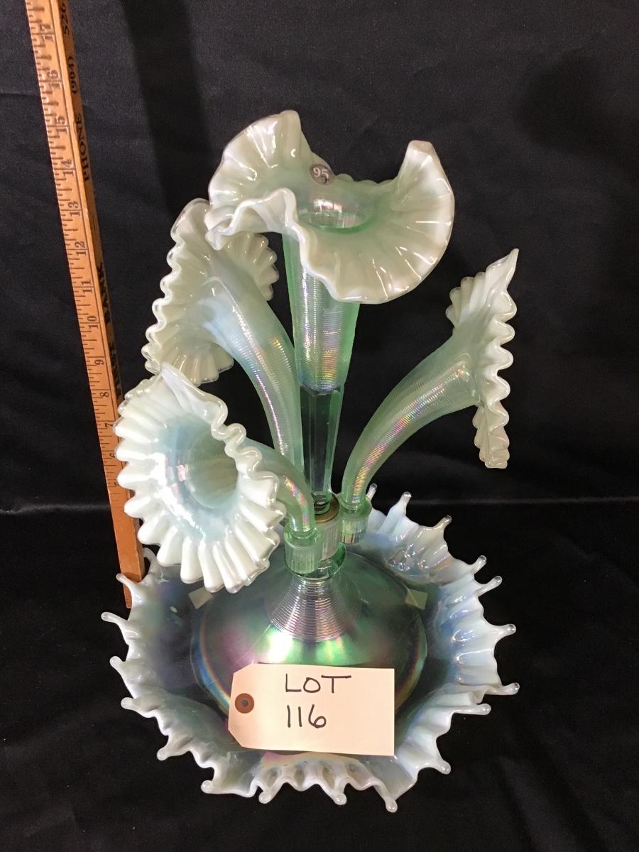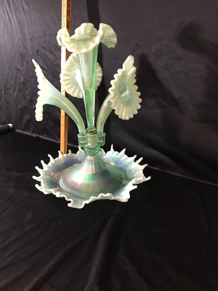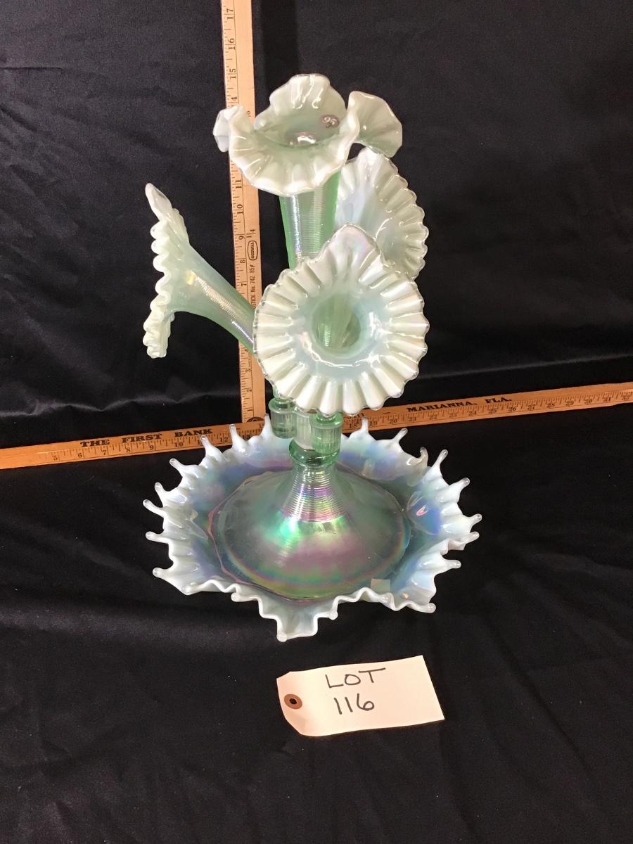 Fenton Glass Willow Green Opalescent Epergne Frank Fenton Centennial Collection