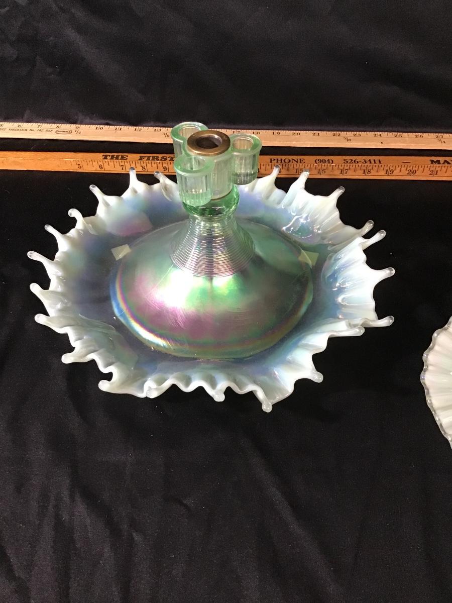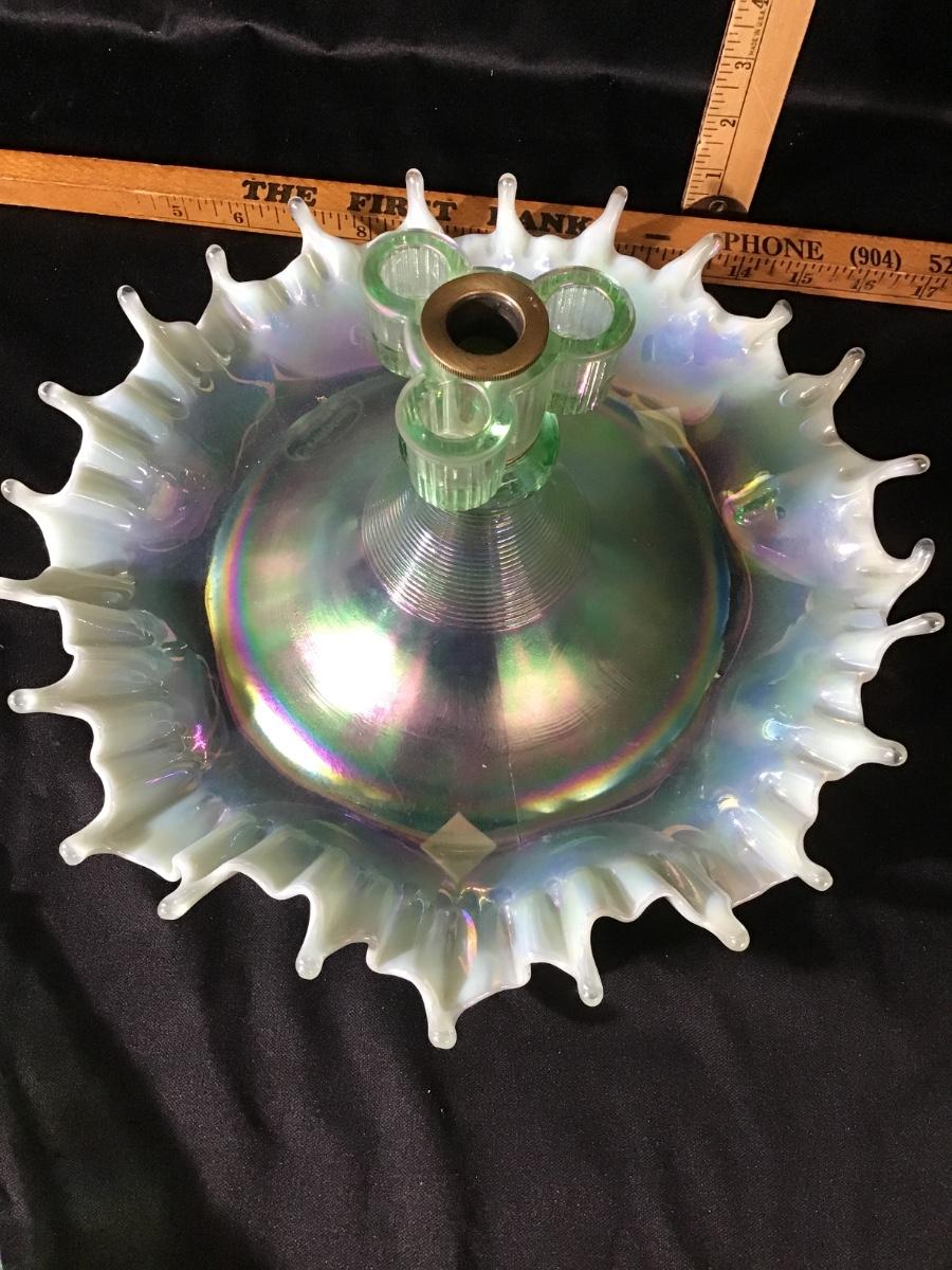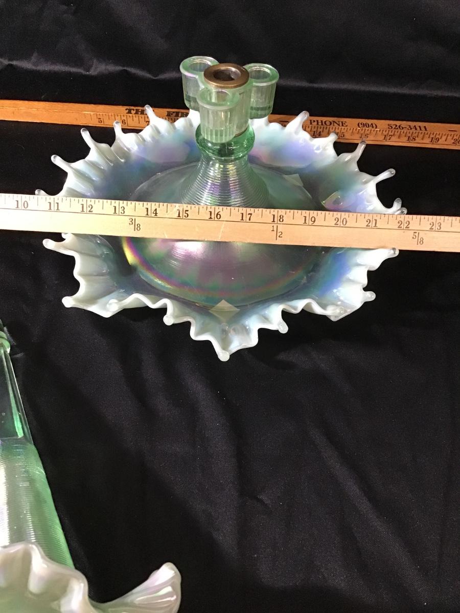 Fenton  Glass Willow Green Opalescent Epergne Frank Fenton  Centennial Collection