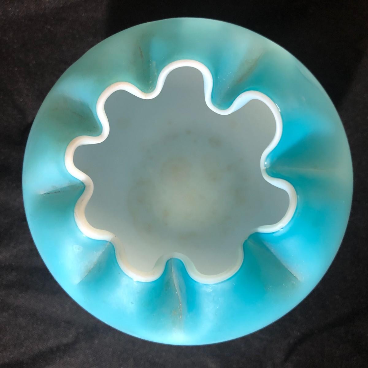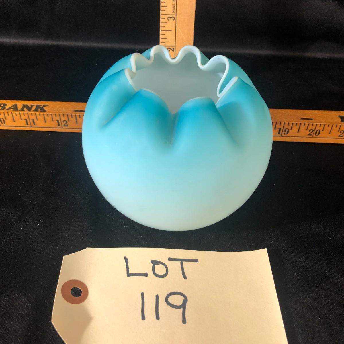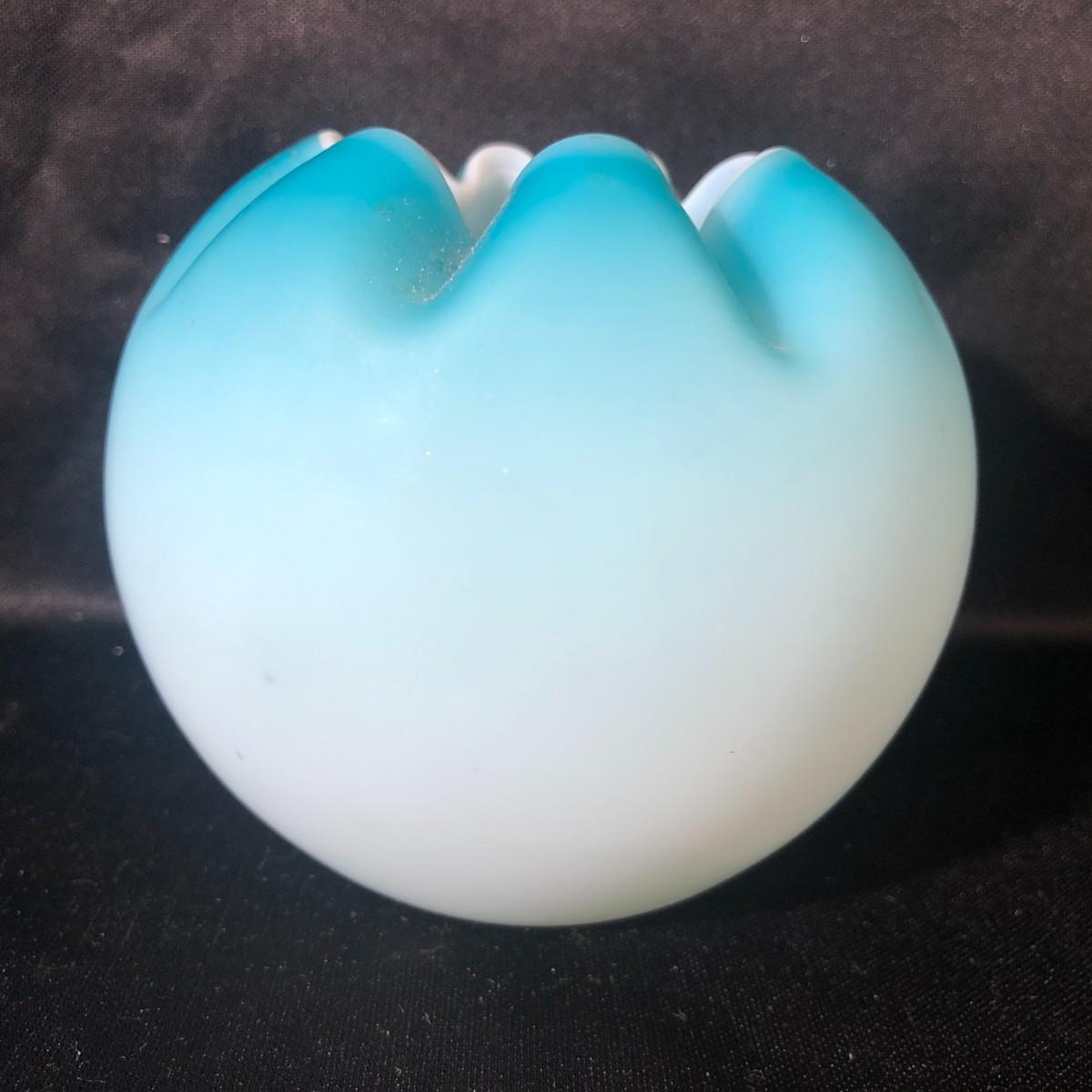 Vintage Fenton Blue Satin Glass Rose Bowl Crimped Edge