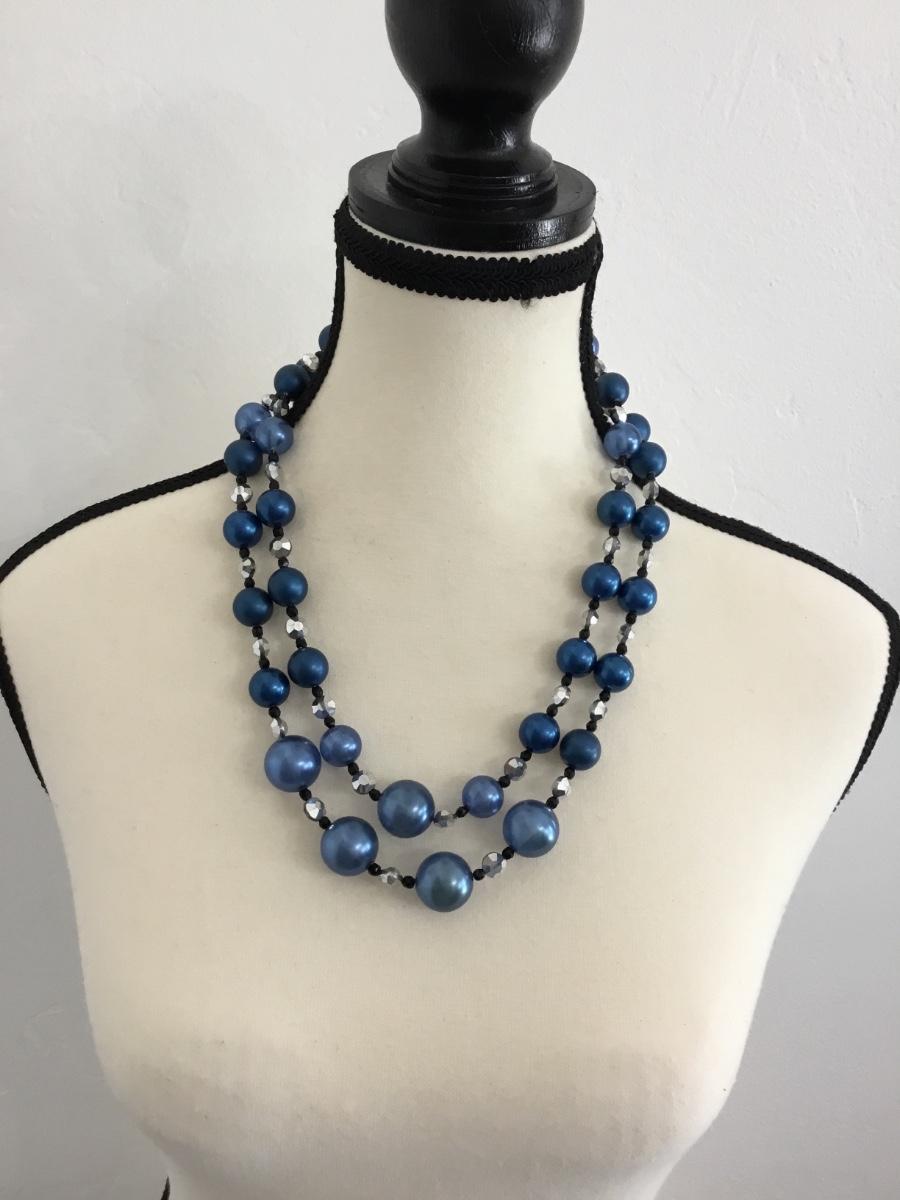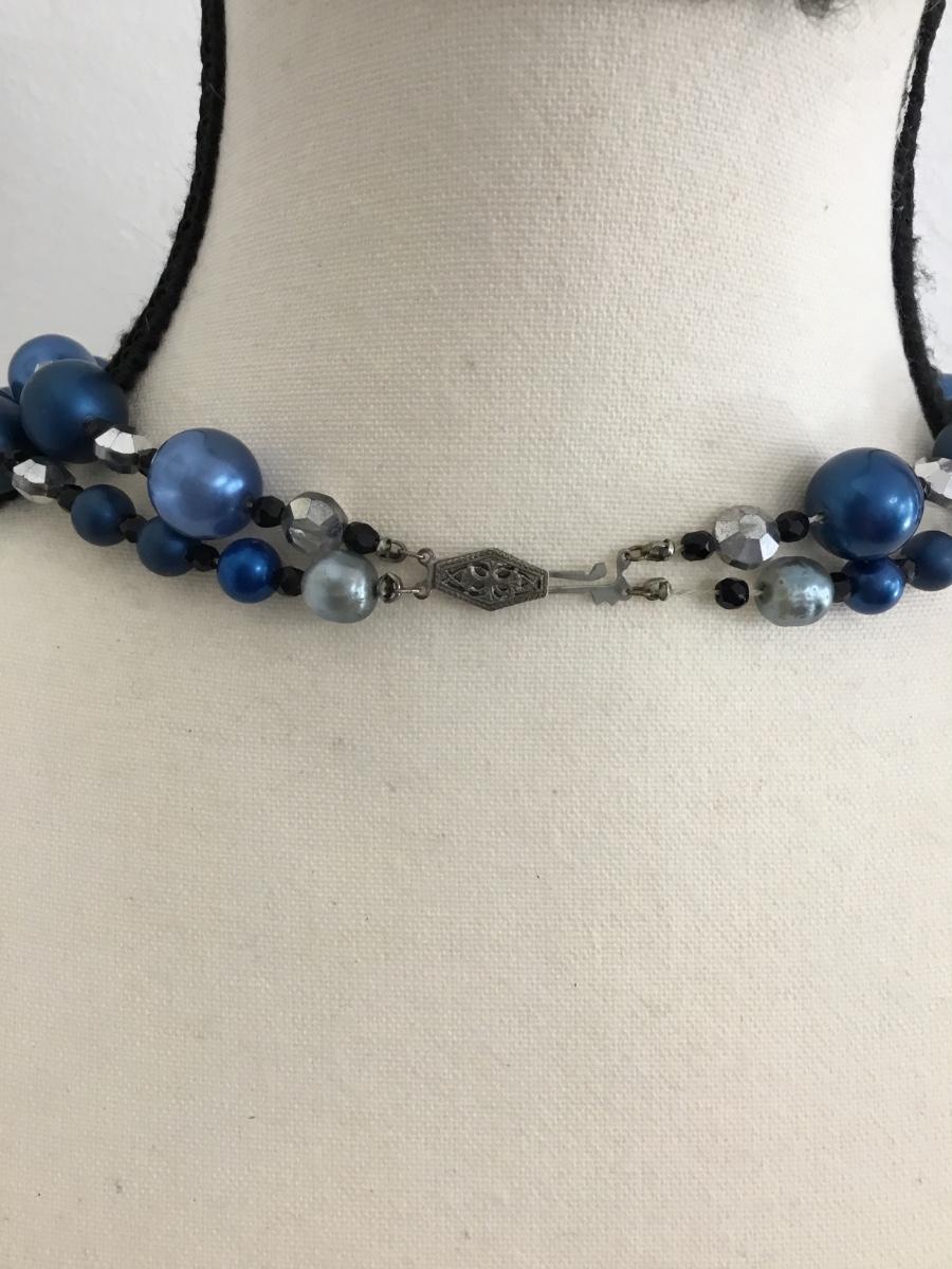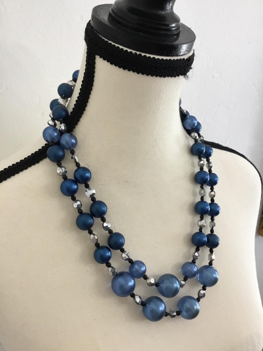 Vintage glass and chunky blue beaded double layer, statement, necklace