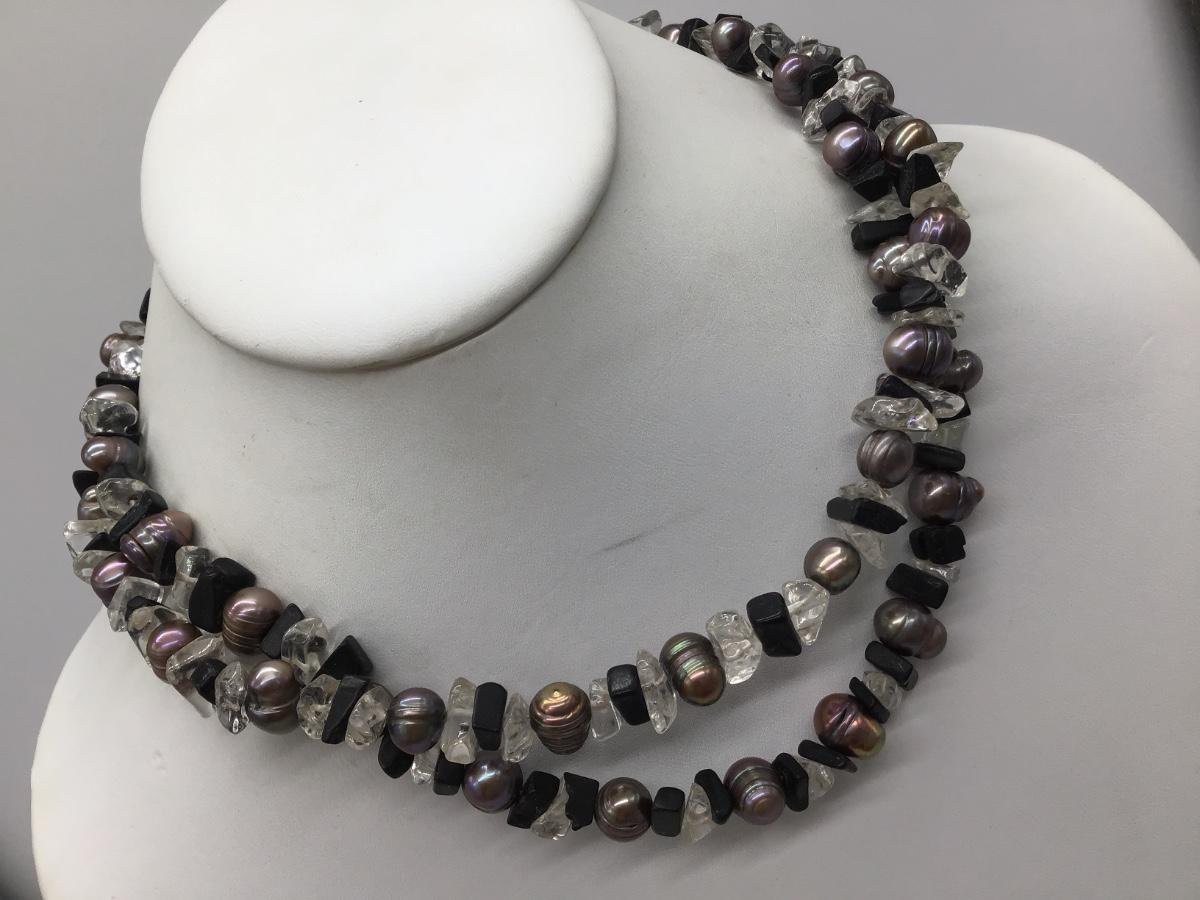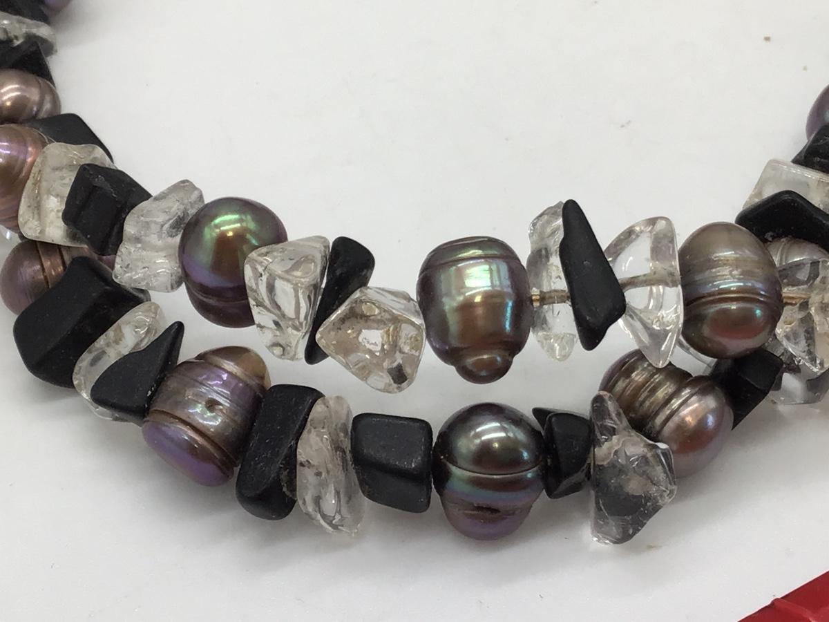 Vintage Glass and Semi Precious stone And Pearl Sterling silver necklace