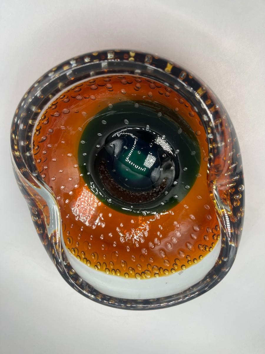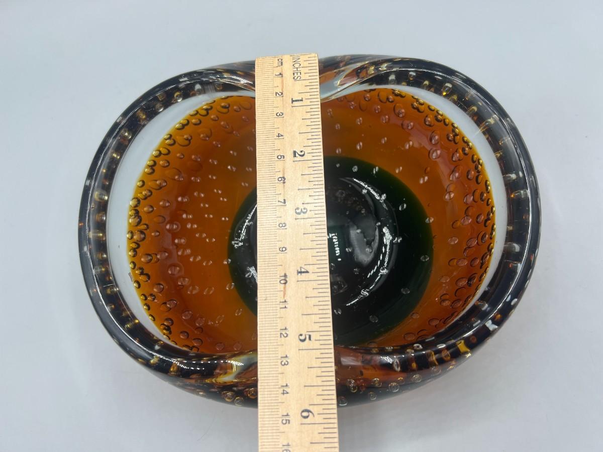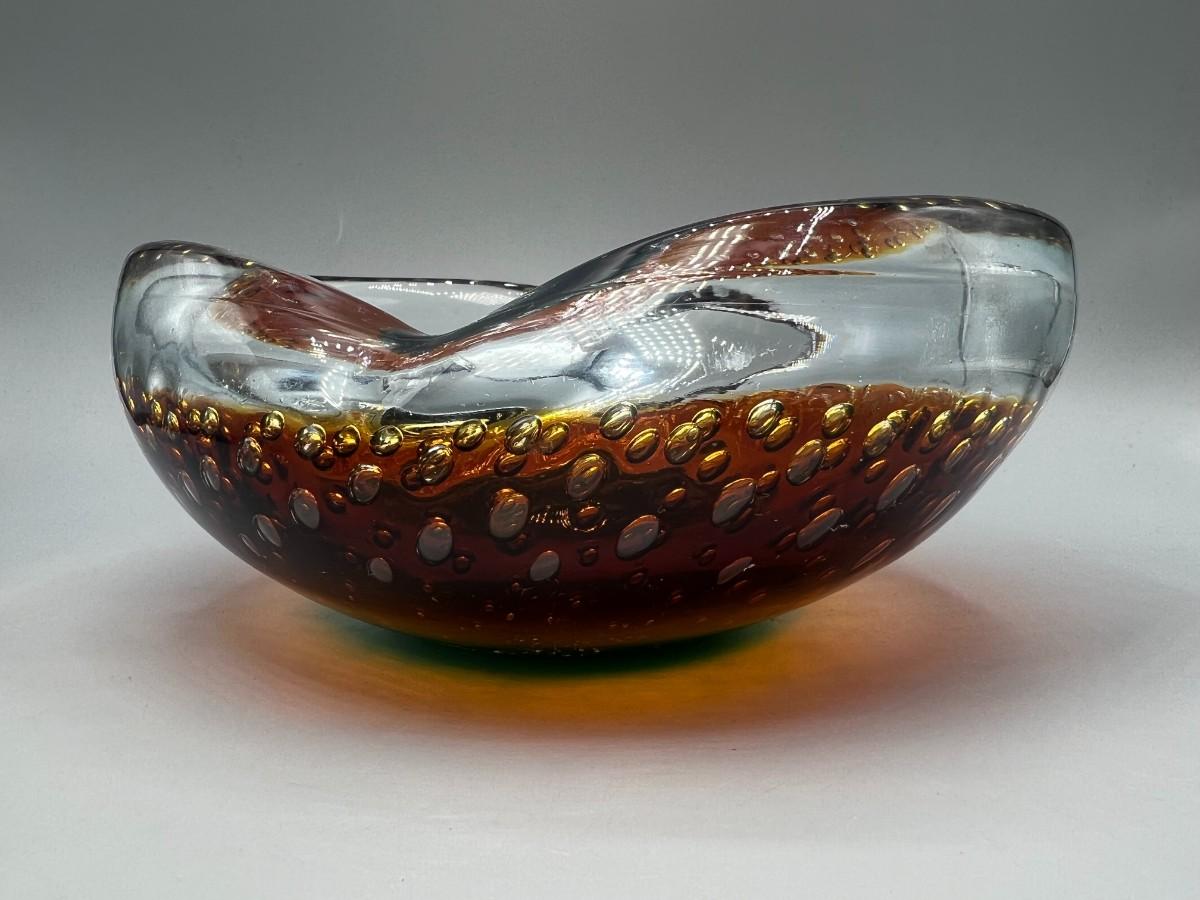 Vintage Blown Art Glass Bubble Clear Brown Green Abstract Free Form Console Dish Bowl