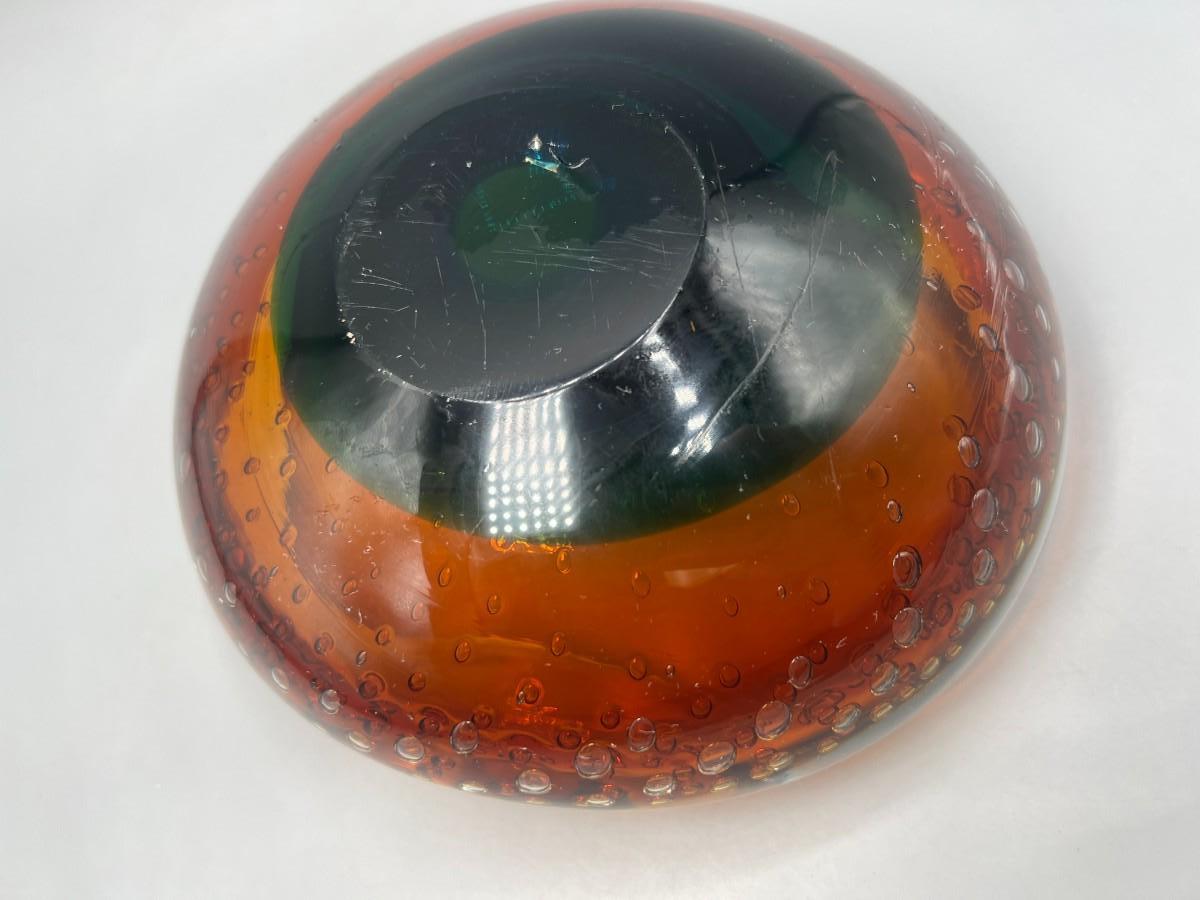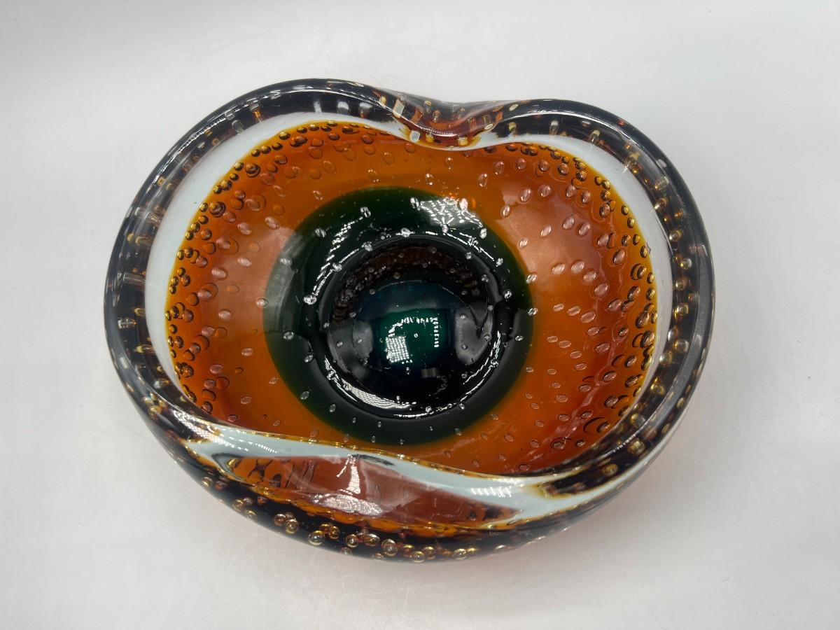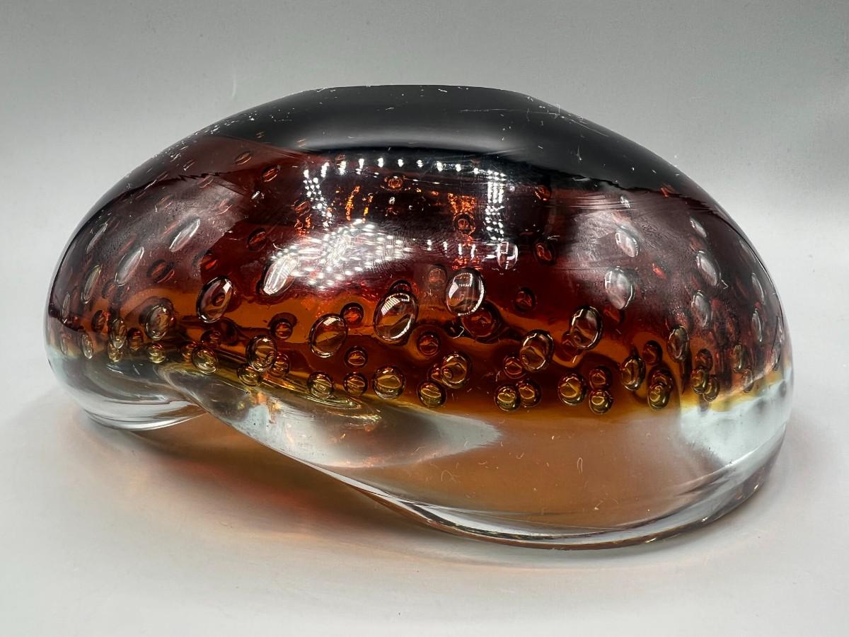 Vintage Blown Art Glass Bubble Clear Brown Green Abstract Free Form Console Dish Bowl
