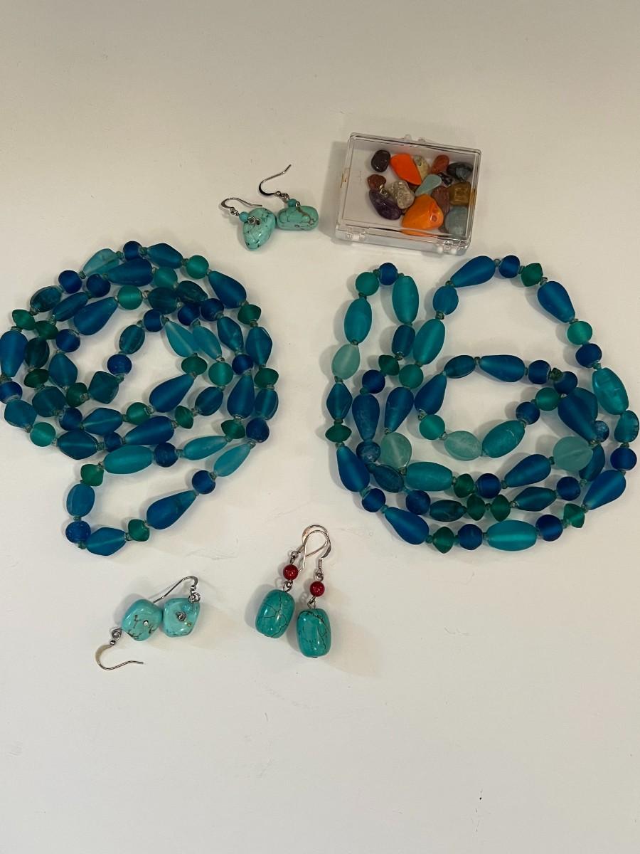 Vintage Glass Bead Rope Necklaces and Stone Earrings