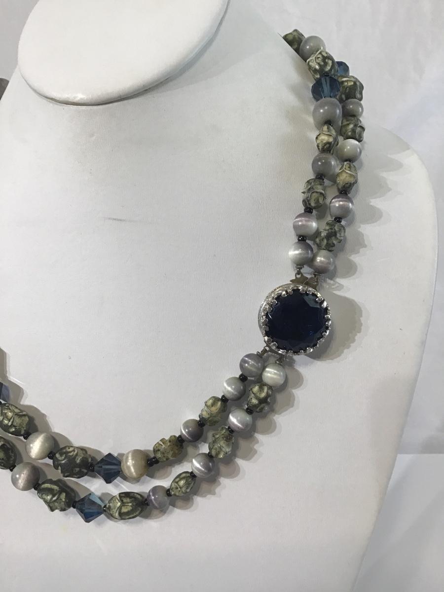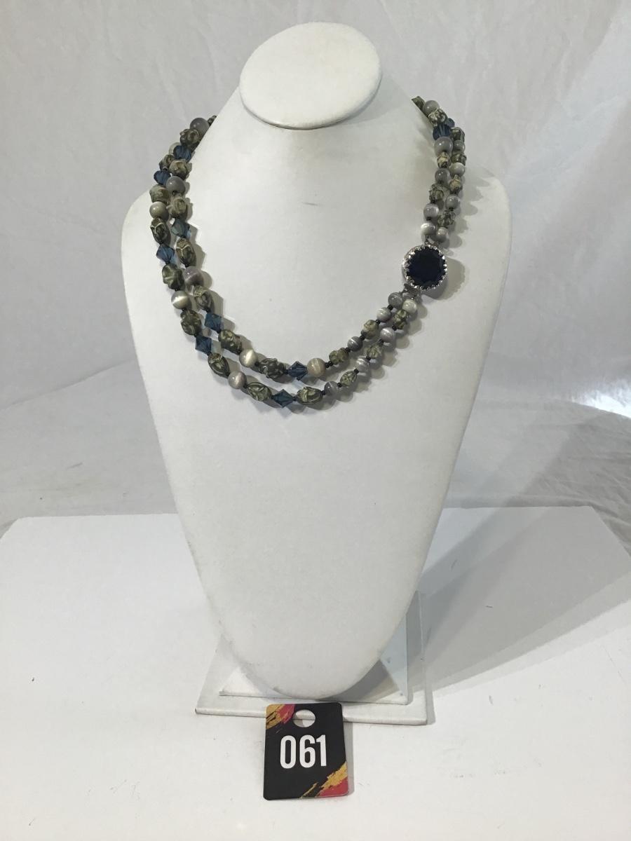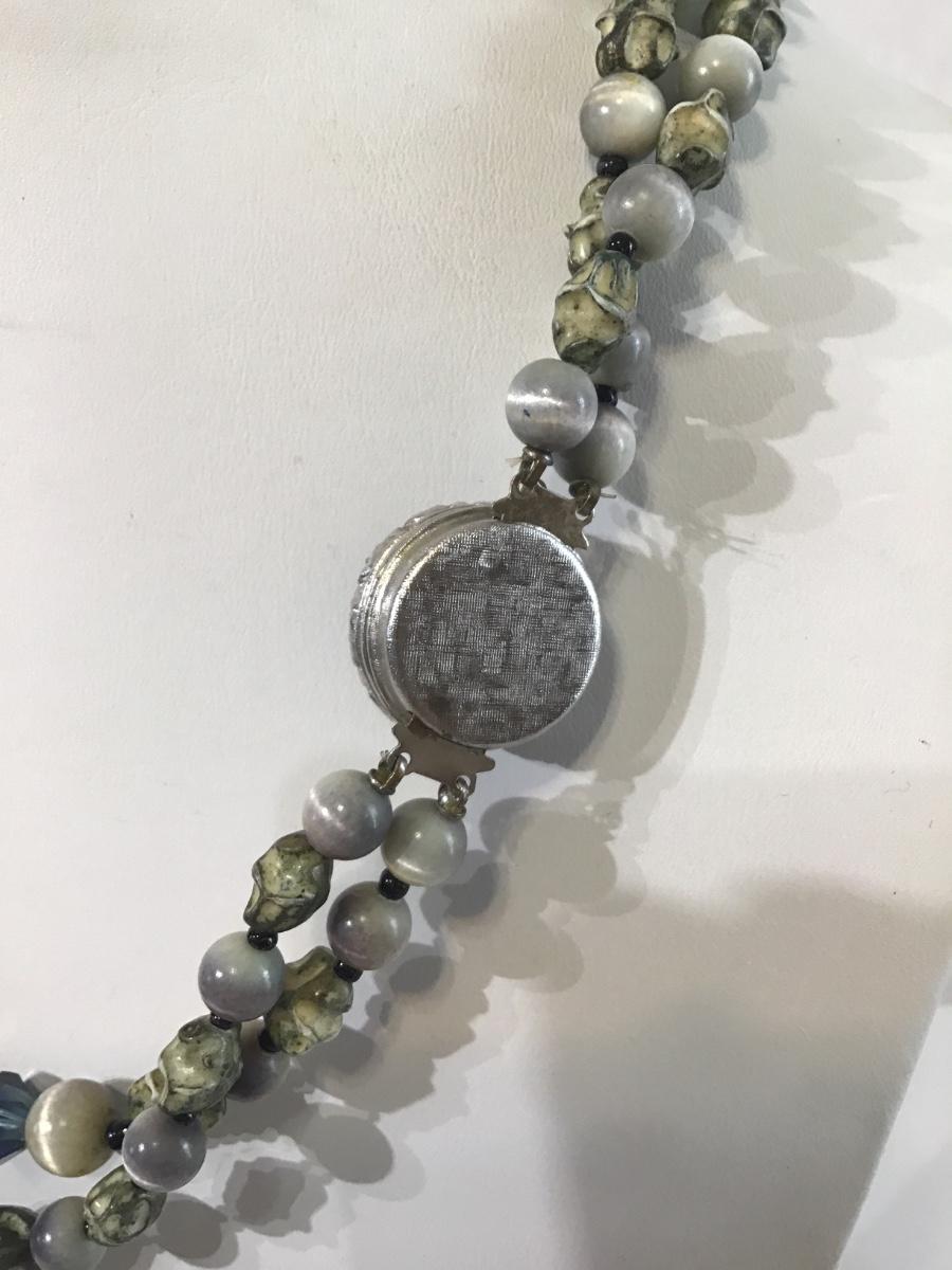 Black Stone Clasp Vintage glass beaded necklace