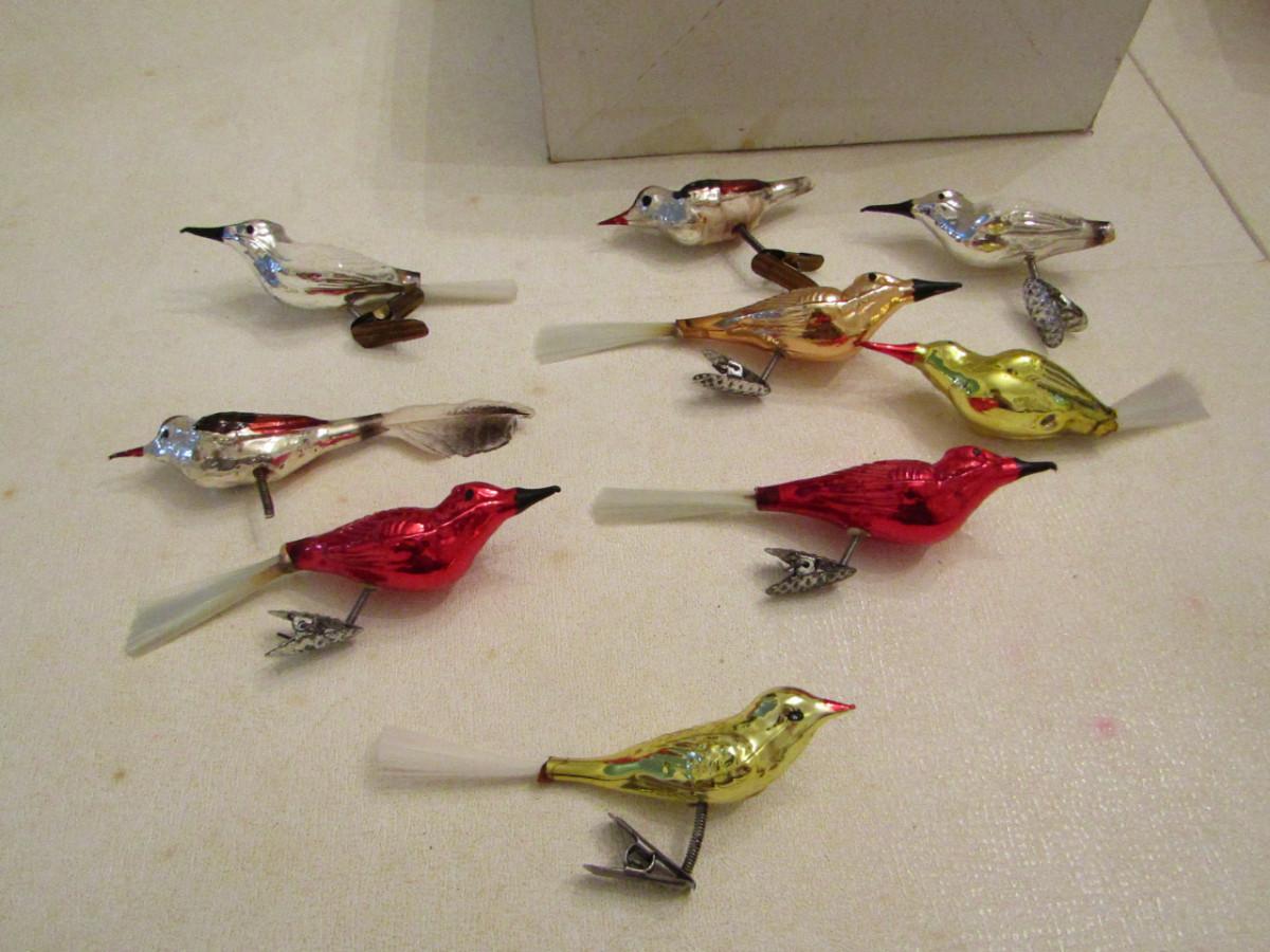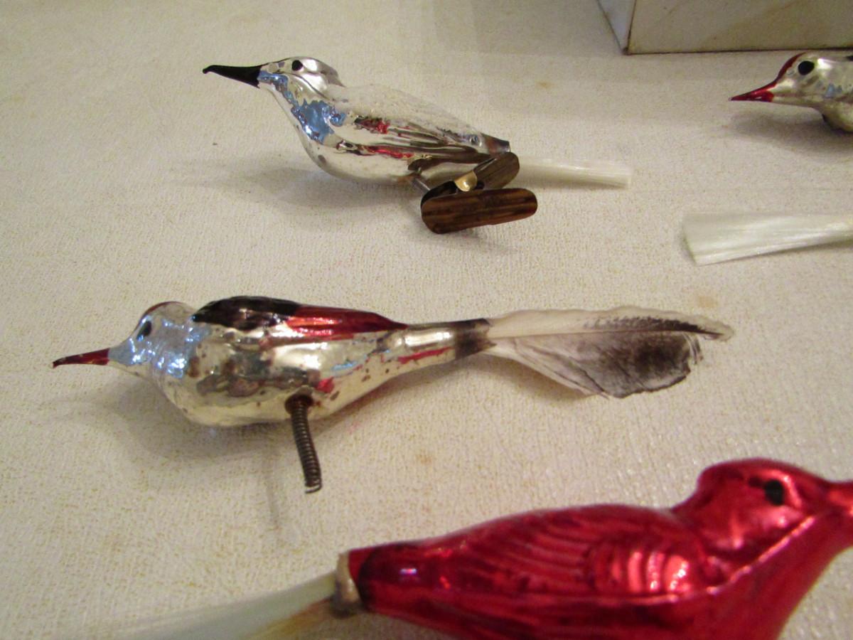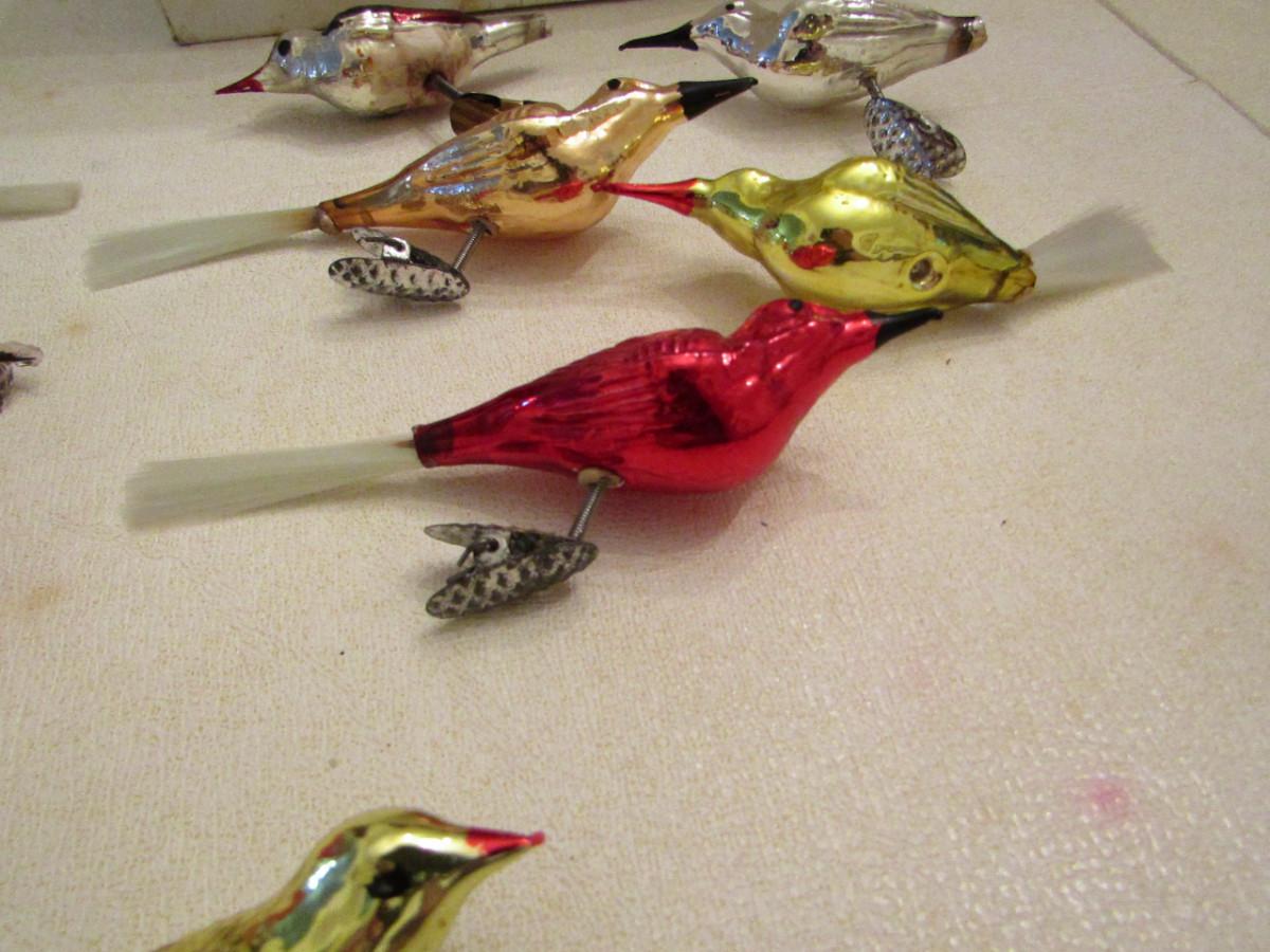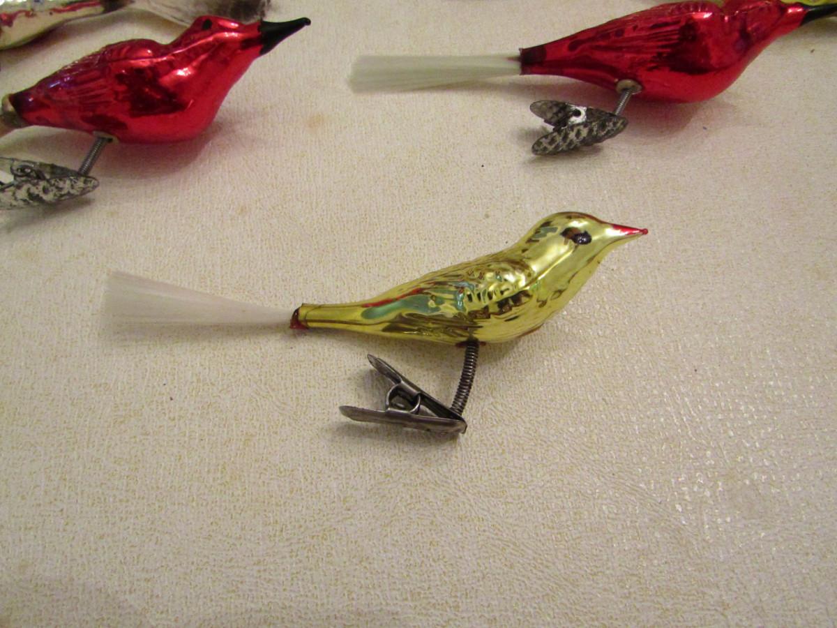 Vintage Glass Bird Ornaments. Please see all pictures- some need new tails/clips.