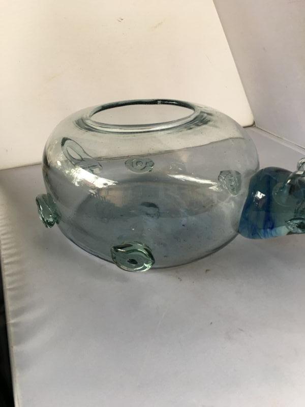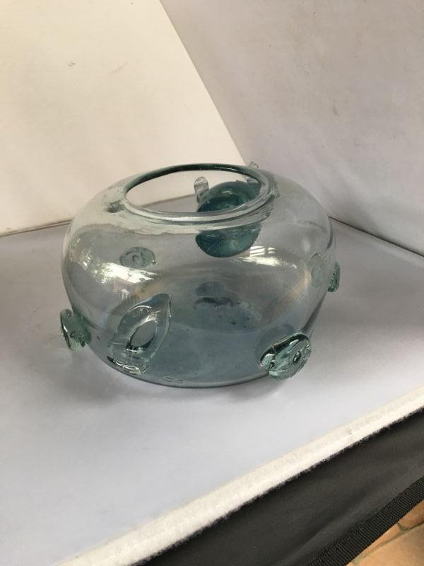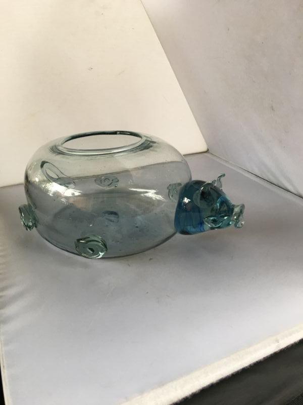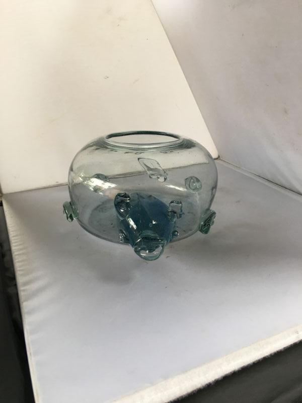 Vintage Glass Bowl with Piglet Head Light Green Vase