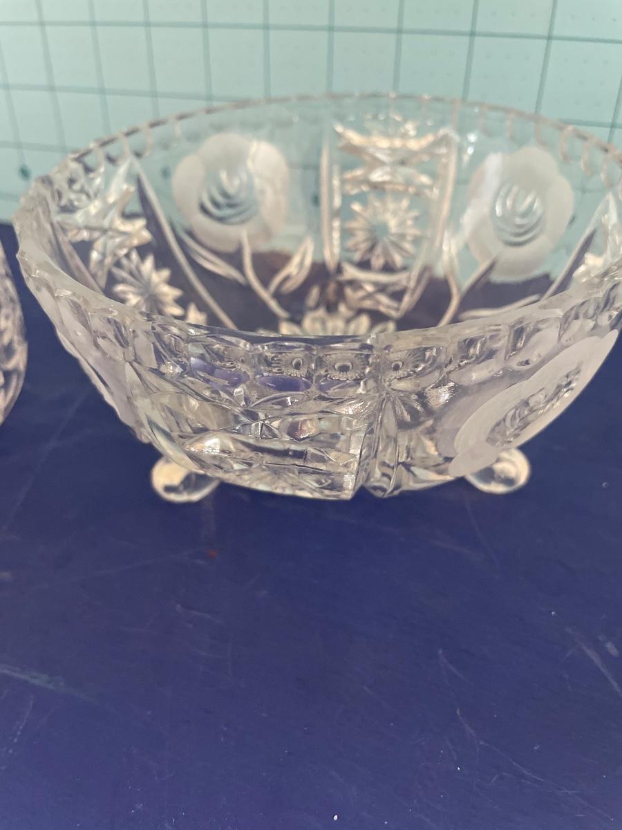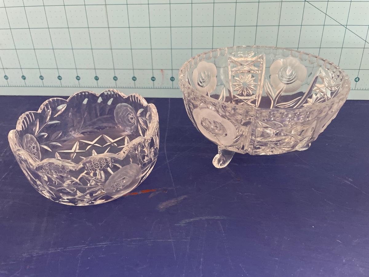 2 crystal bowls with floral design