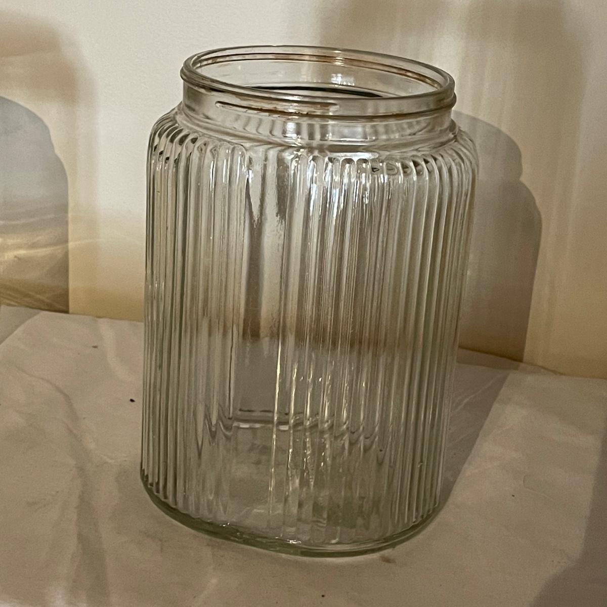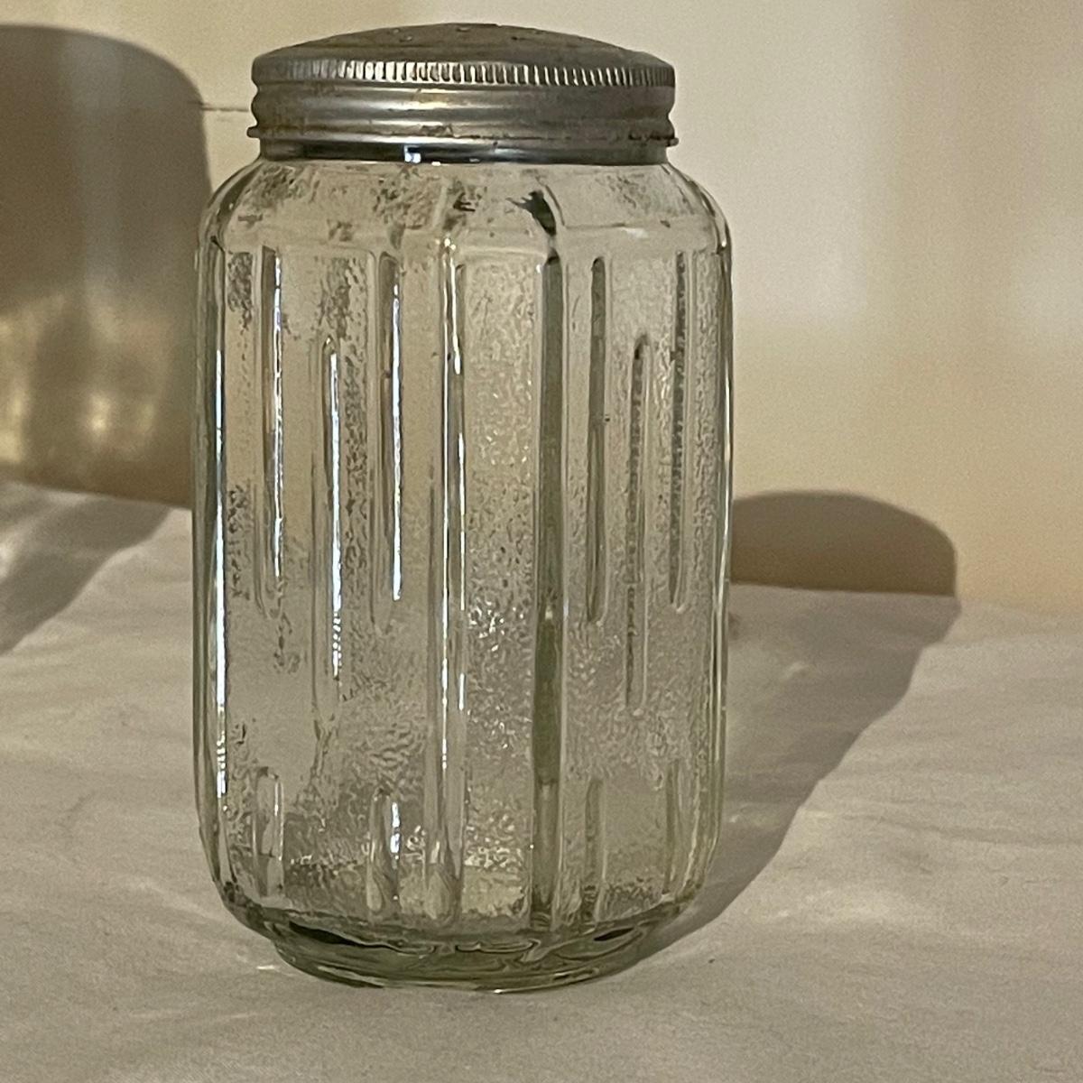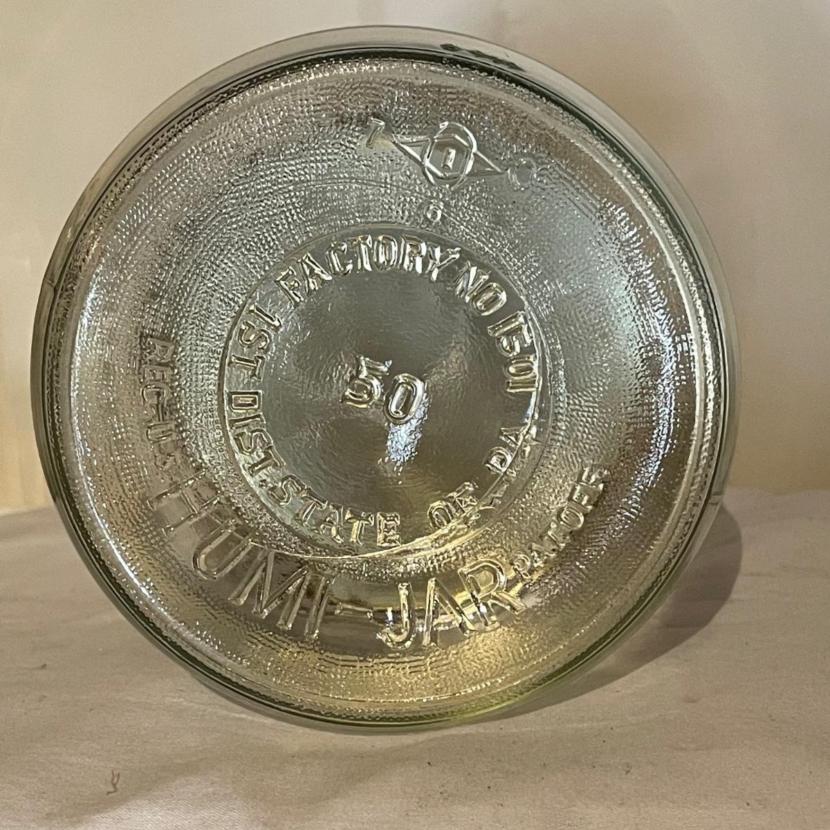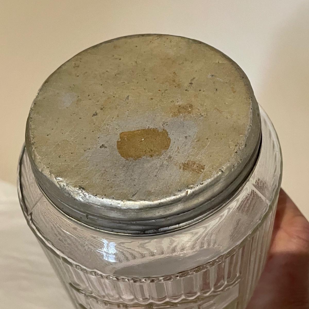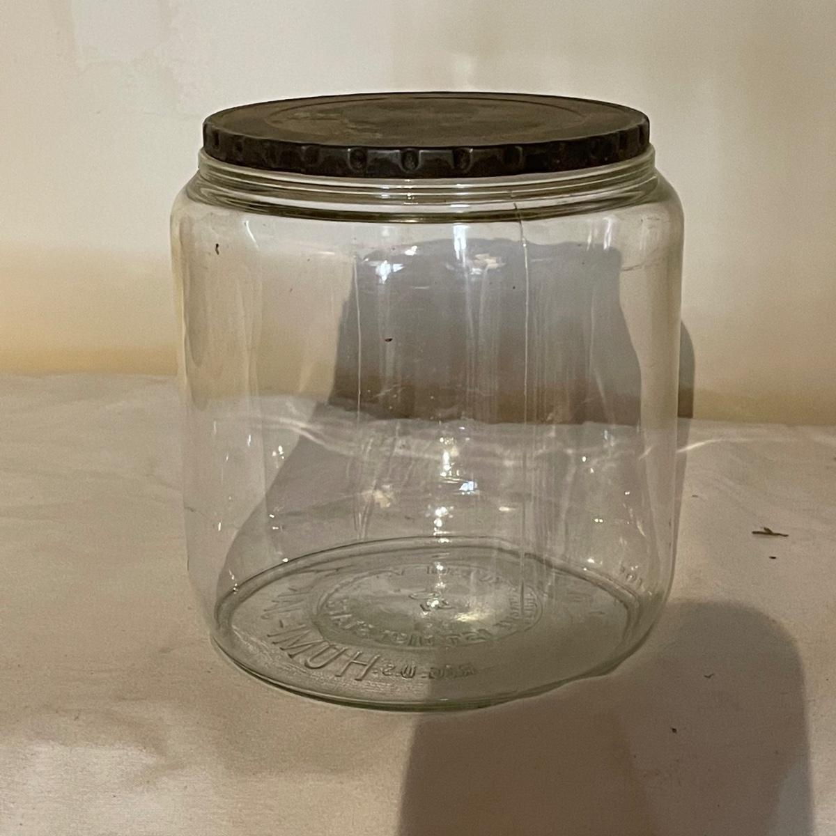 Two of these glass canisters are marked coffee and come with their original metal lids as does the small flour shaker and a glass canister that is marked Humi-Jar. The fifth jar is the largest but comes without lid.