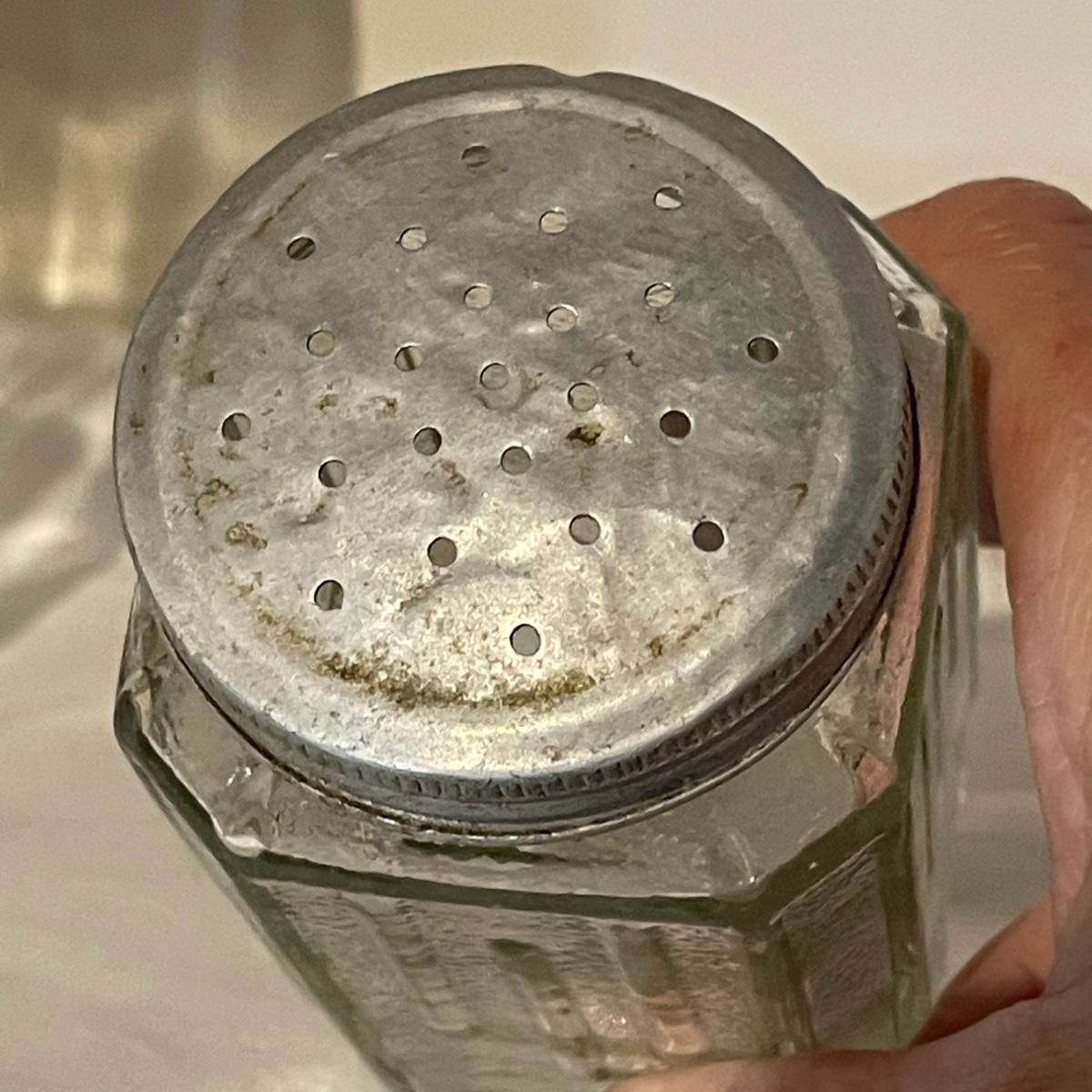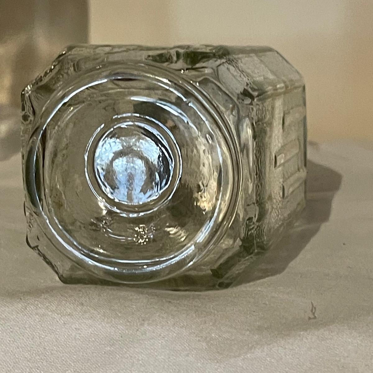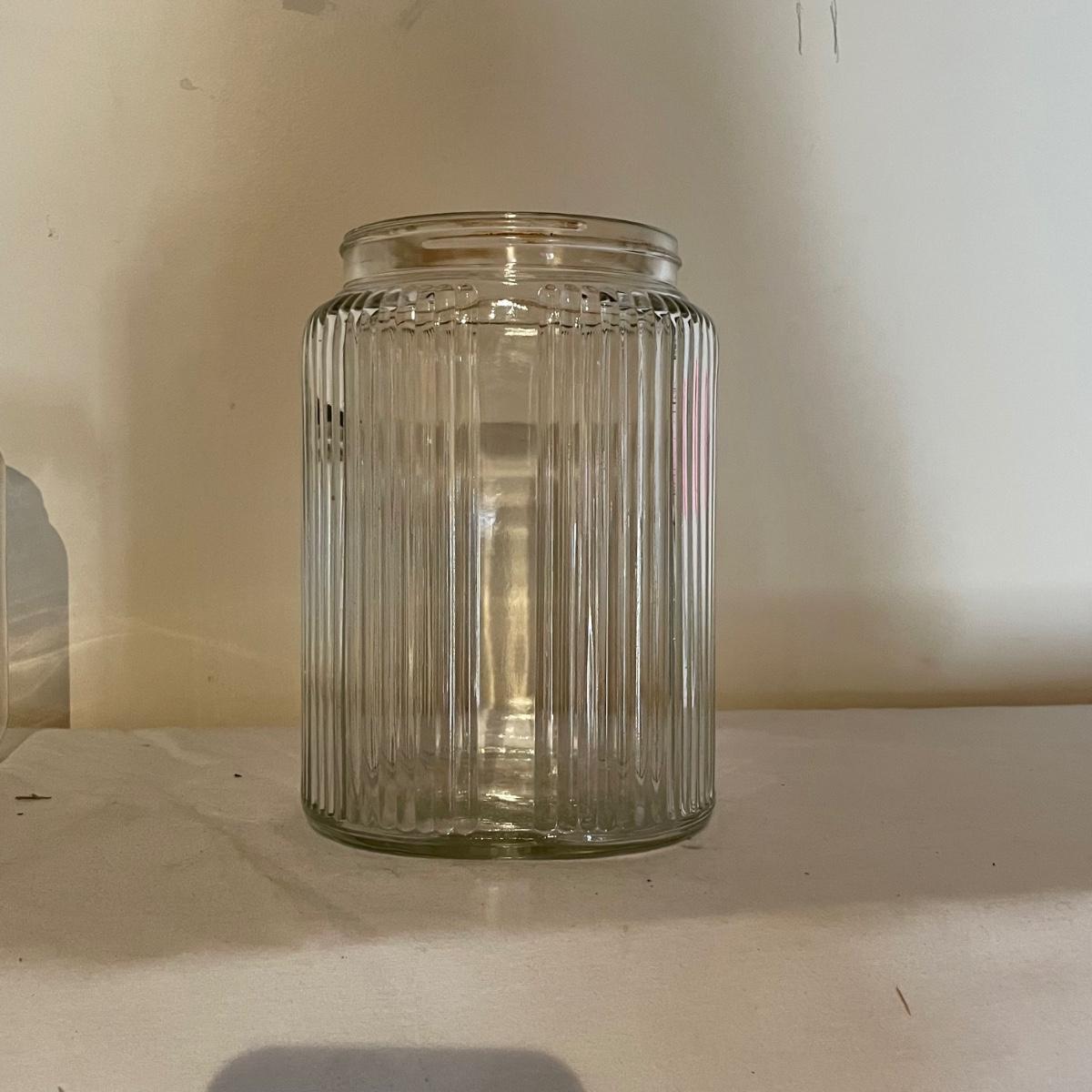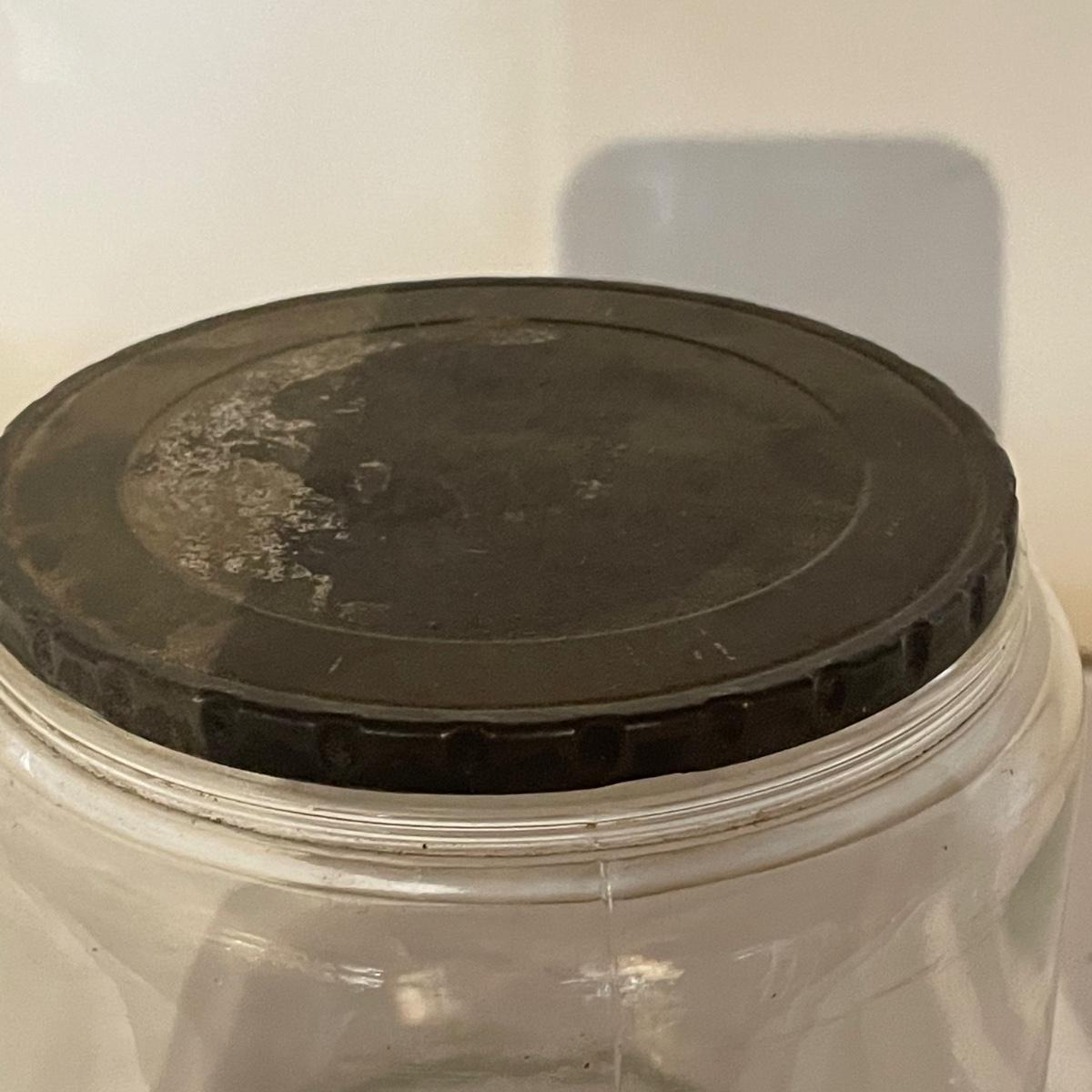Two of these glass canisters are marked coffee and come with their original metal lids as does the small flour shaker and a glass canister that is marked Humi-Jar. The fifth jar is the largest but comes without lid.