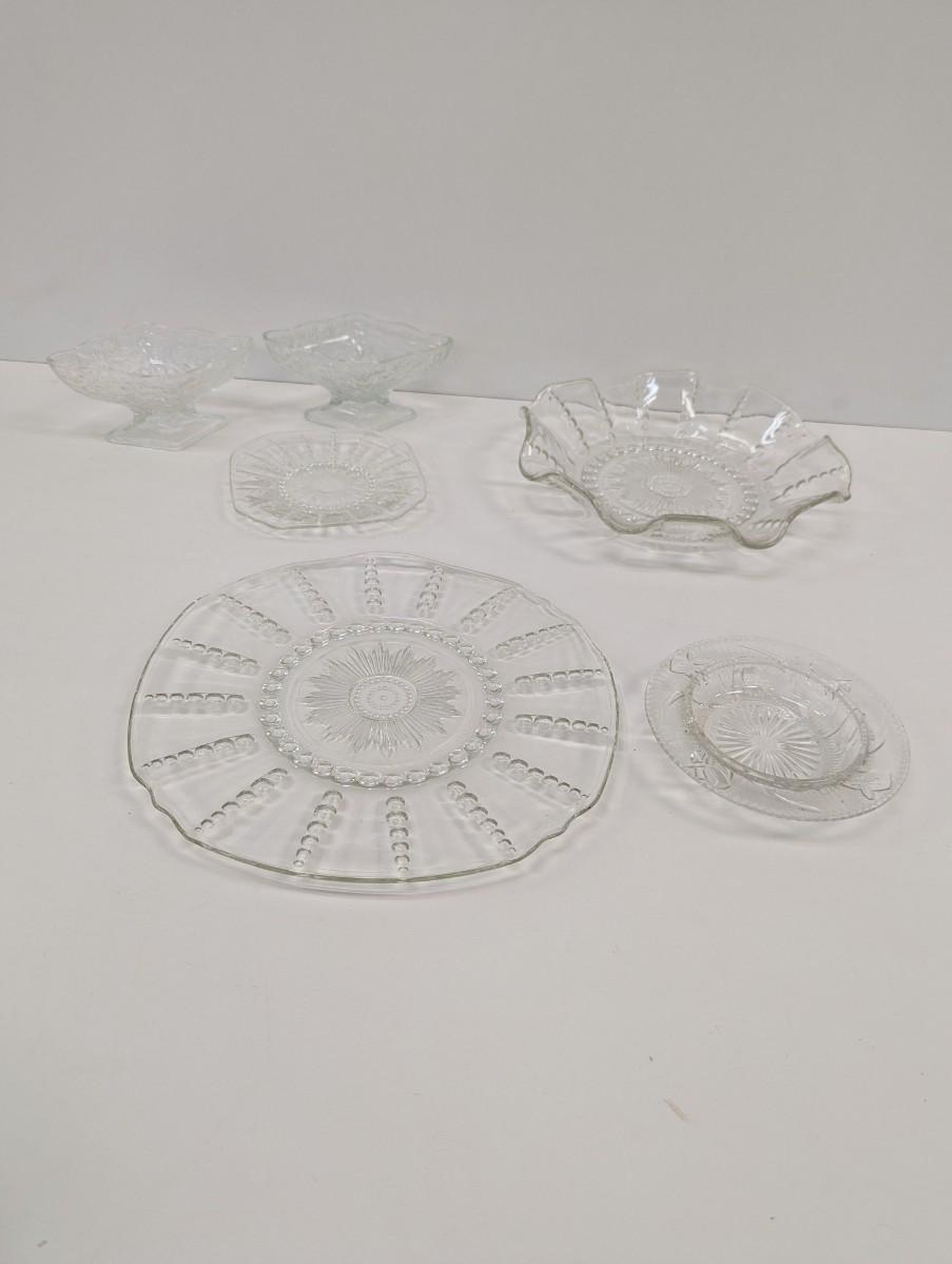 Vintage Glass Dishes Federal Columbia Clear Bubble Plate Diamond Candy Dish