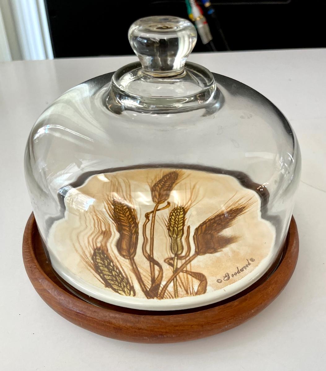 Vintage Glass Domed Cheese Plate teak wood made in Italy