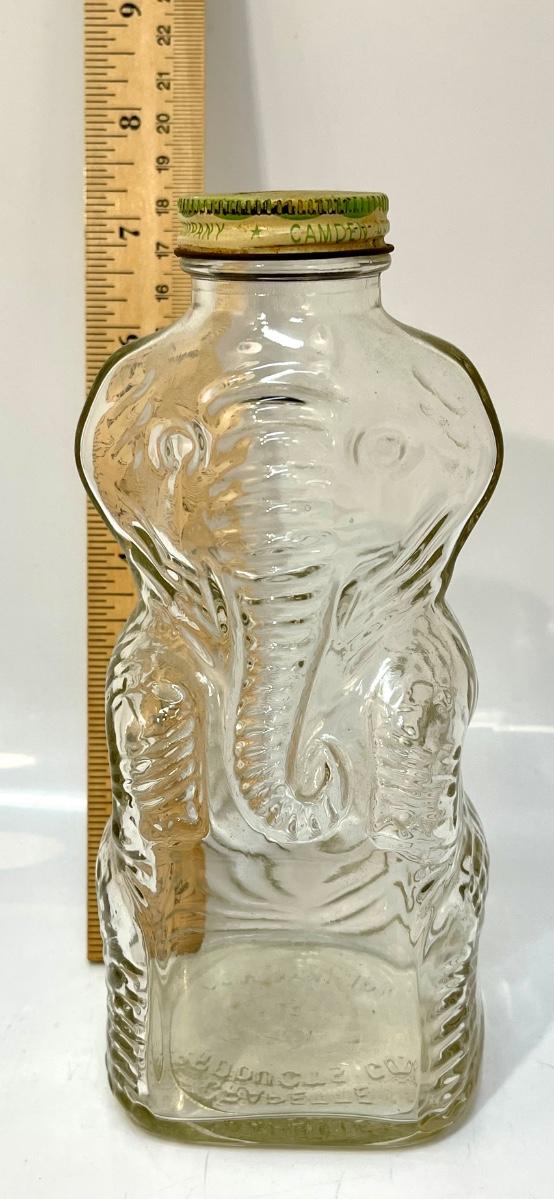 Vintage Glass Grapette Syrup Elephant Jar Piggy Coin Bank with Slot in Lid