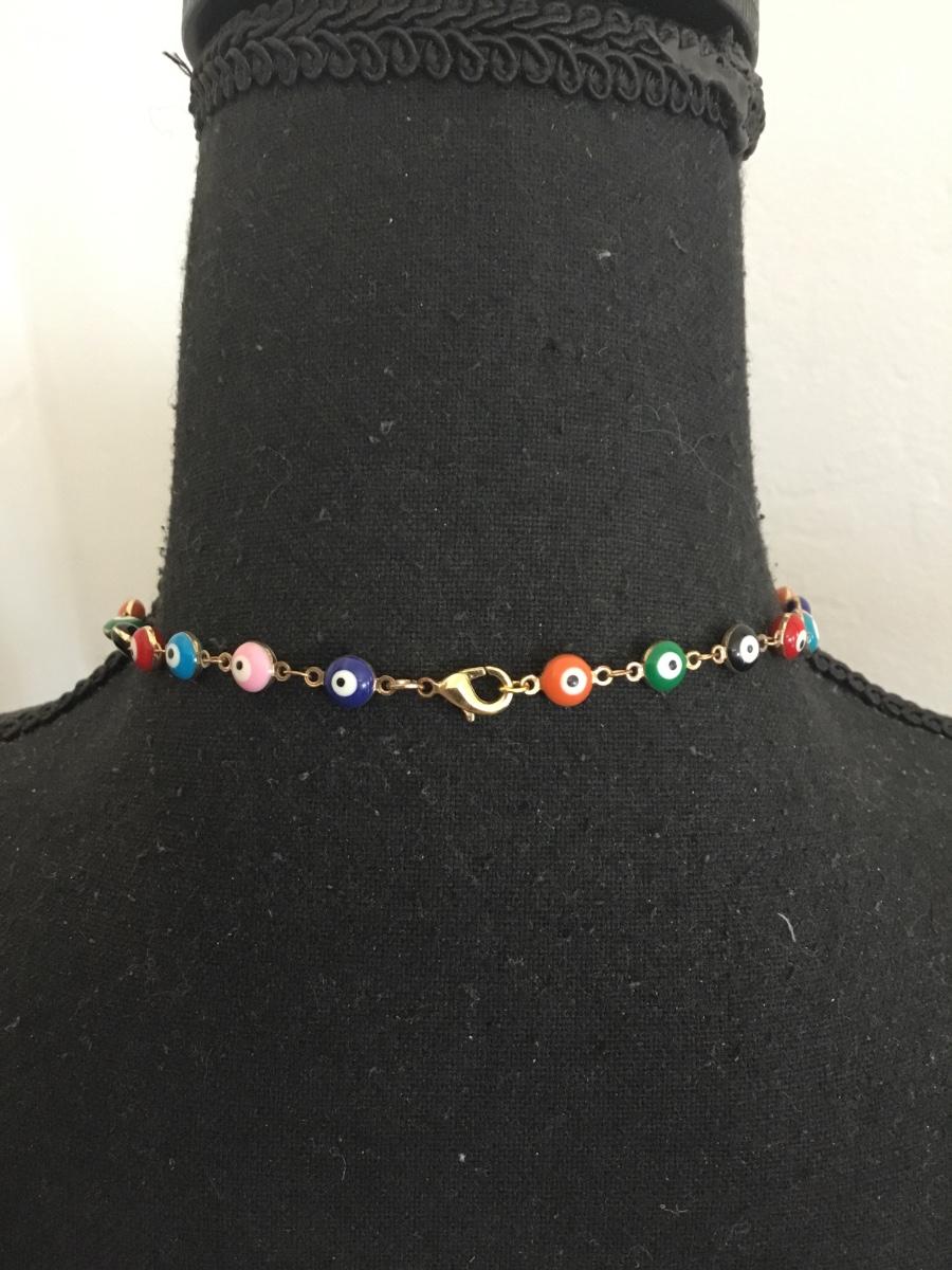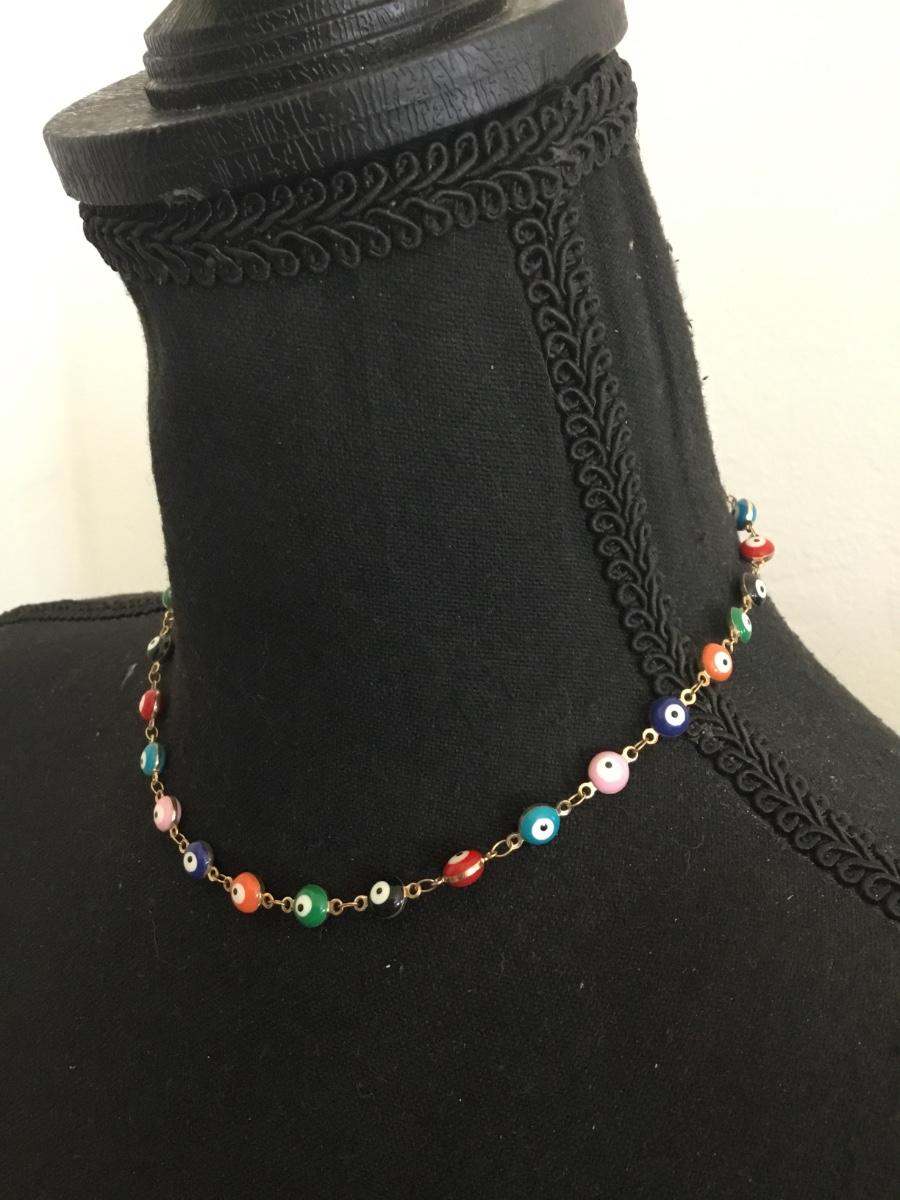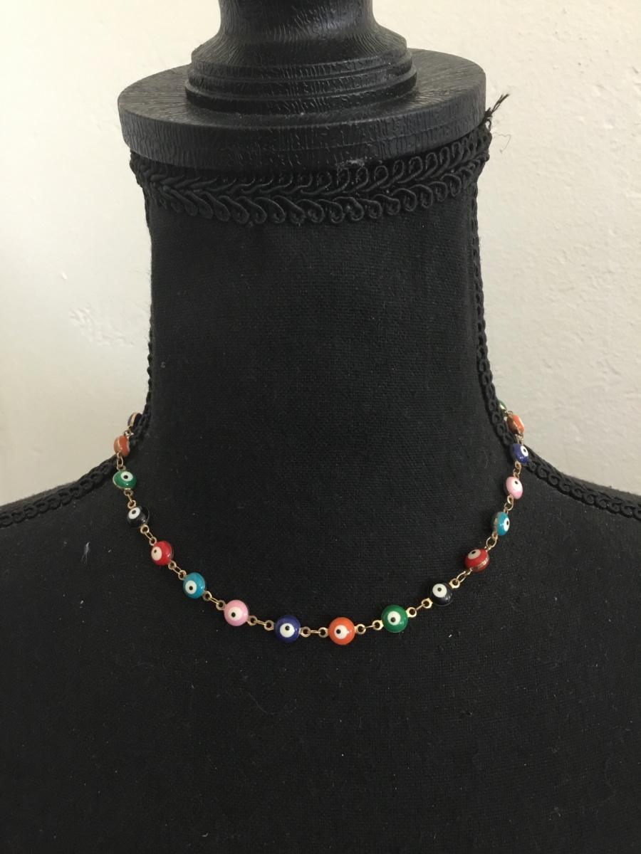 Vintage glass evil eye bead necklace
