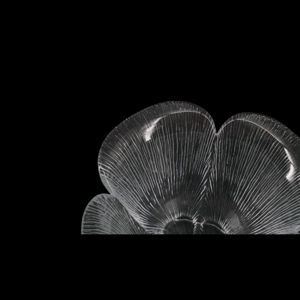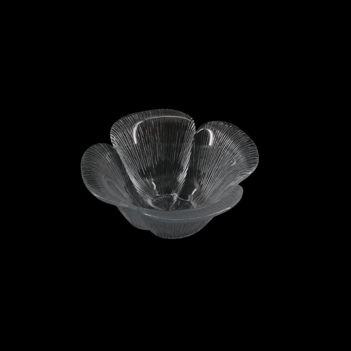 Vintage glass flower petal bowl. No markings, unsigned. Excellent condition! Measures L 6.5" x H 3.5", weighs 1 lb 3 oz. (G28)