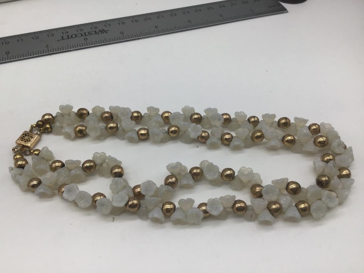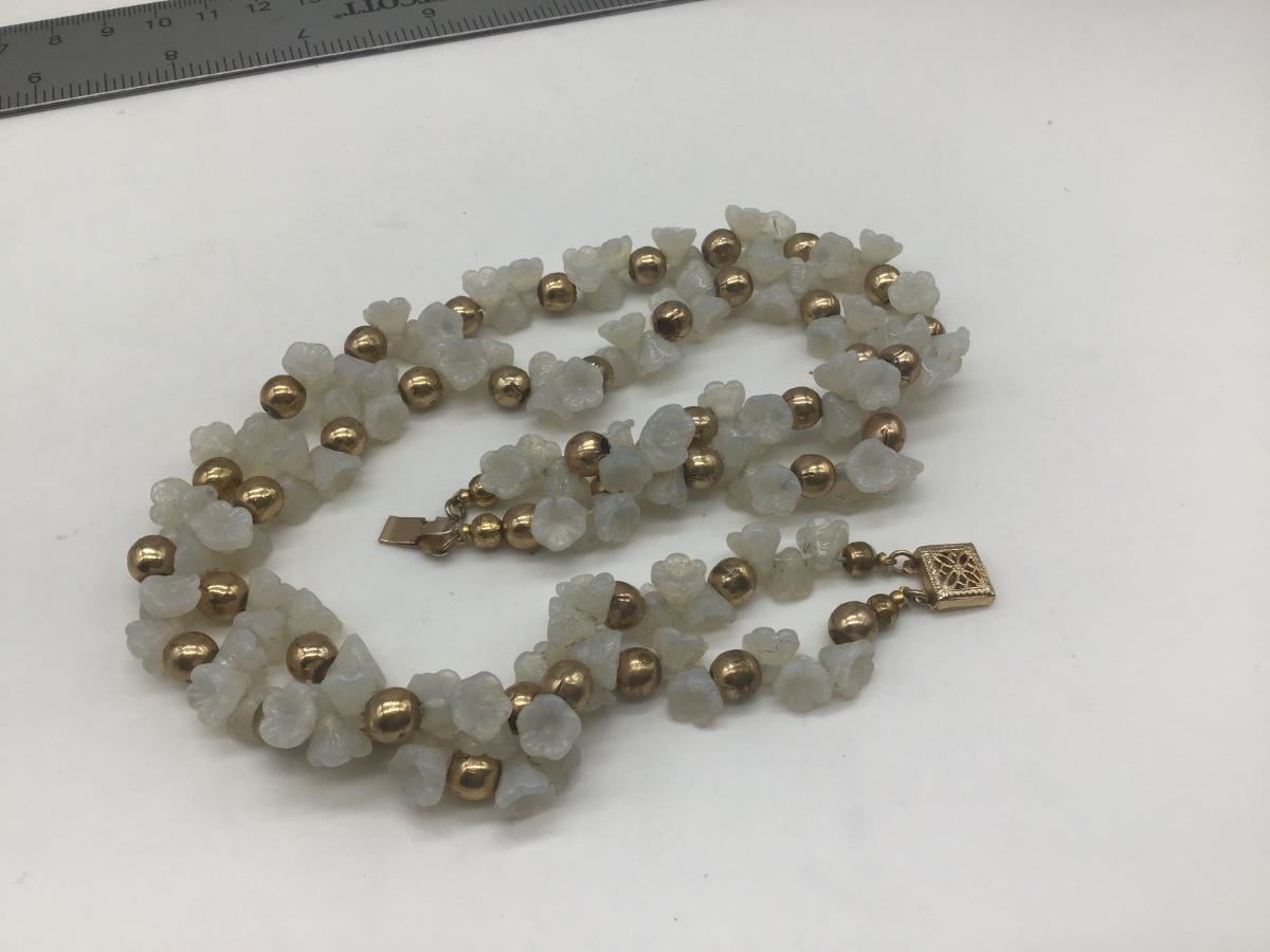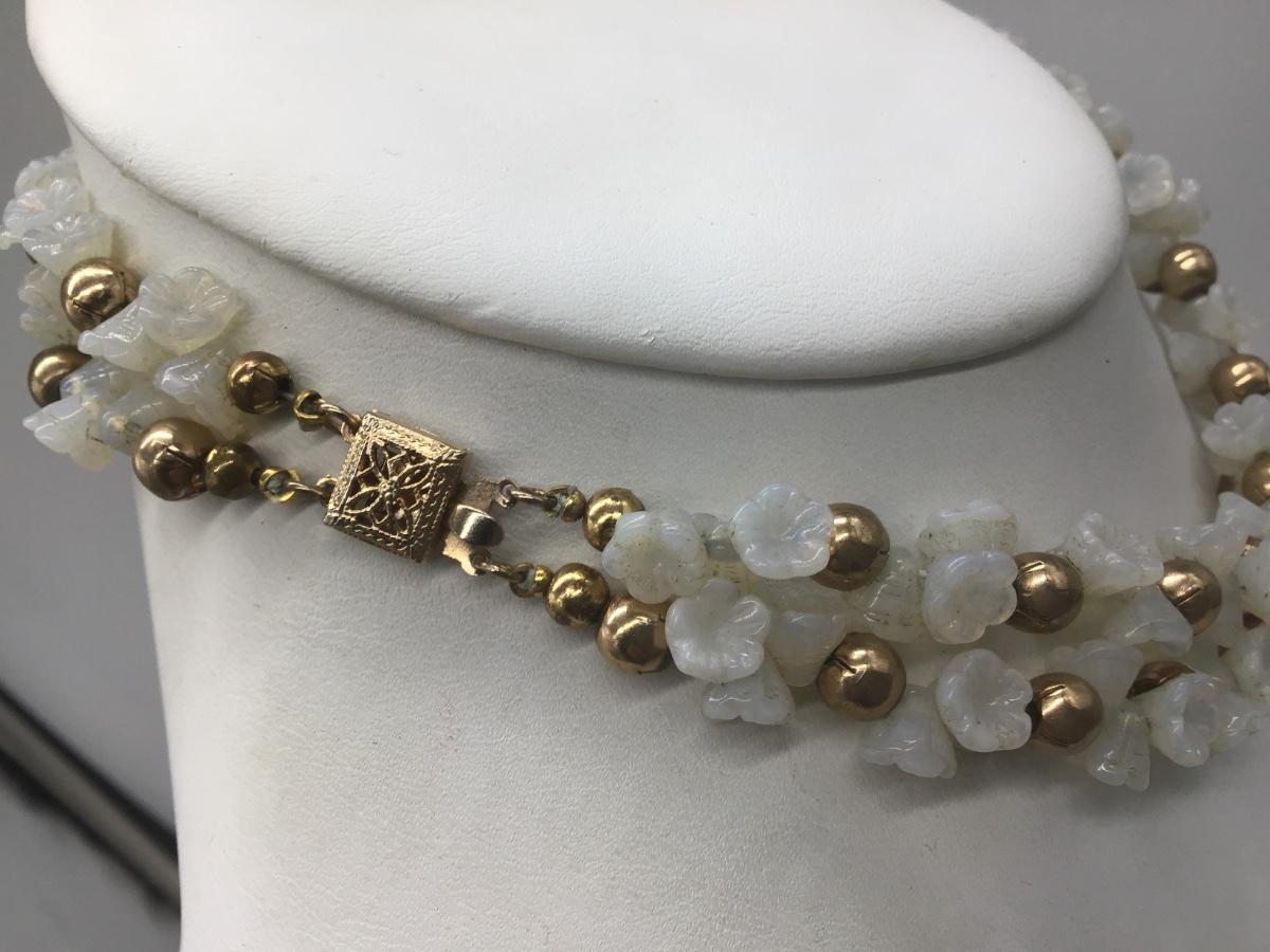 Vintage Glass Flower Clusters 2 Row Layered Beaded Necklace
