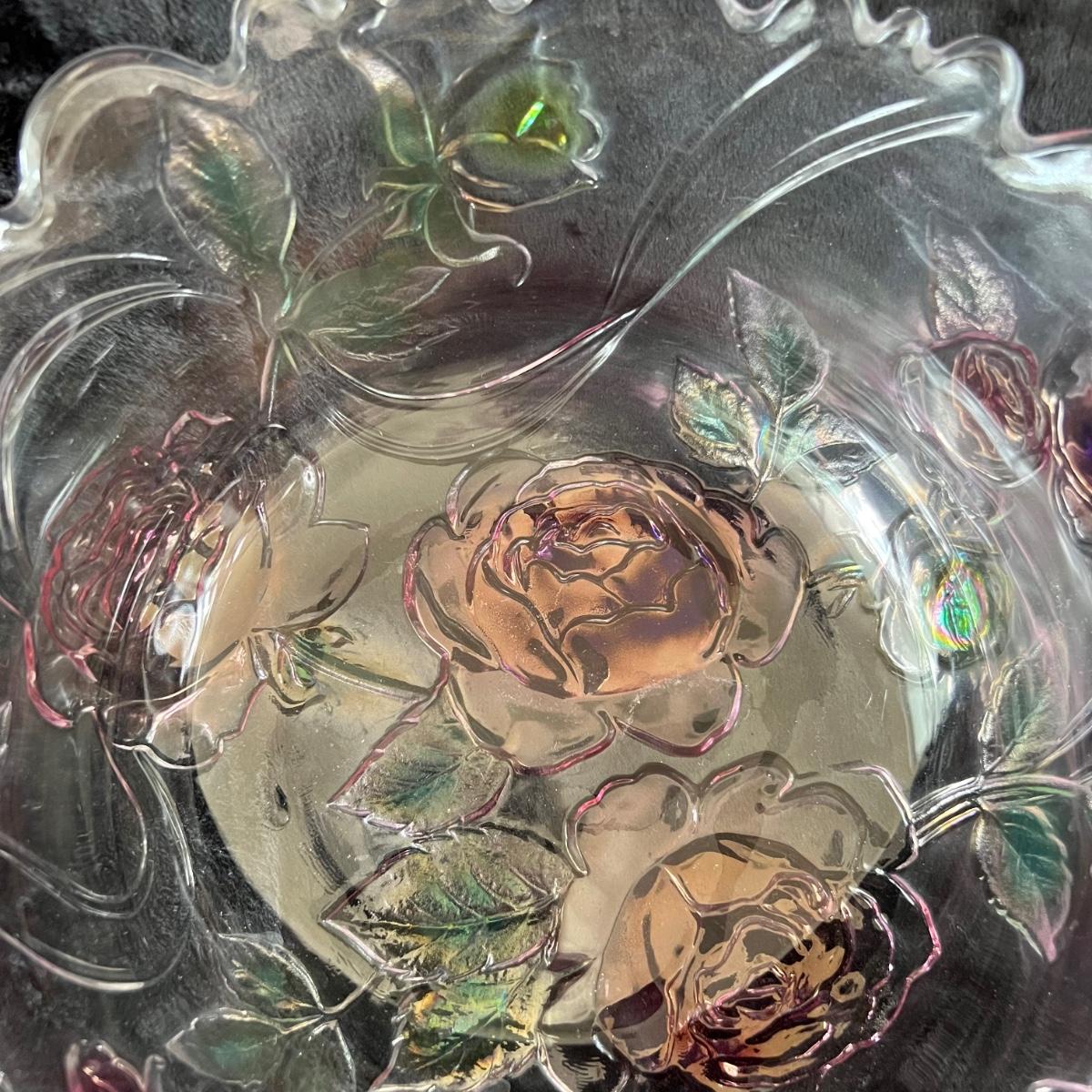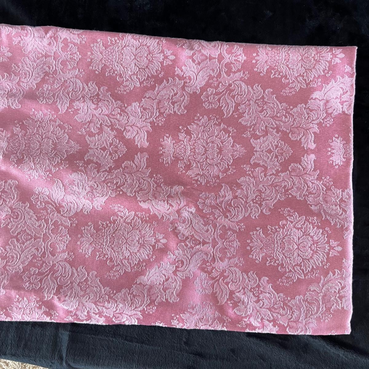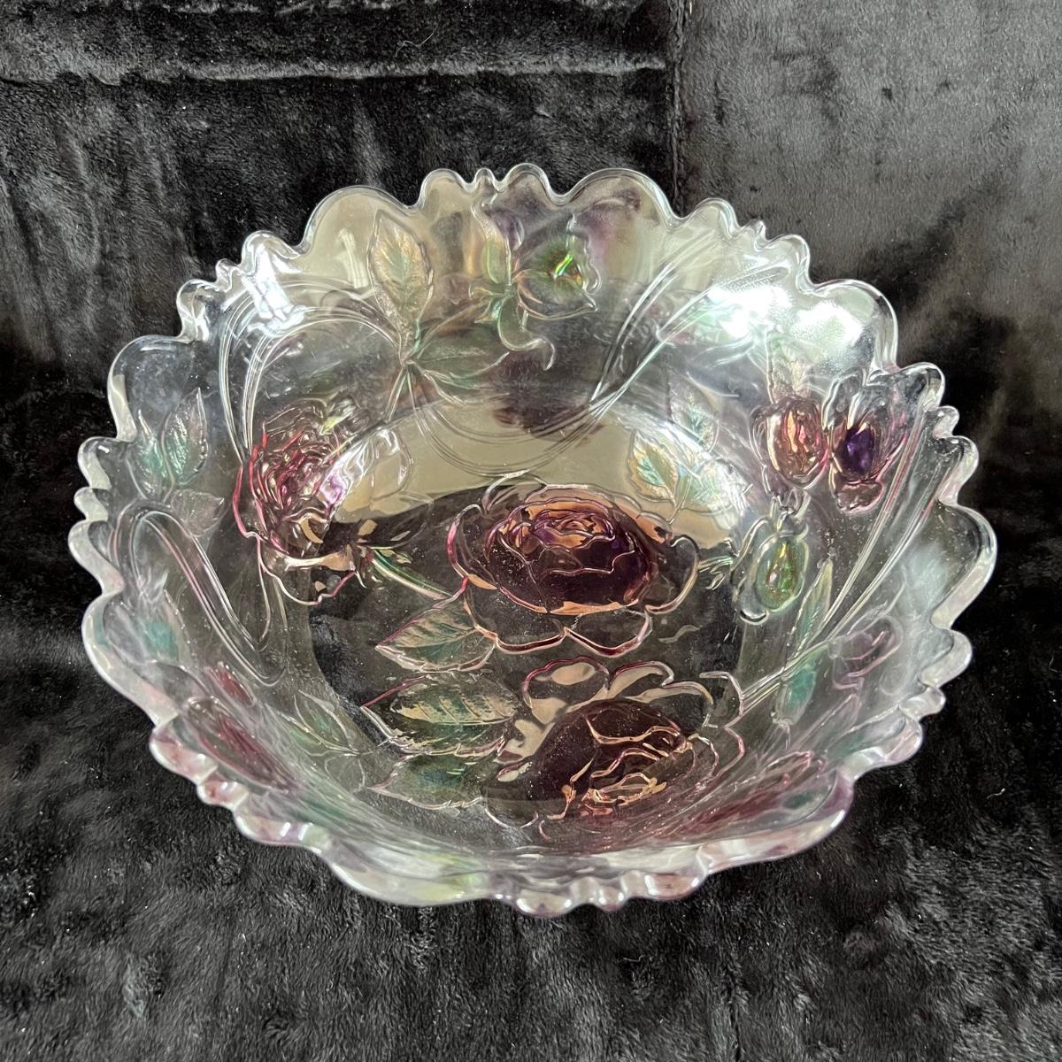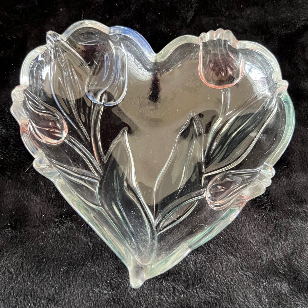 Decorative Floral Glass bowl with matching heart-shaped dish. Both with pink and lavender flowers. Lot comes with a white with pink floral set of four salt/pepper shakers and 12 napkin rings. Also included is a pink tablecloth and eight pink and green cloth napkins.