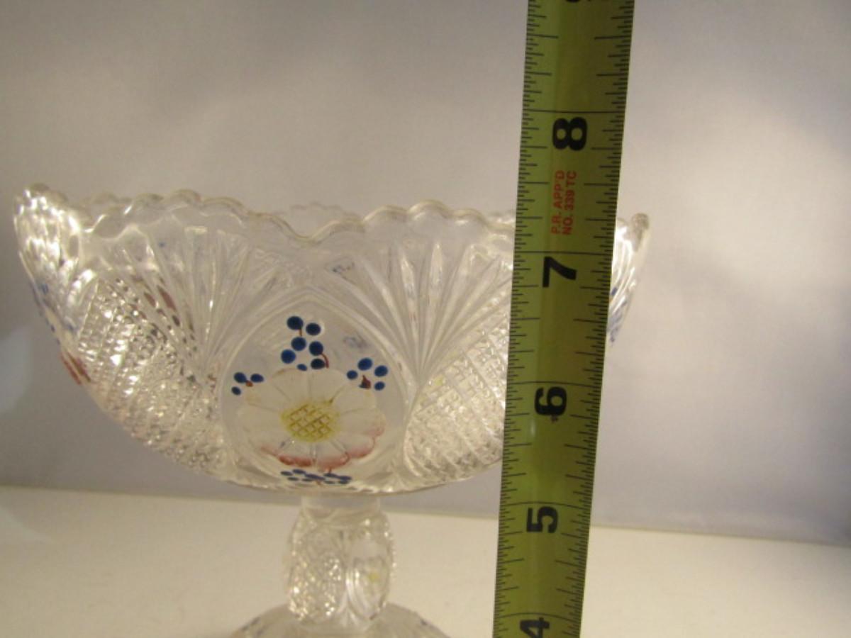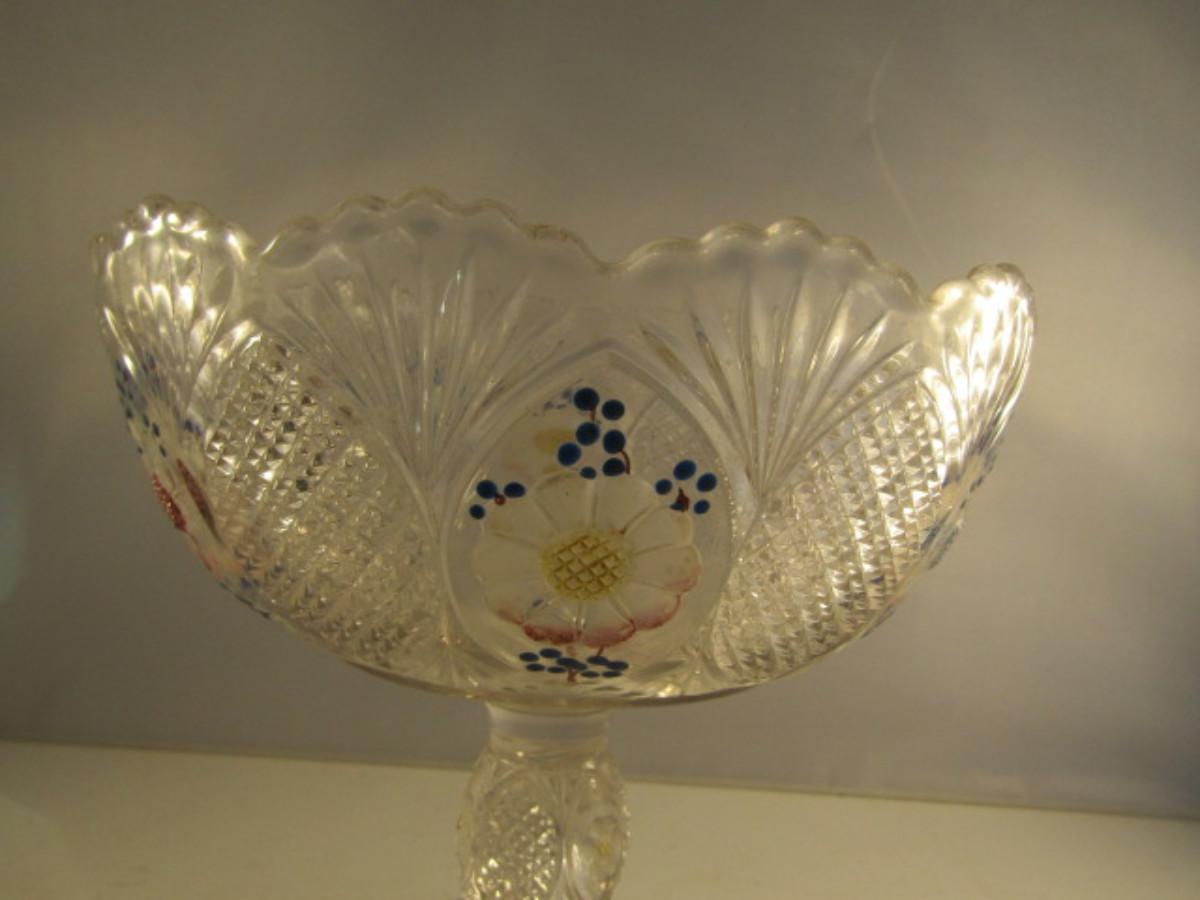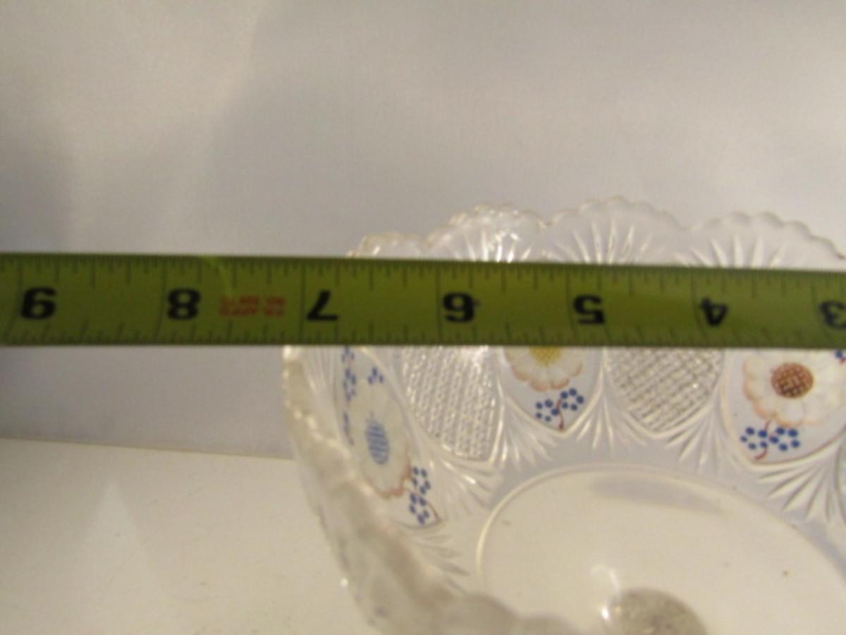 Vintage Glass Footed Compote Bowl with Scalloped Edge and Floral Accents- Approx 7 1/4" in Diameter